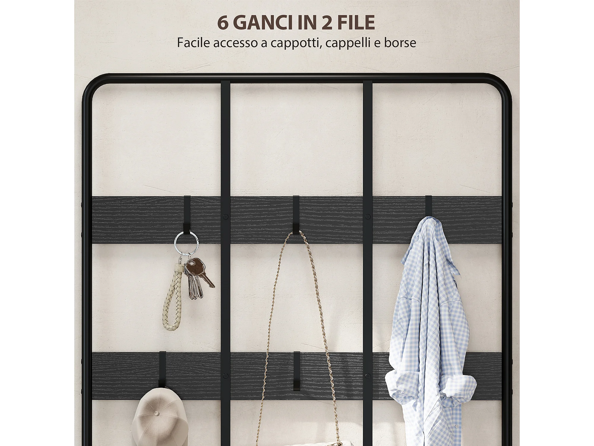 Appendiabiti da parete con 6 ganci in metallo H60 cm - DAMA