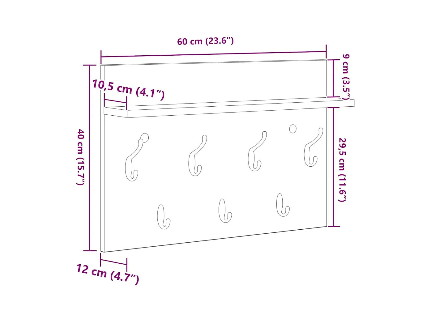Appendiabiti da parete Bianco 60 x 40 x 12 cm Legno ingegnerizzato