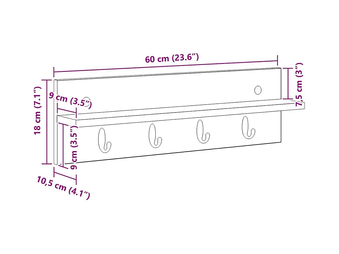 Appendiabiti da parete con ripiano in rovere Sonoma 60 x 10,5 x 18 cm