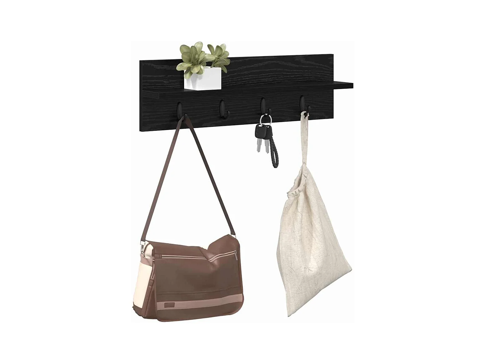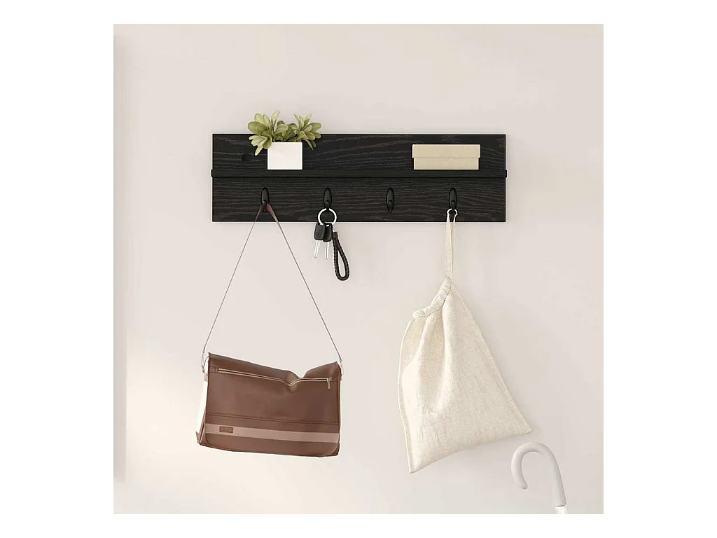Appendiabiti da parete con ripiano Rovere nero 60 x 40 x 12 cm