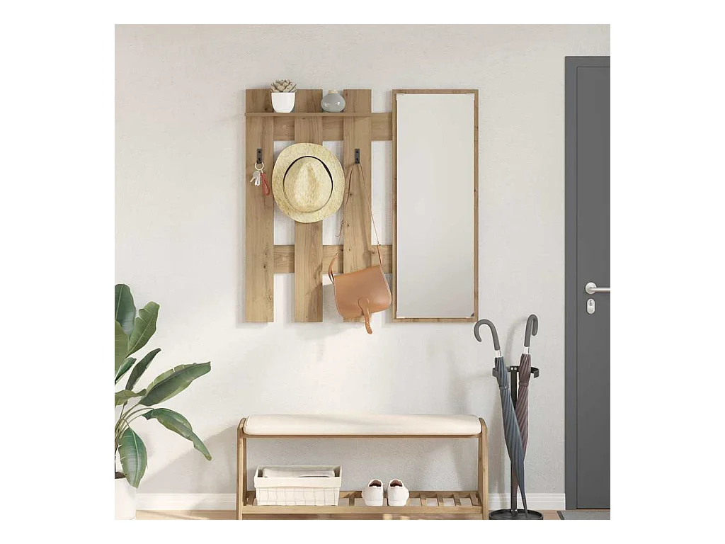 Appendiabiti da parete con specchio Artisan rovere 100 x 10 x 100 cm