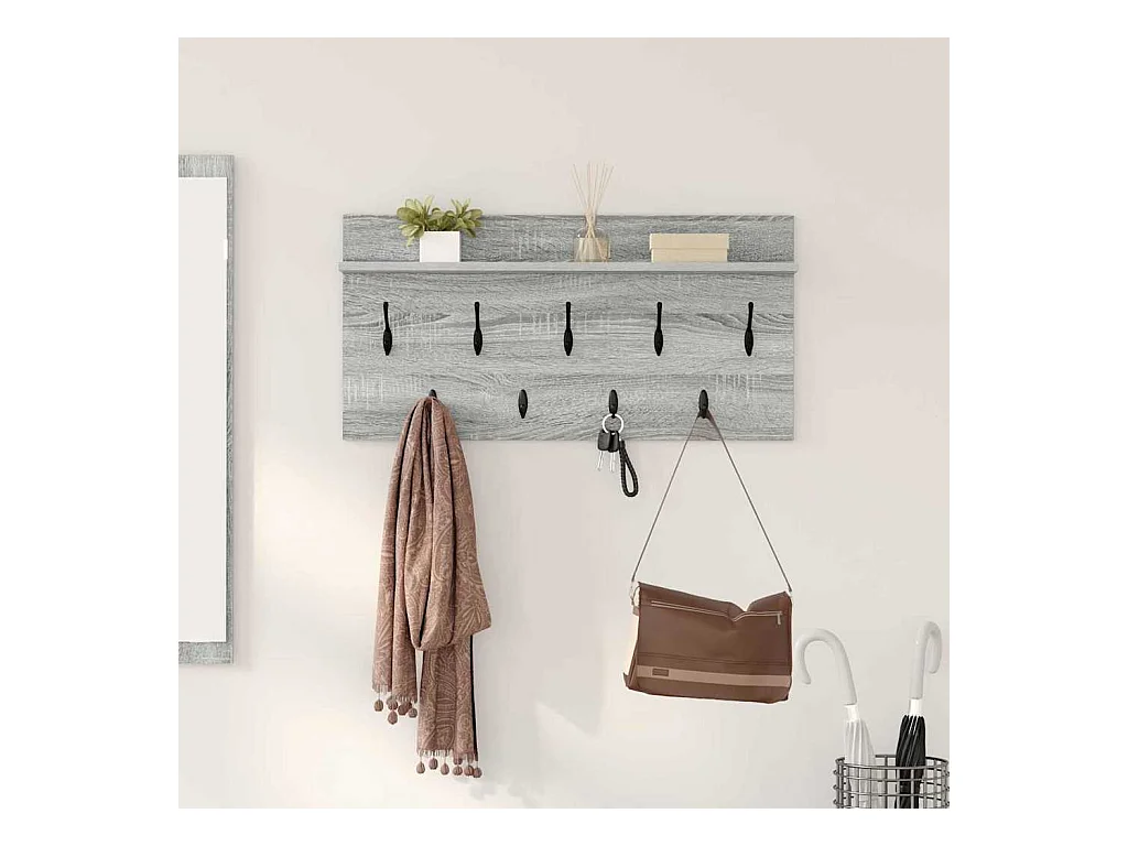 Appendiabiti da parete grigio Sonoma con ripiano in legno ingegnerizzato