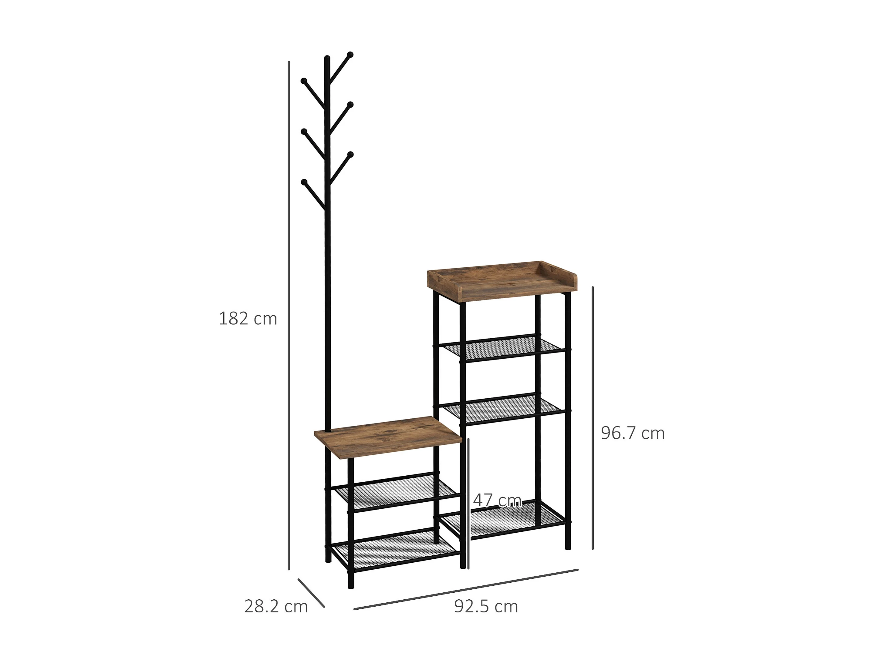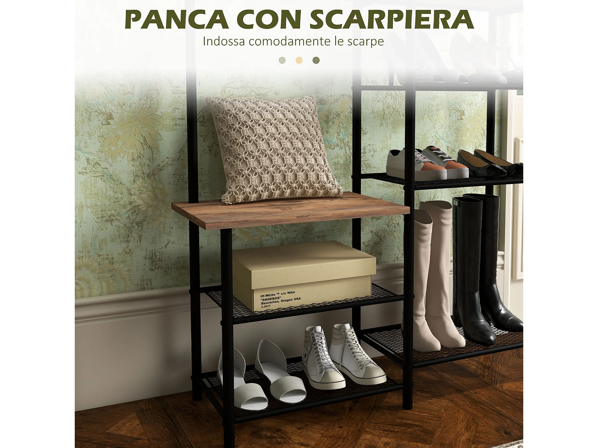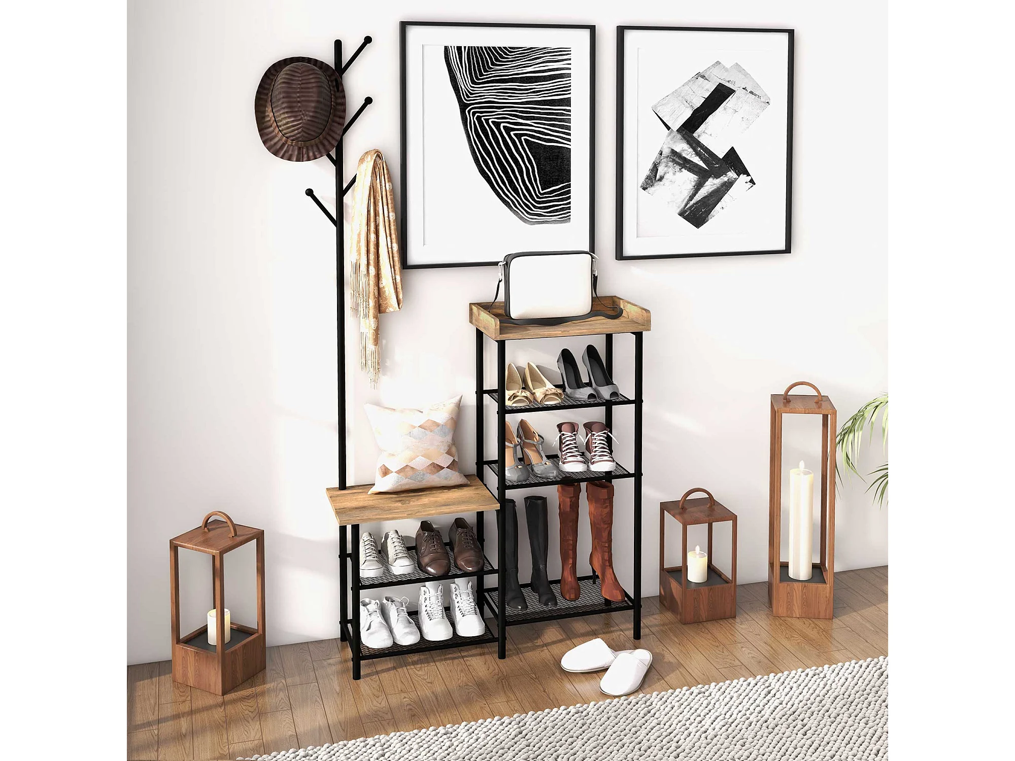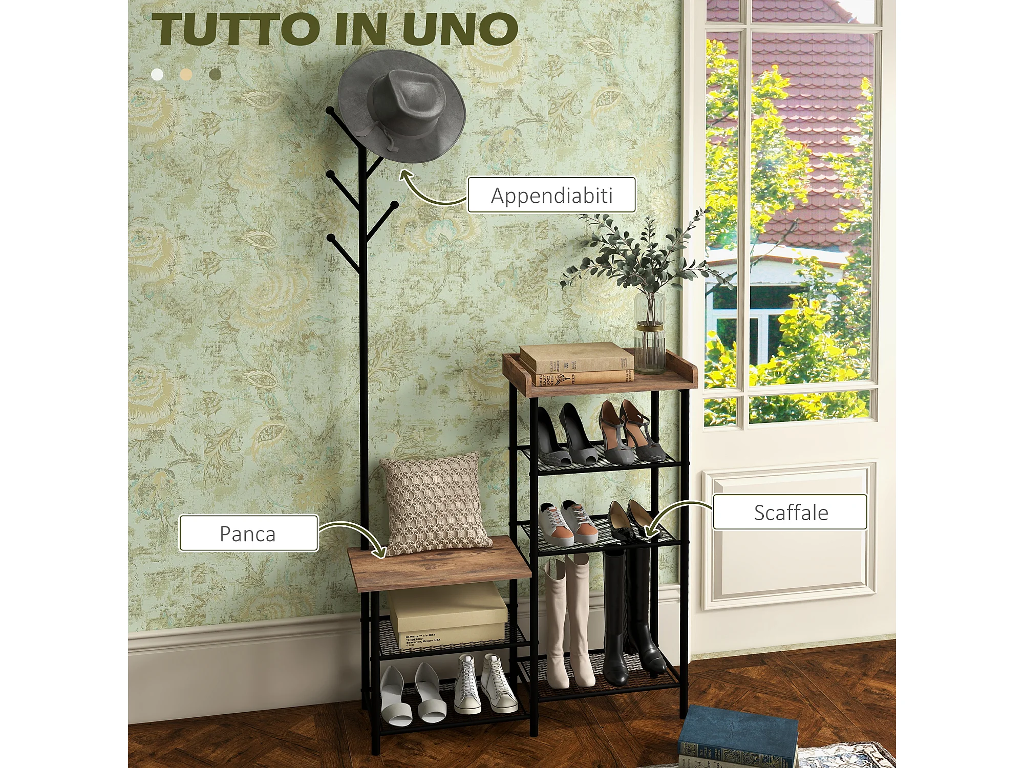 Appendiabiti da terra a 6 ganci con mobile scarpiera marrone