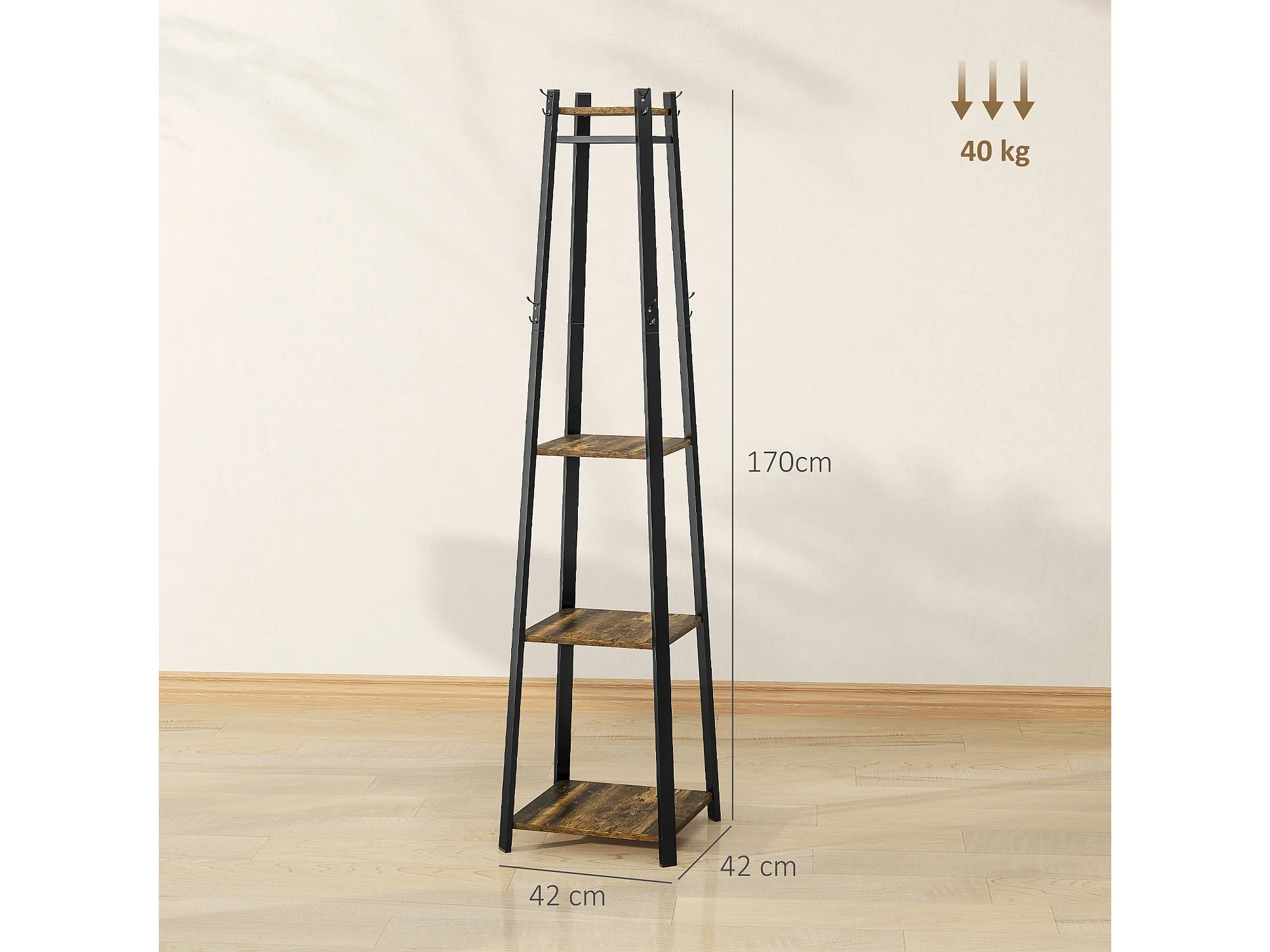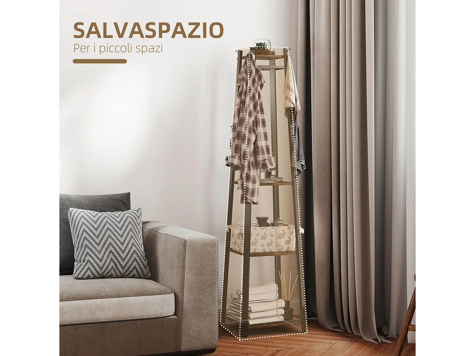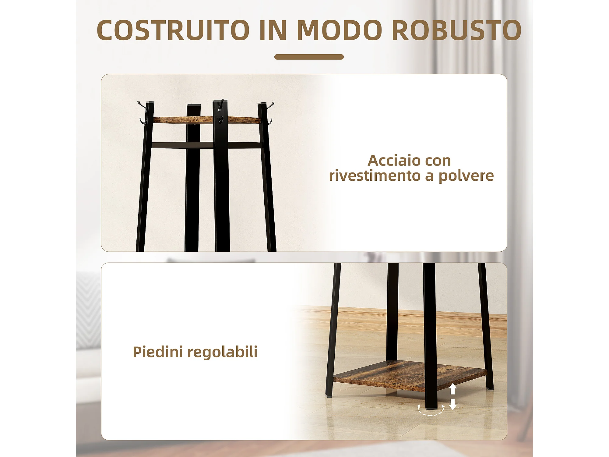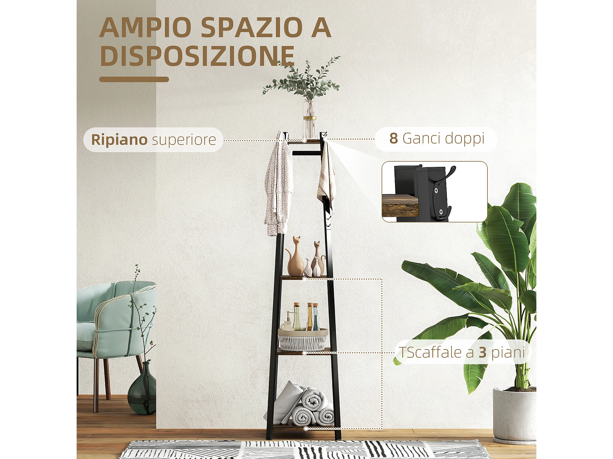Appendiabiti da terra con 8 ganci e ripiani centrali marrone