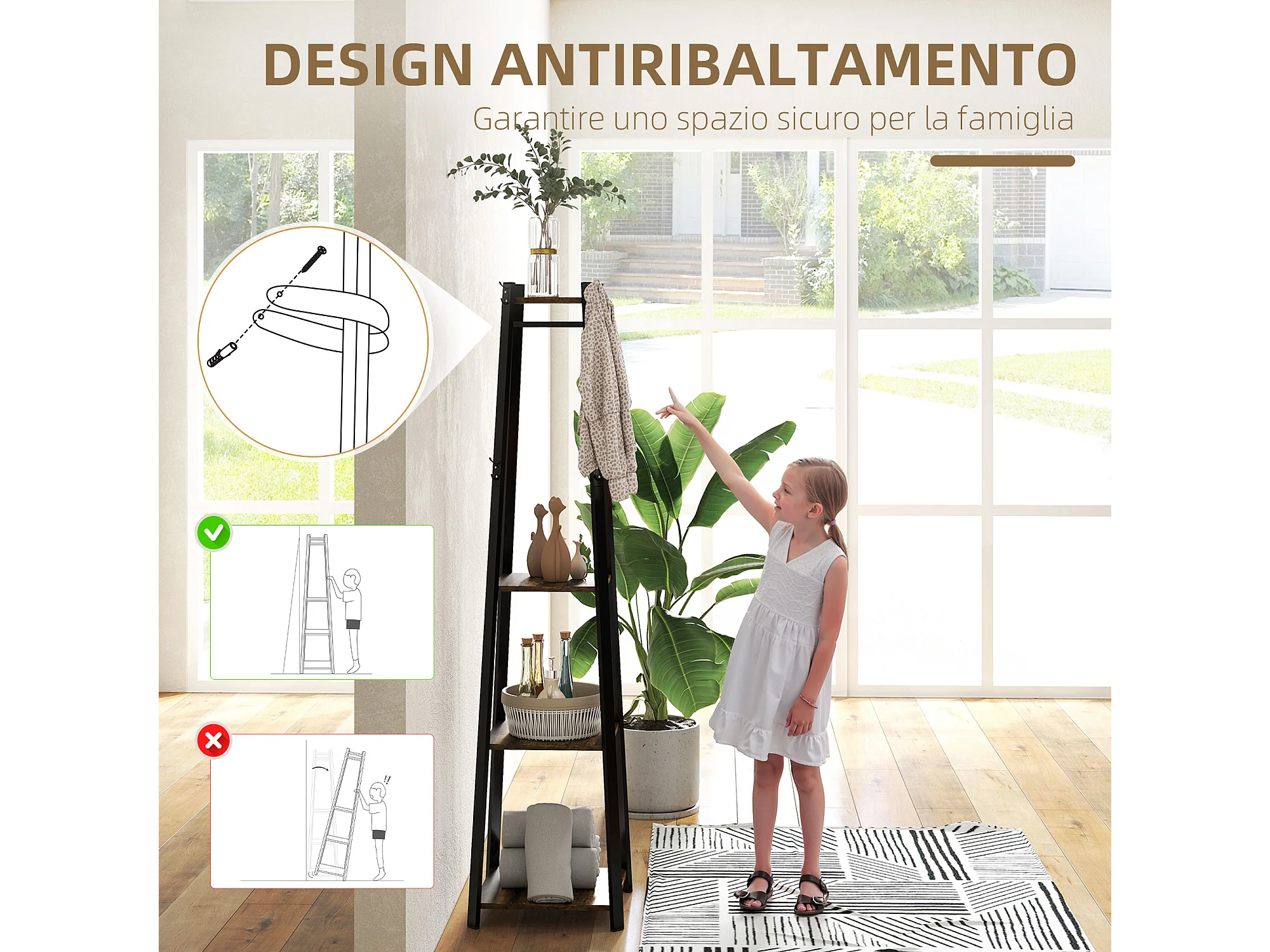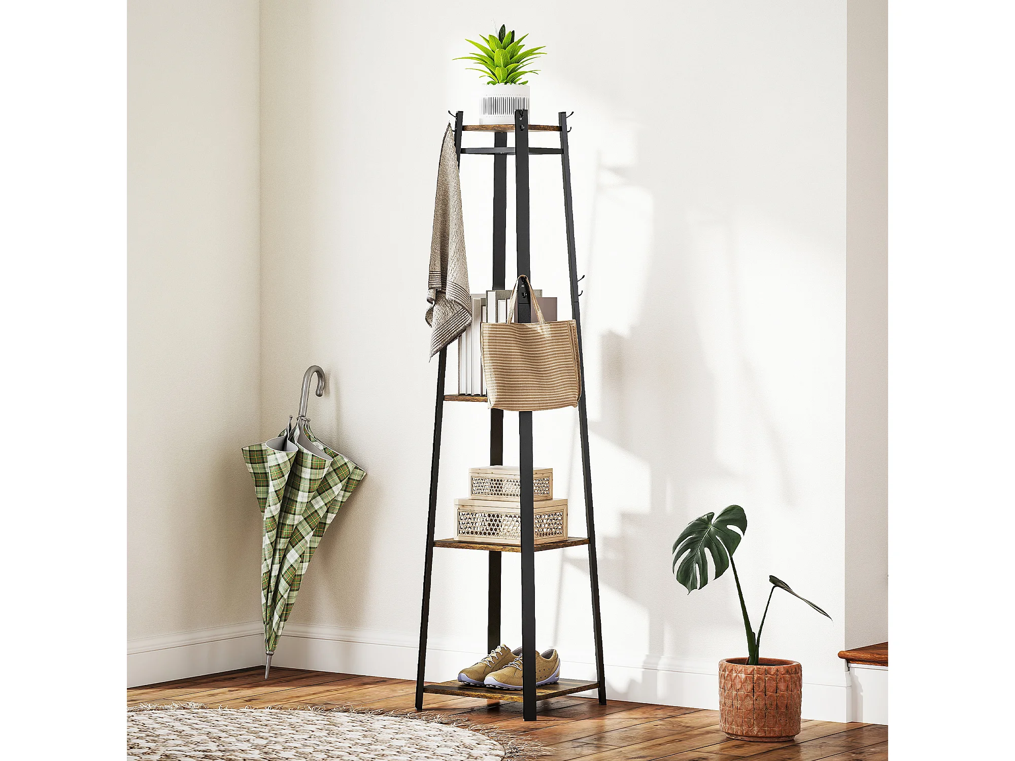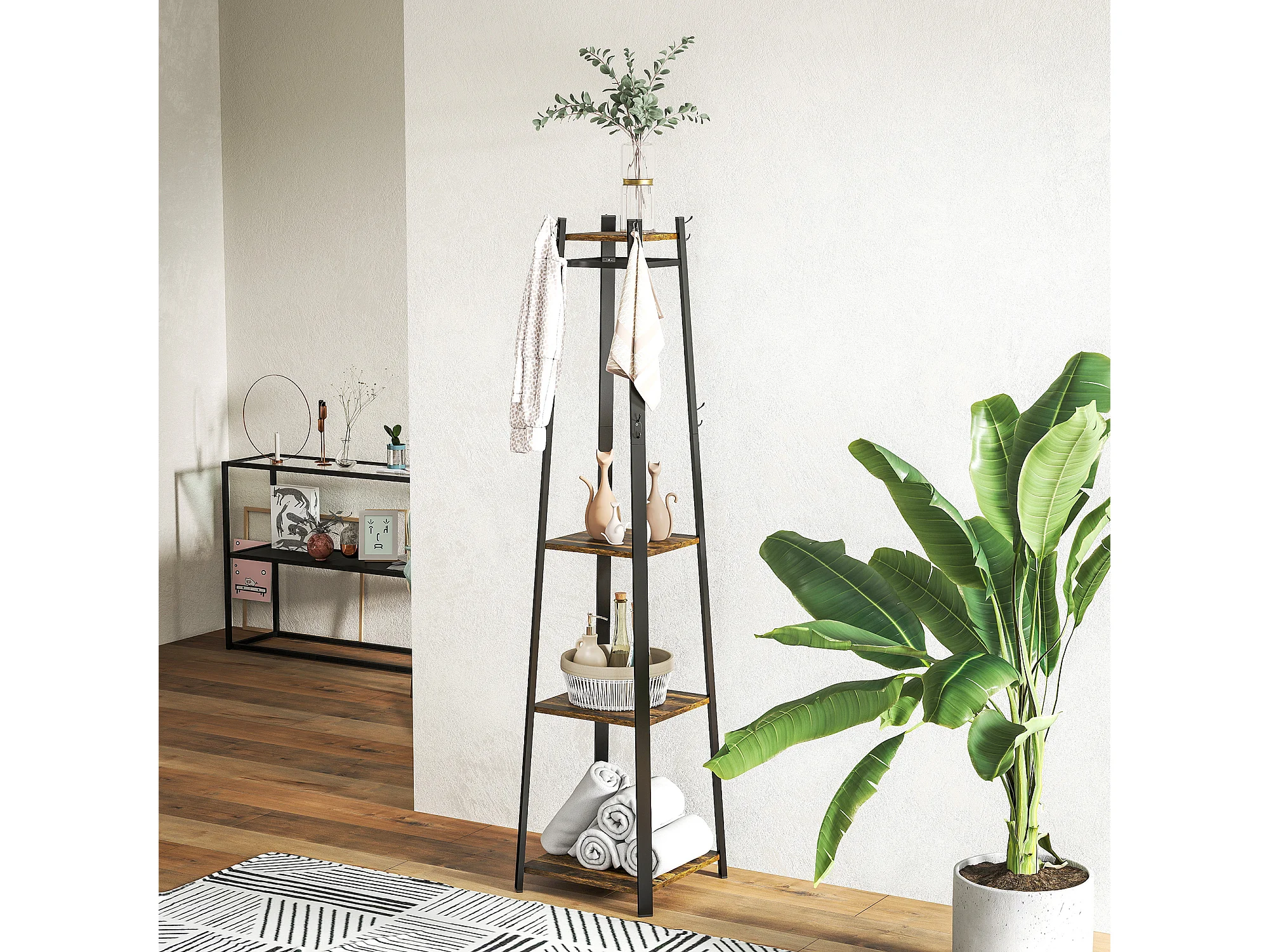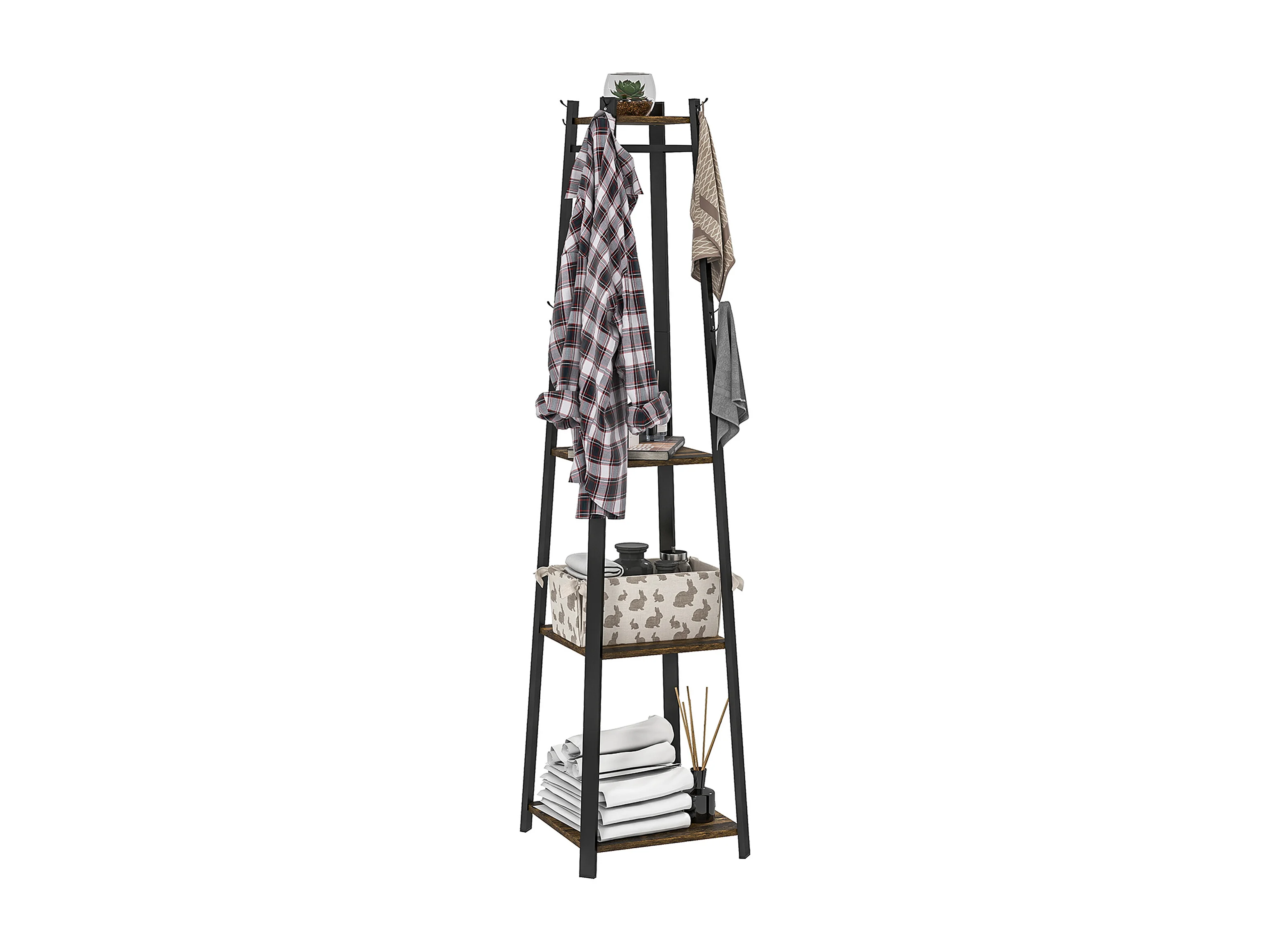 Appendiabiti da terra con 8 ganci e ripiani centrali marrone
