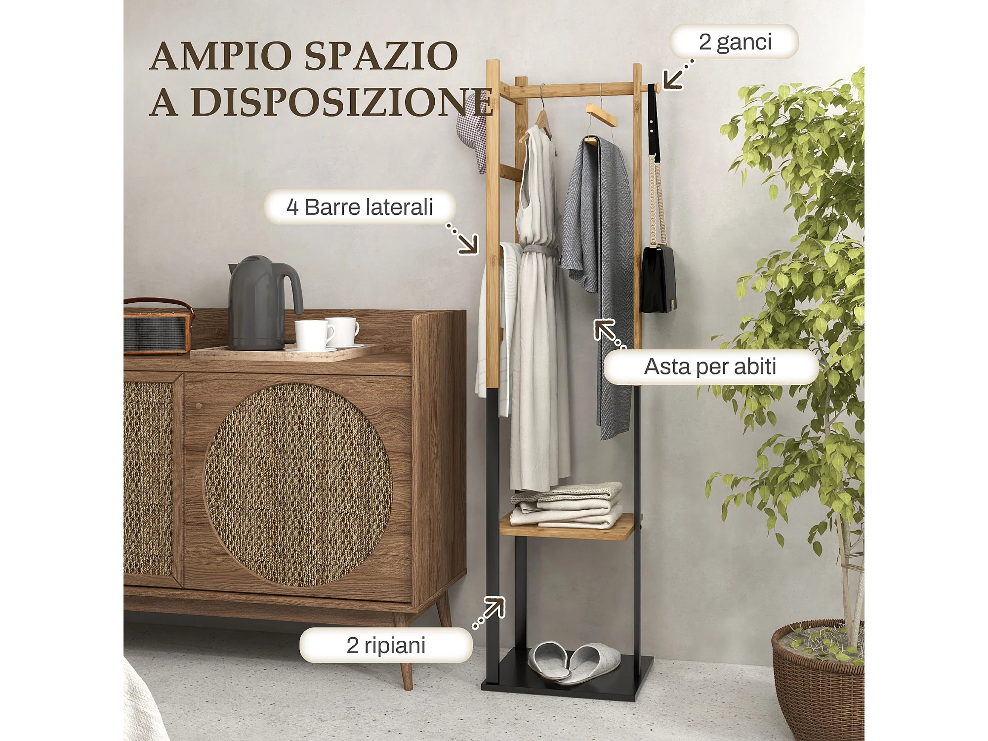 Appendiabiti con mensola e ripiano in bambù colore legno