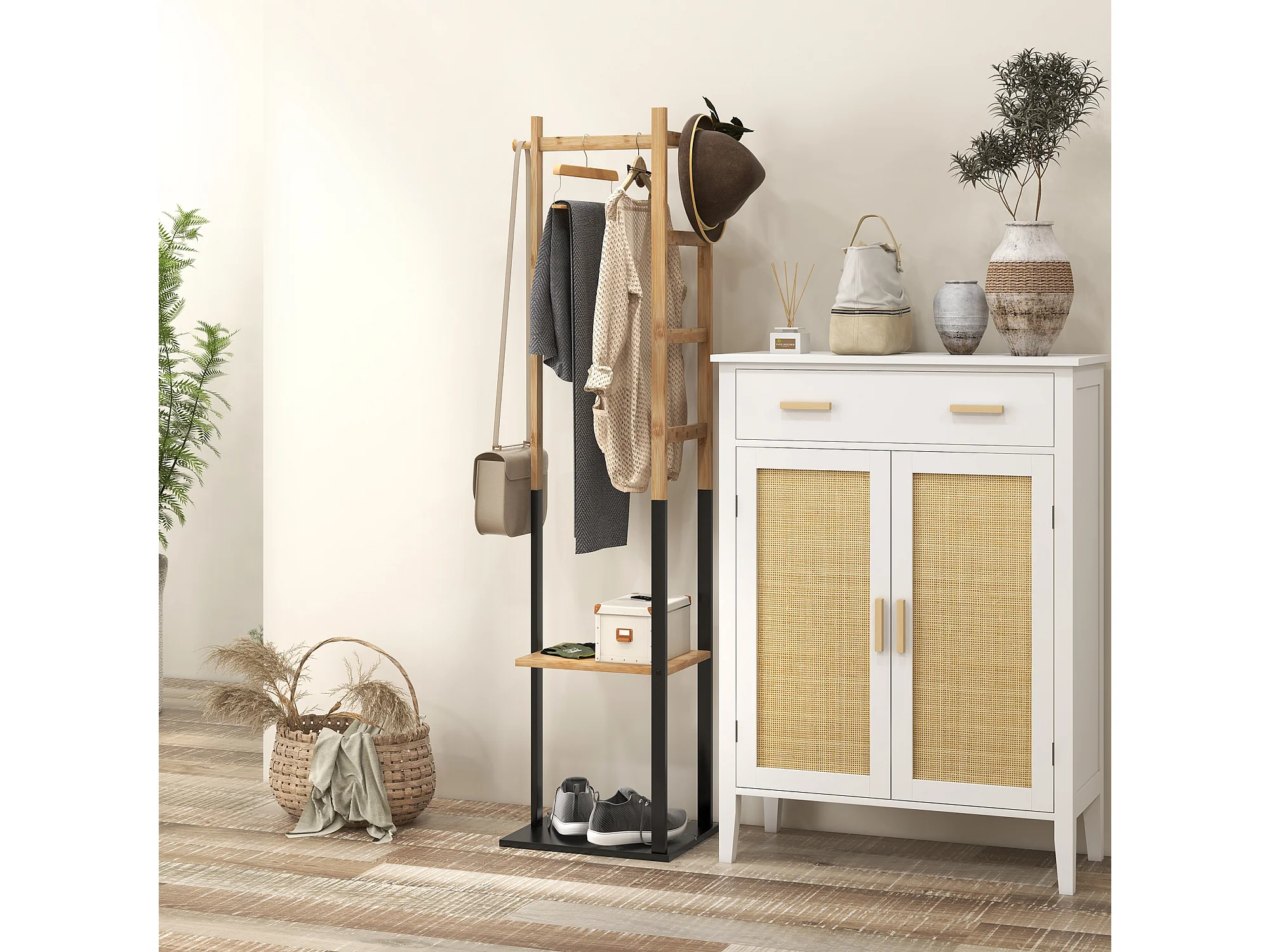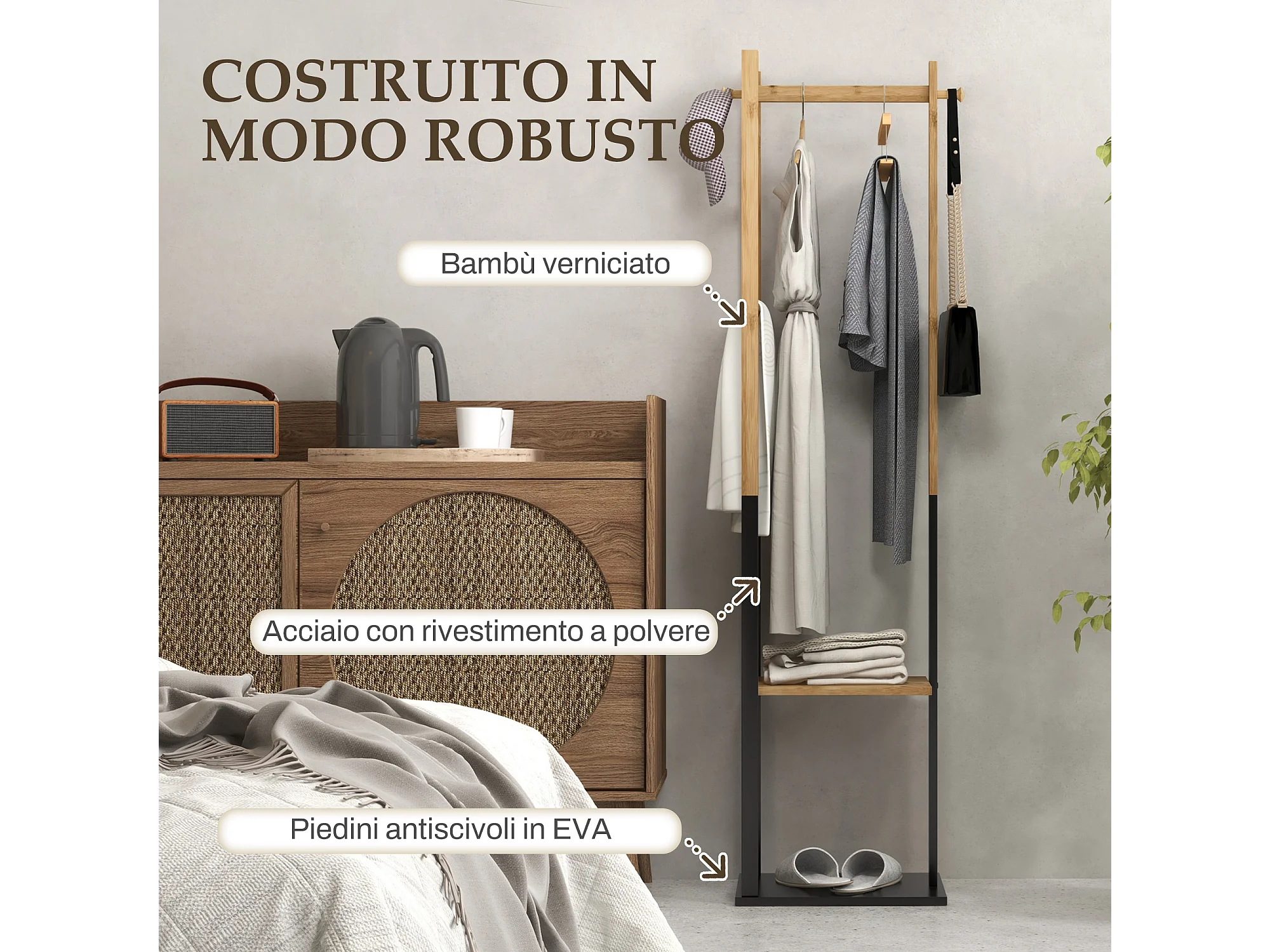 Mobile appendiabiti 2 in 1 con ripiano 2 livelli in acciaio truciolato