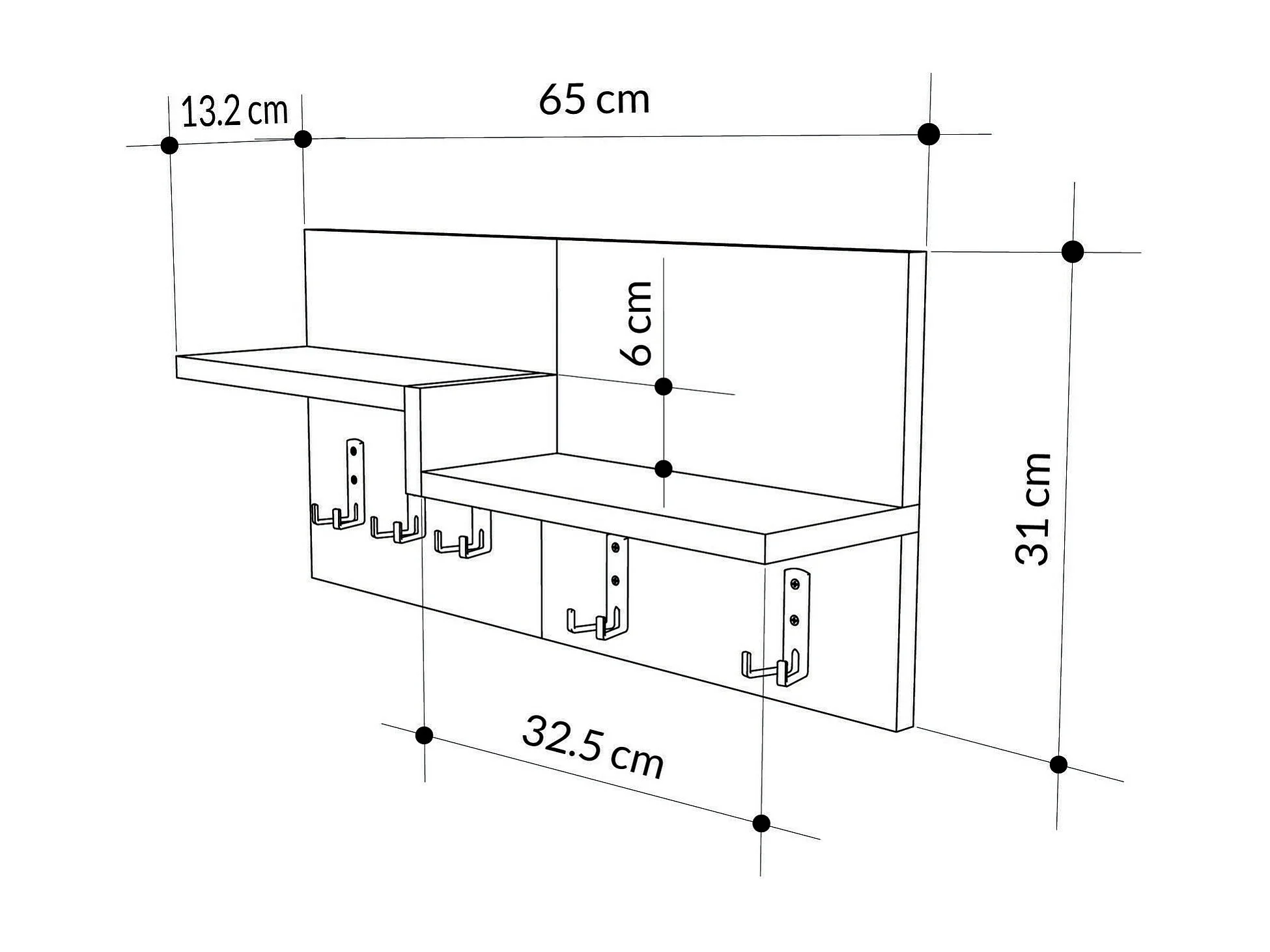 Dmora - Appendiabiti Kilo, 65x15 h31 cm, Quercia e Bianco