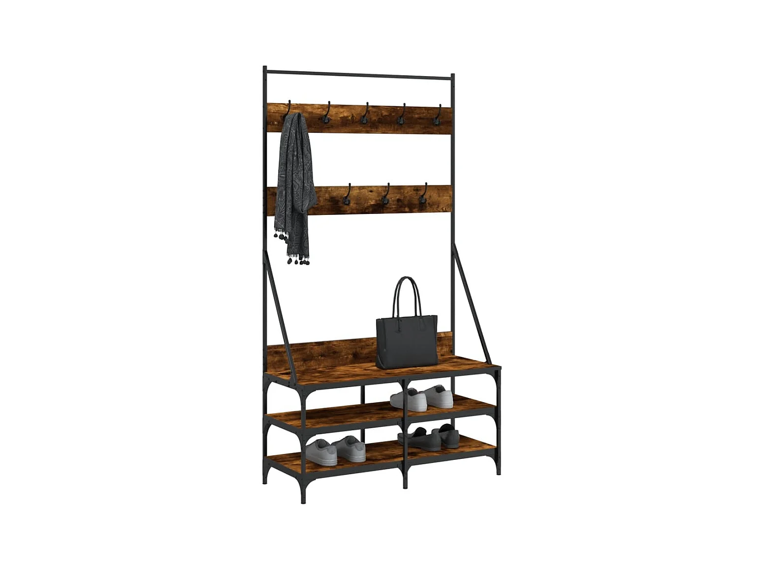 Appendiabiti e scarpiera in rovere affumicato