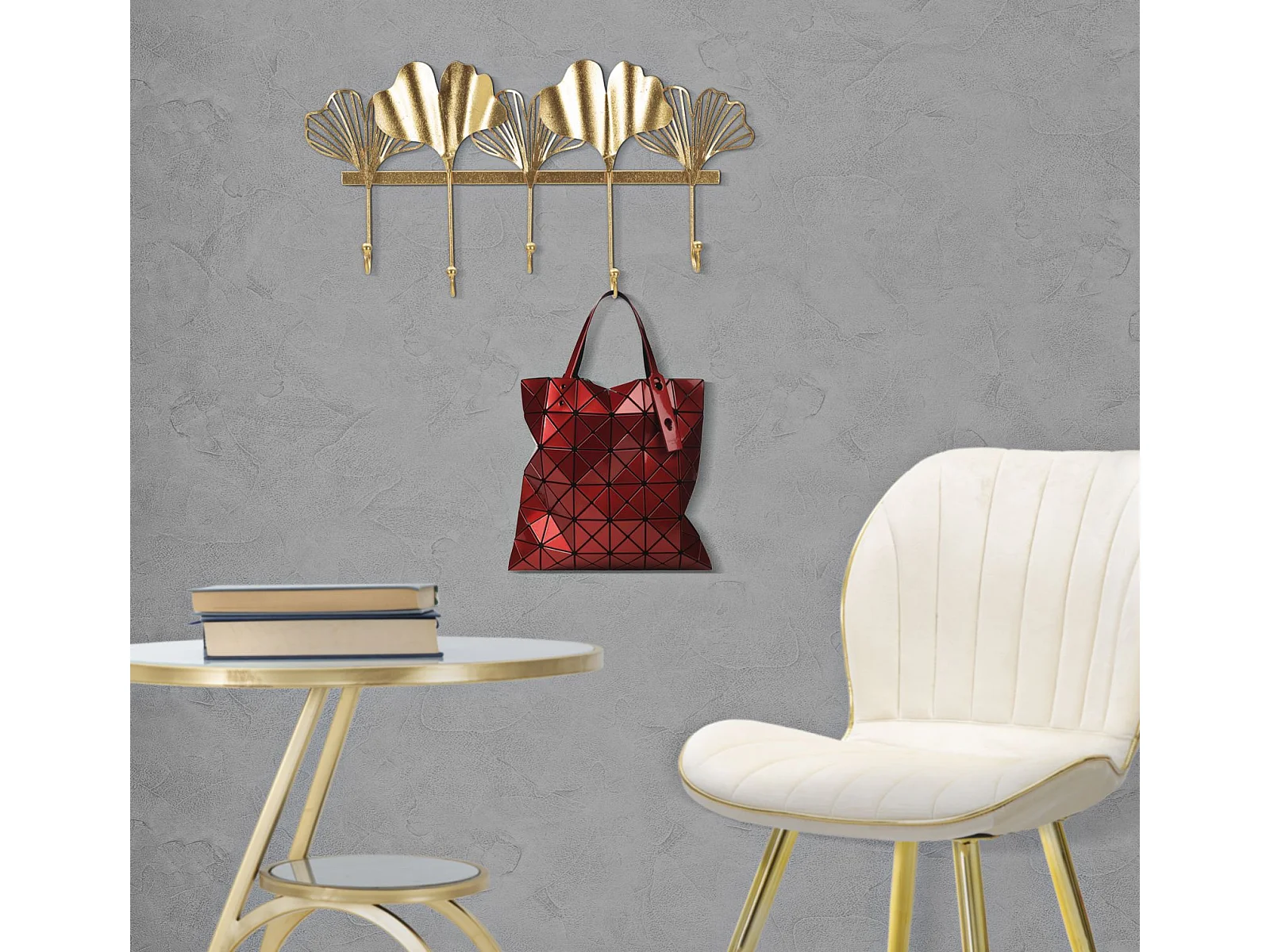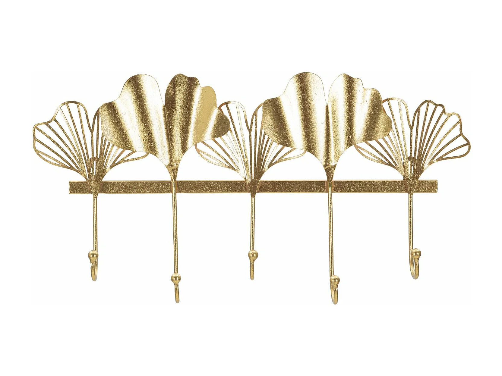 Appendiabiti in metallo dorato foglie 7 ganci cm 65x42,5x6