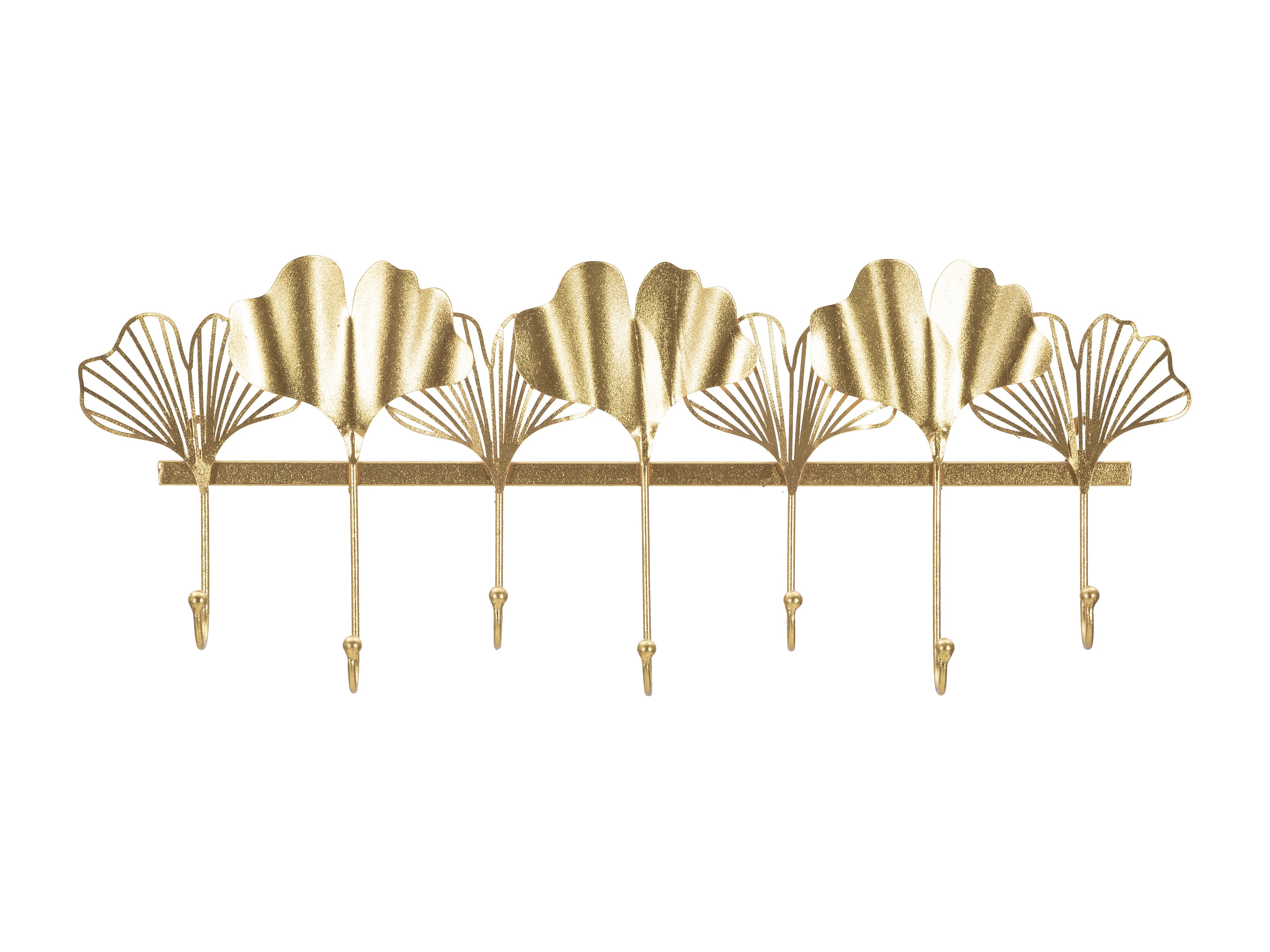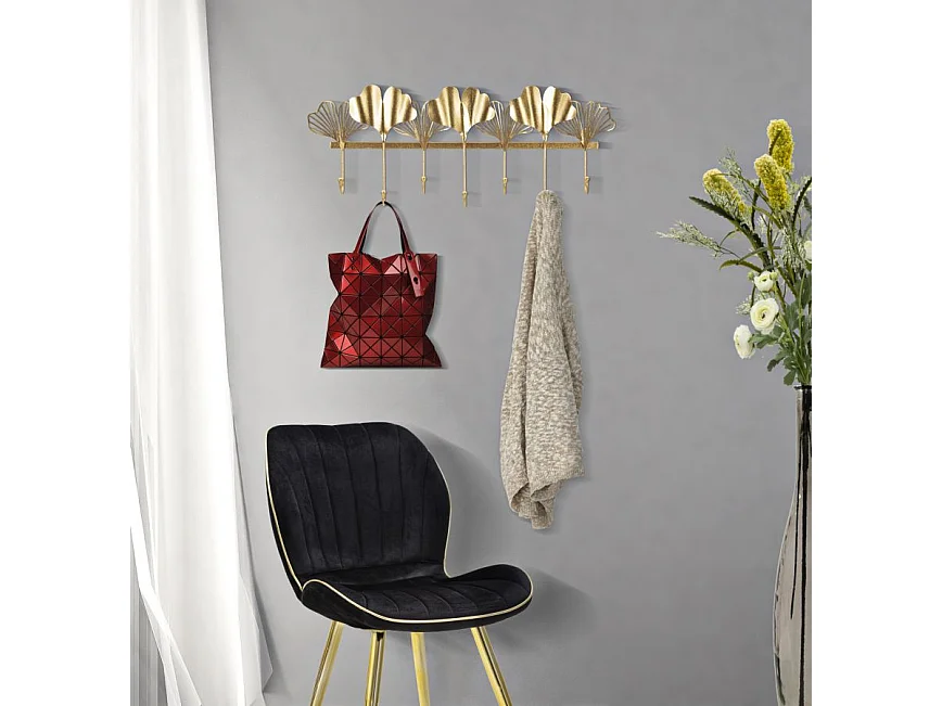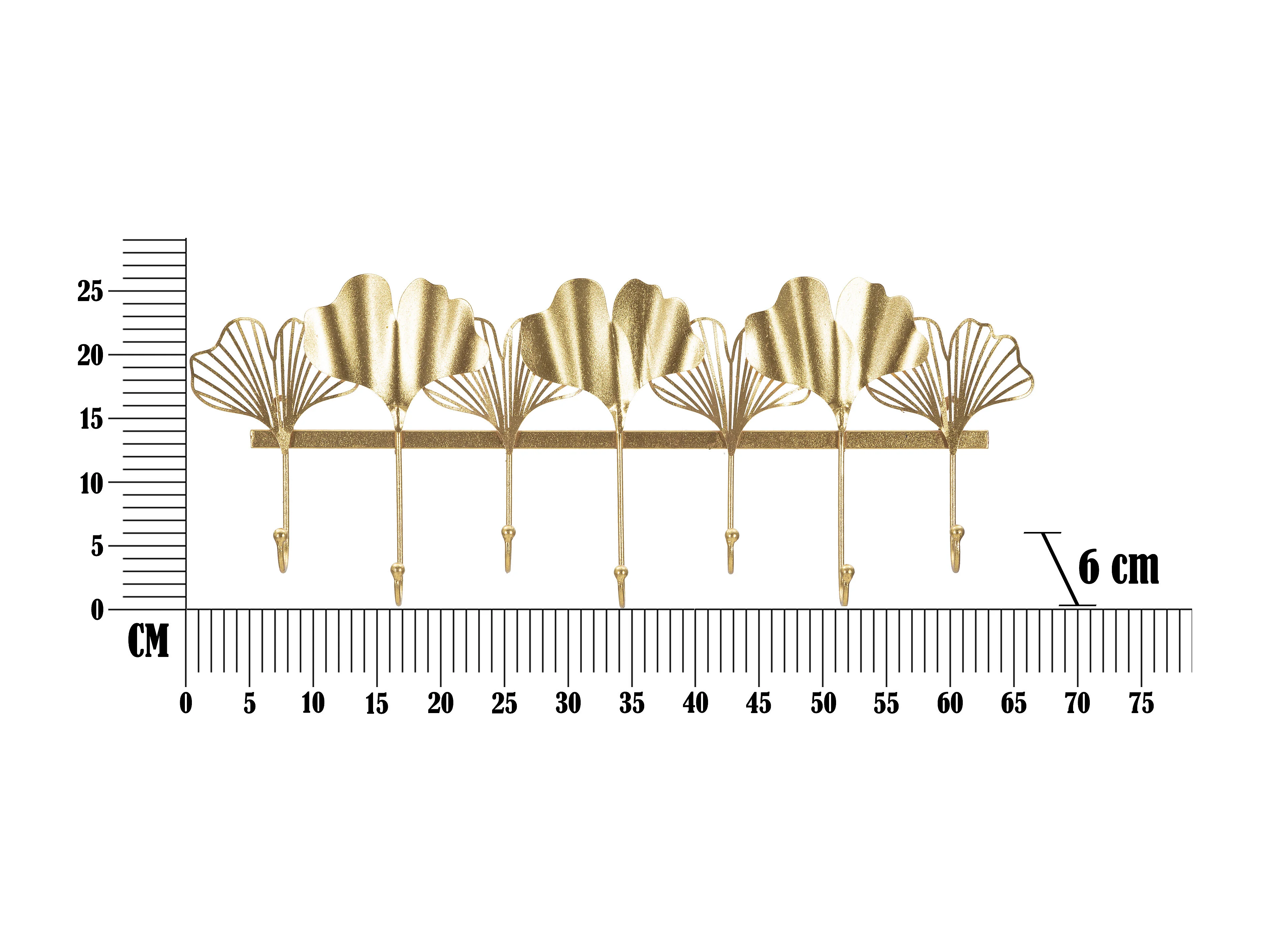 Appendiabiti in metallo dorato foglie 7 ganci cm 65x42,5x6