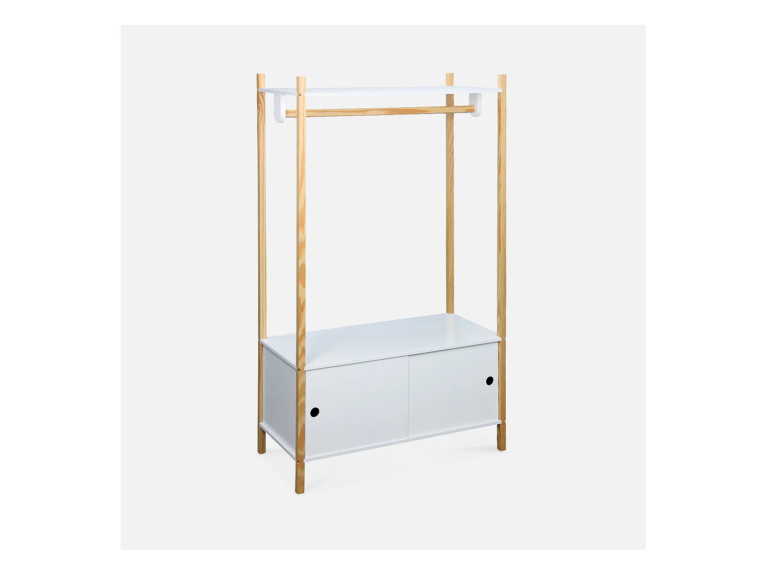 Appendiabiti per bambini in legno con ante scorrevoli, bianco