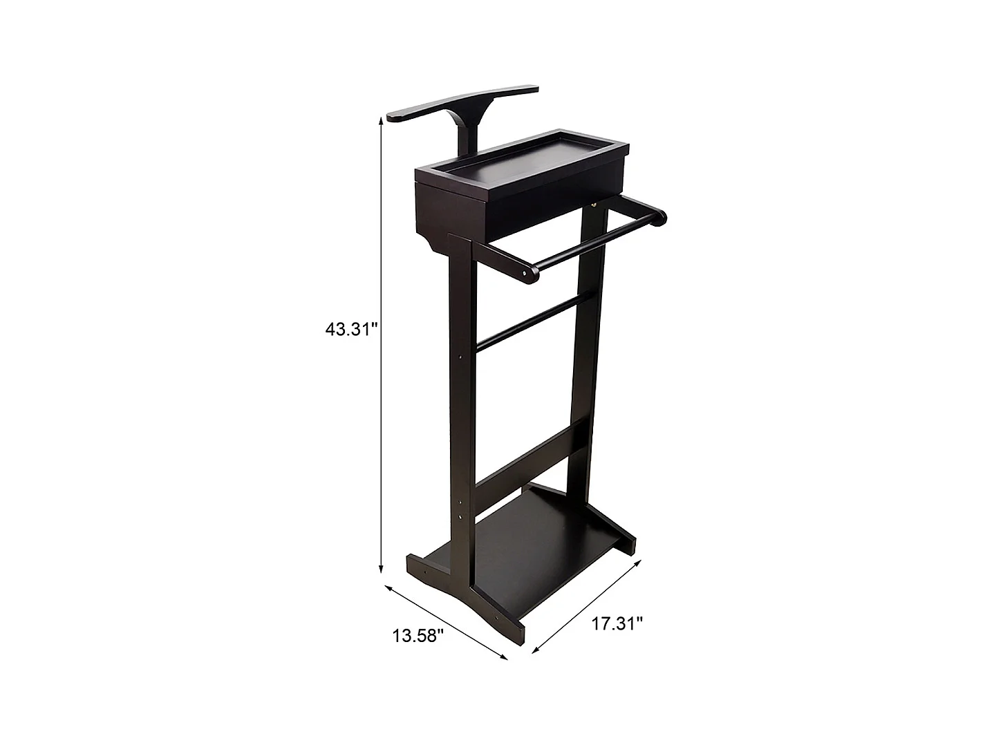Appendiabiti portatile nero con organizer portaoggetti, MDF, asta in legno massello (44x36,5x110 cm)