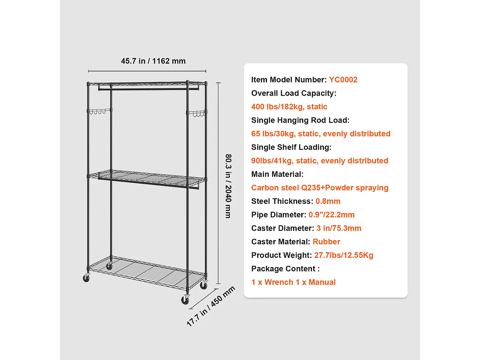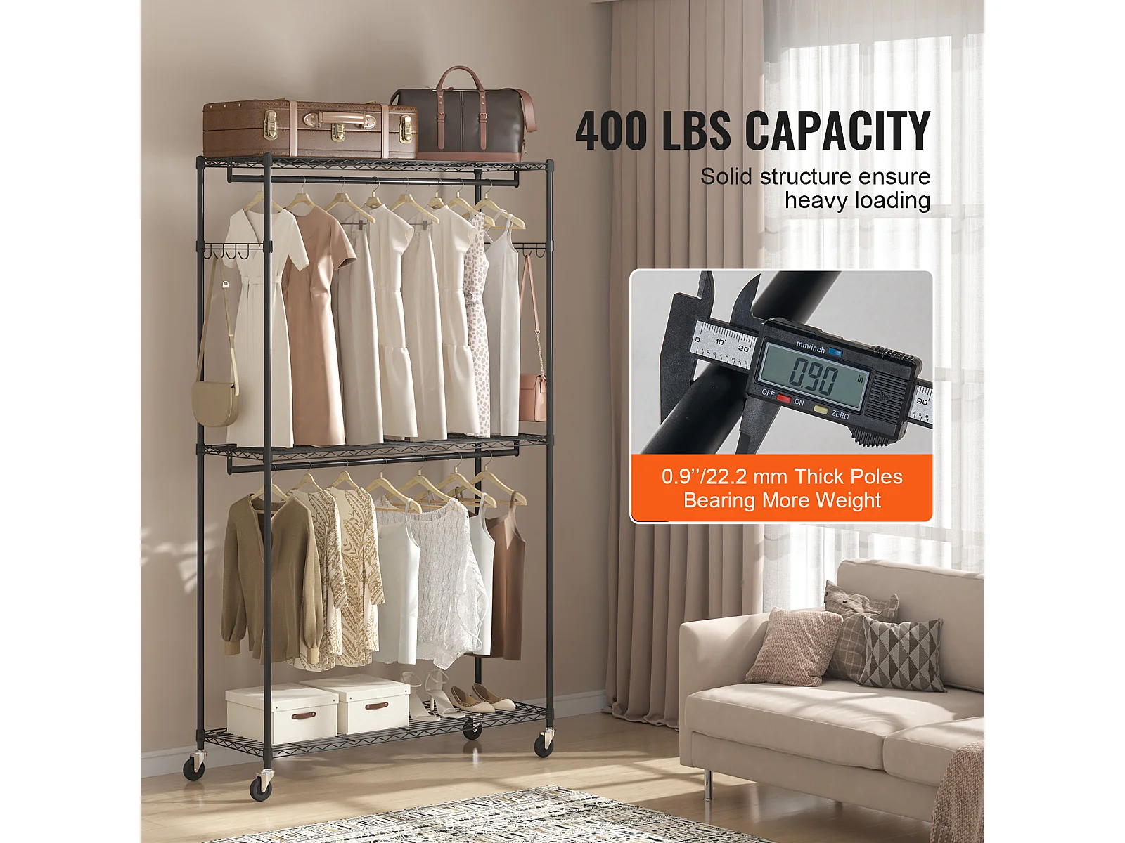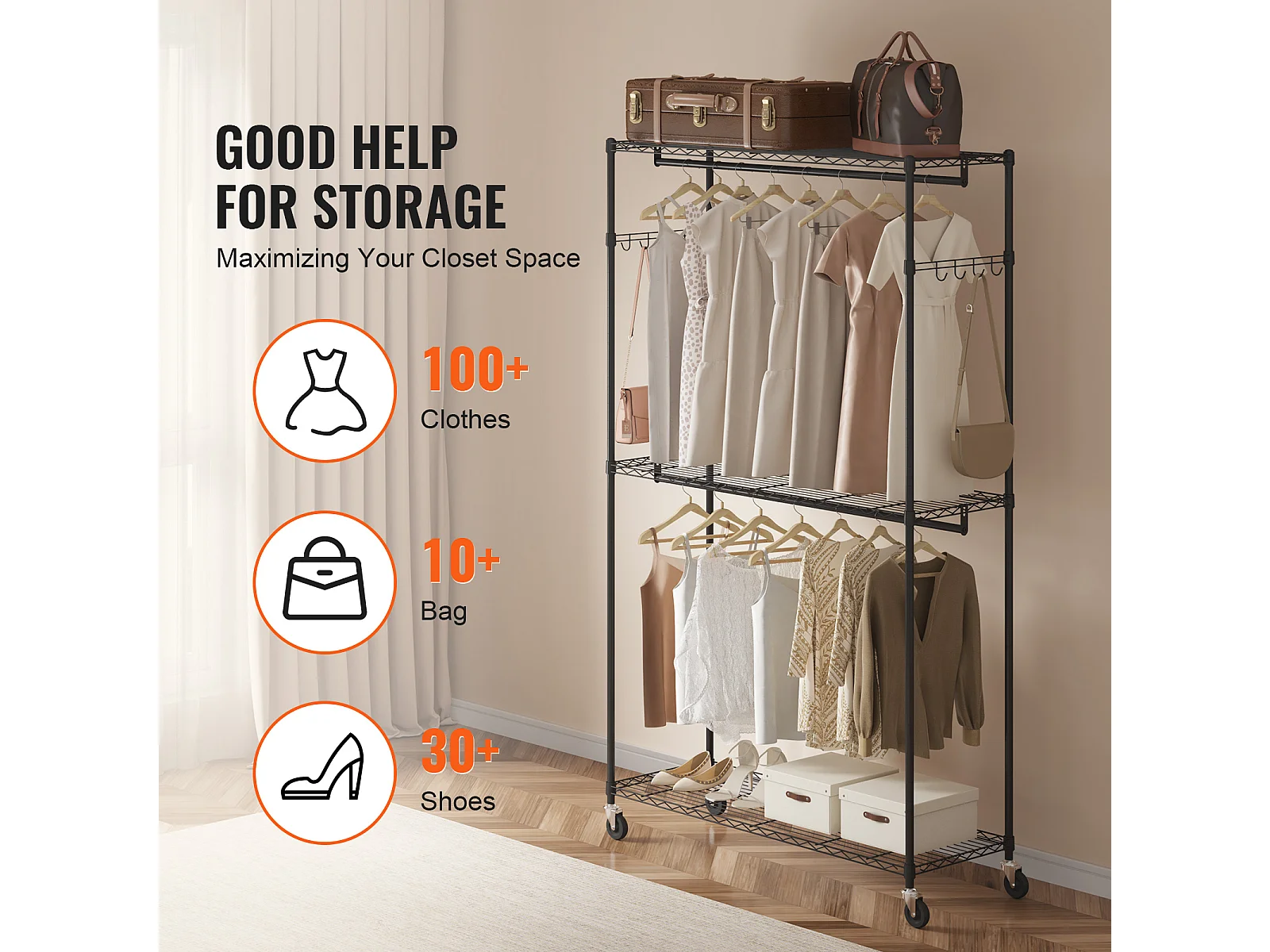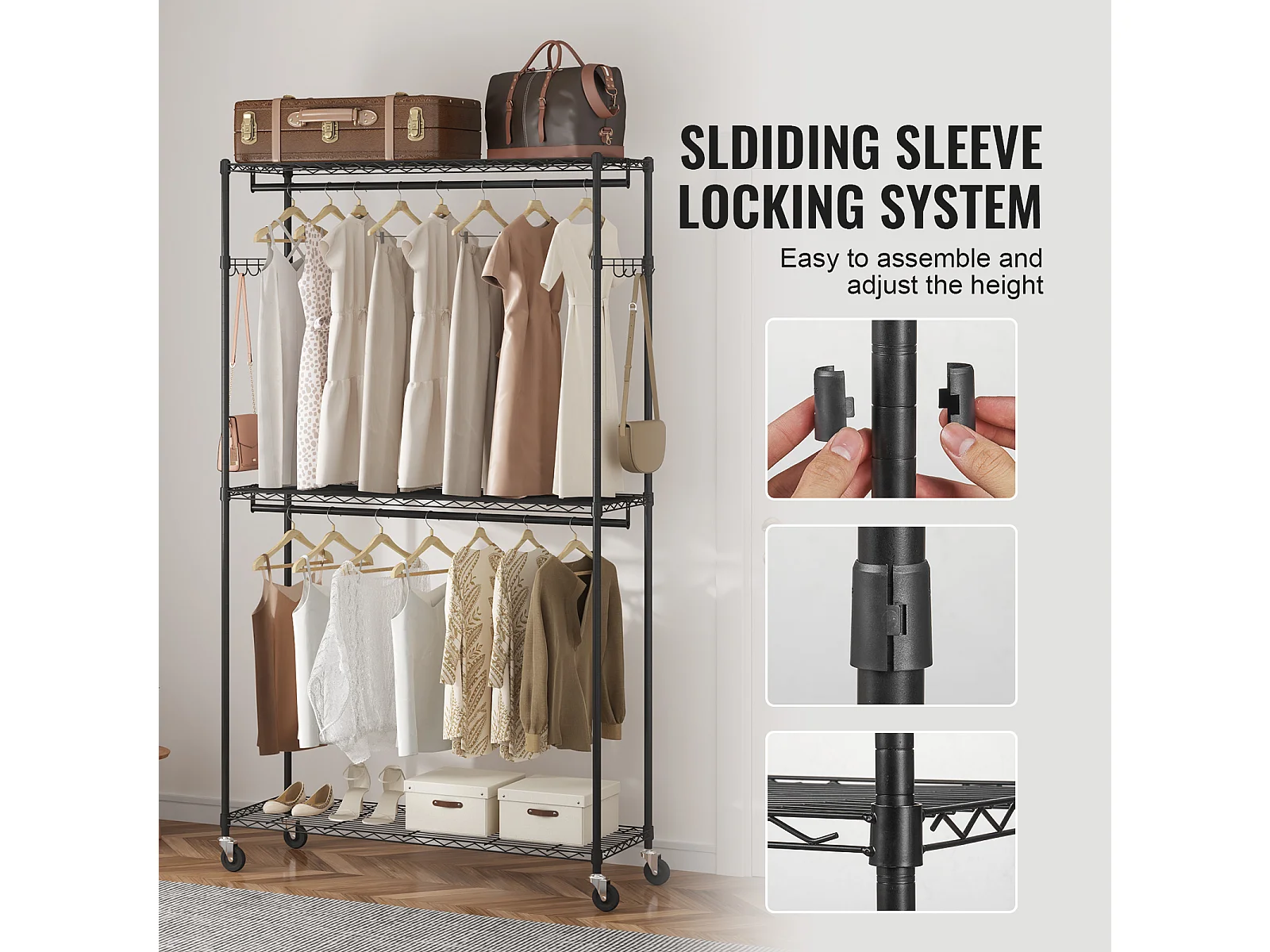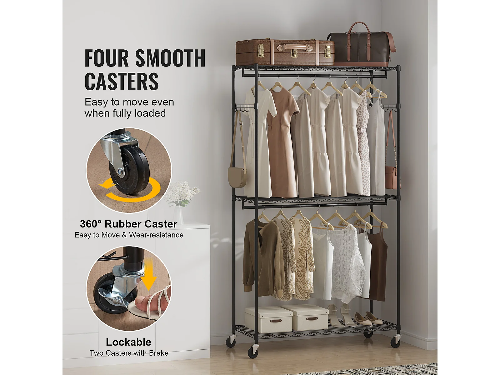 Appendiabiti, SucceBuy Appendiabiti con Ruote, 3 Ripiani, Capacità di Carico 180 kg