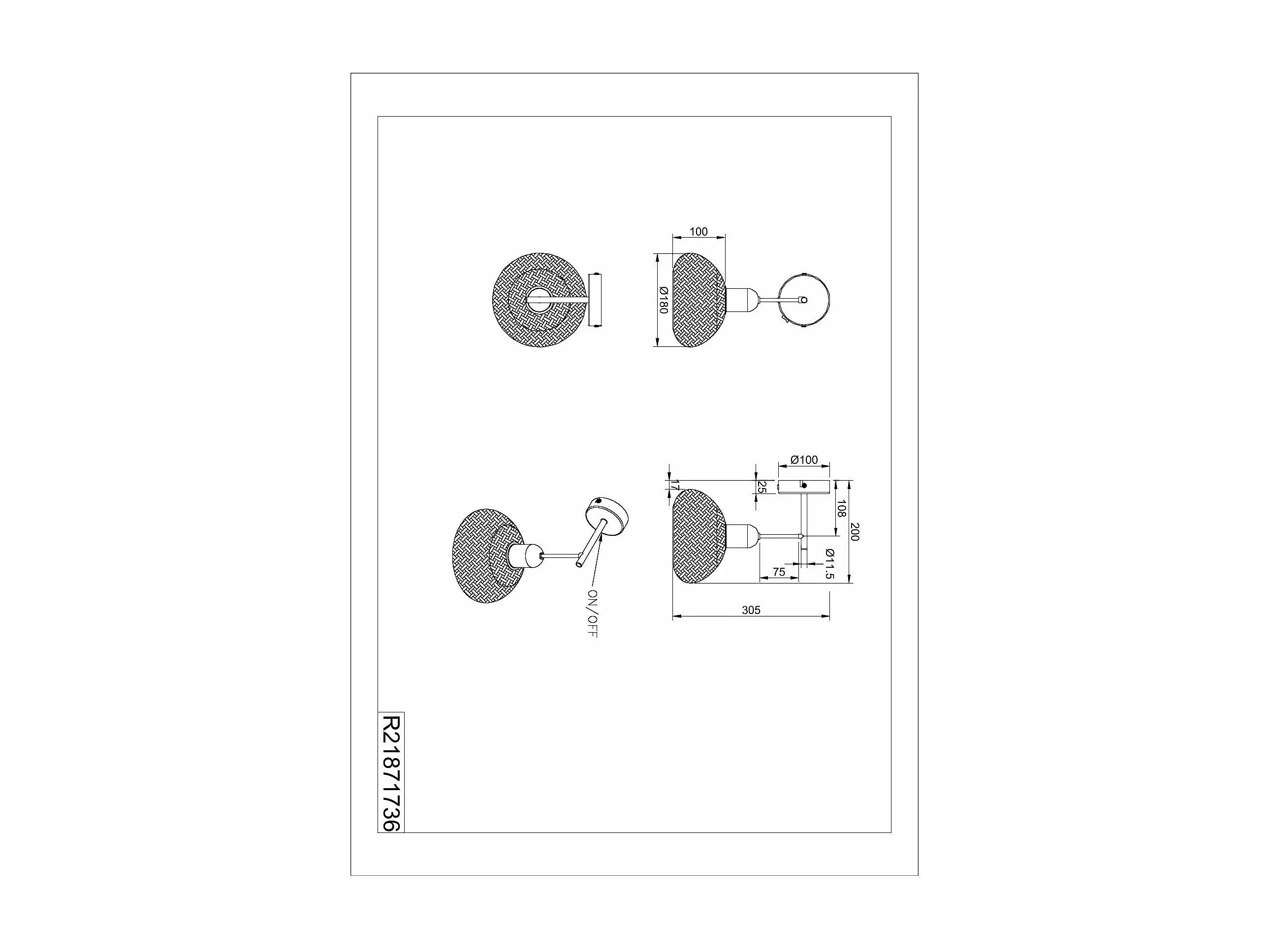 Applique, bambù e metallo nero, H 31 cm, Leonie