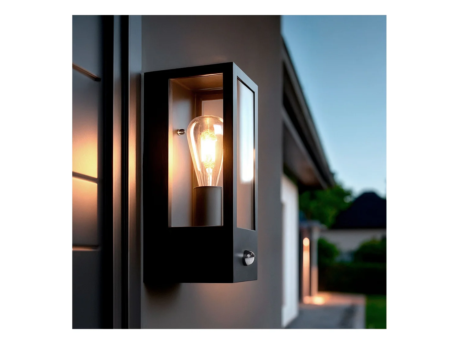 Applique da Parete per Esterni Acciaio Inox e Vetro con Sensore di Movimento Sentinel Nero