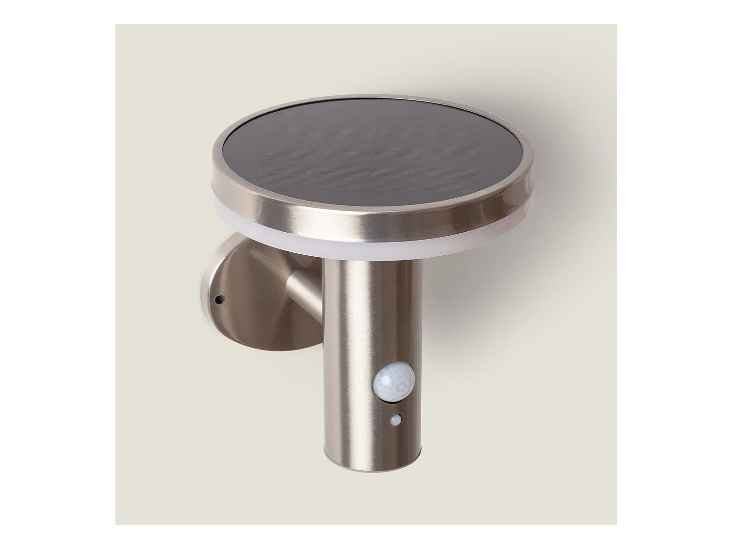 Applique da Parete per Esterni LED Solare Inox con Sensore di Movimento PIR Helios 4000K Bianco Naturale