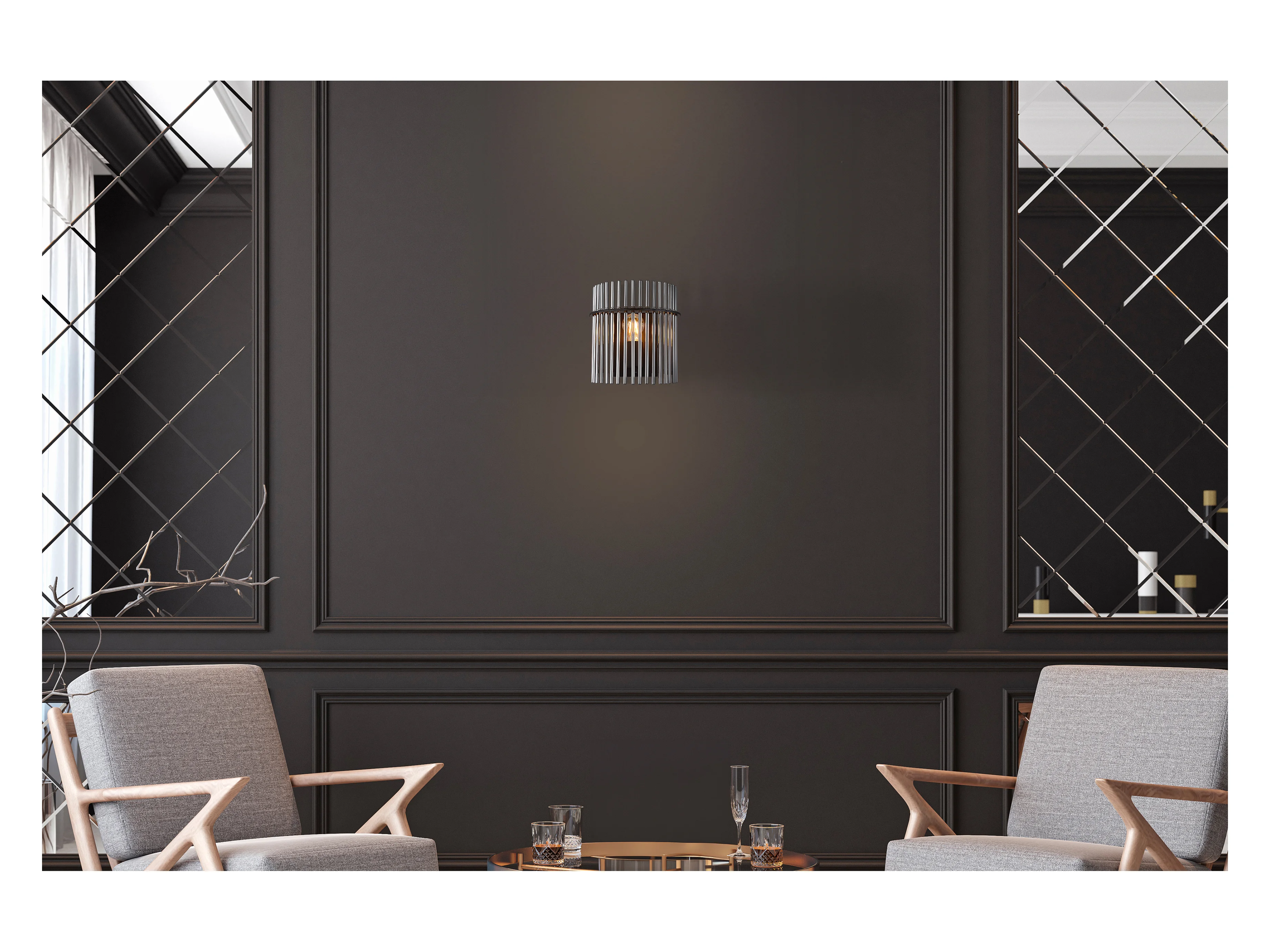 Searchlight Hotel Lampada da parete Nero Opaco, Paralume in Tessuto Bianco