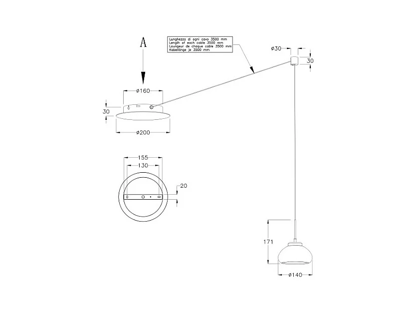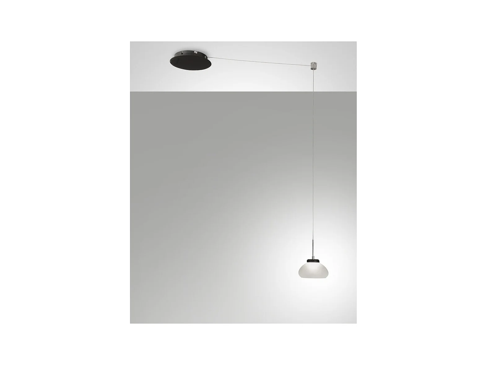 Lampada a sospensione decentrata Prado bianco opaco - Fabas Luce - LED 6,5W dimmerabile - Montaggio con decentramento