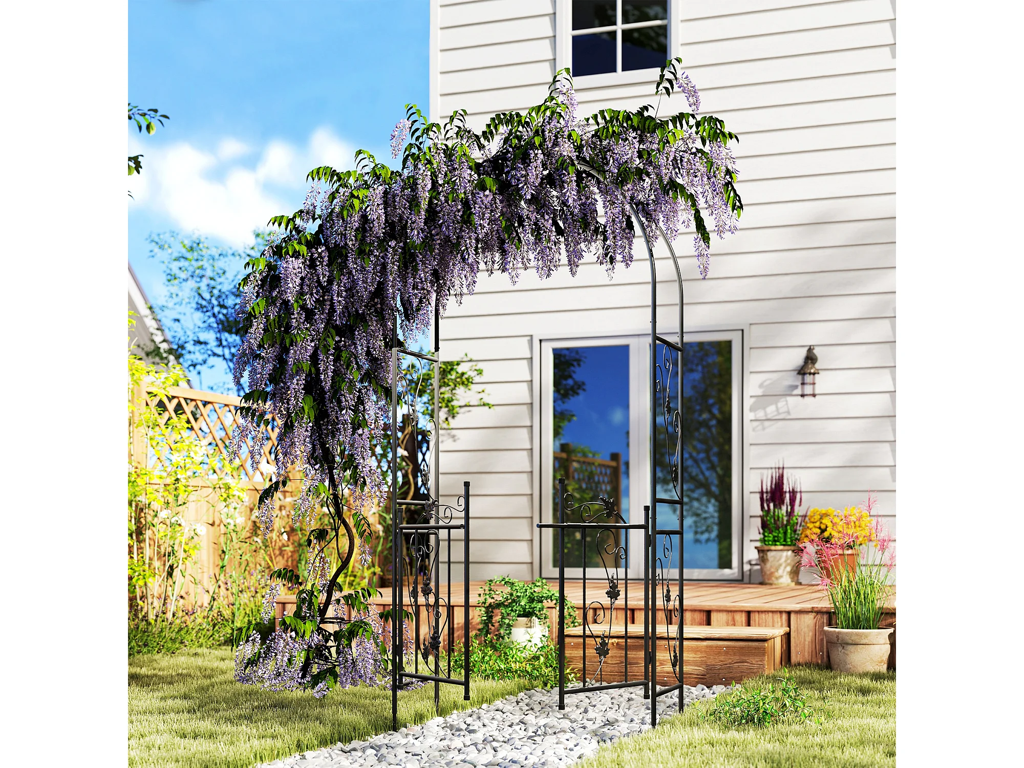 Arco da giardino con cancello 2.2x1 m in metallo nero