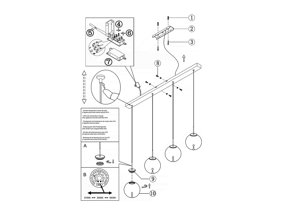 Ariel - Lampada a sospensione 4 luci Fabas Luce - LED 28W dimmerabile - Trasparente Design a sfera