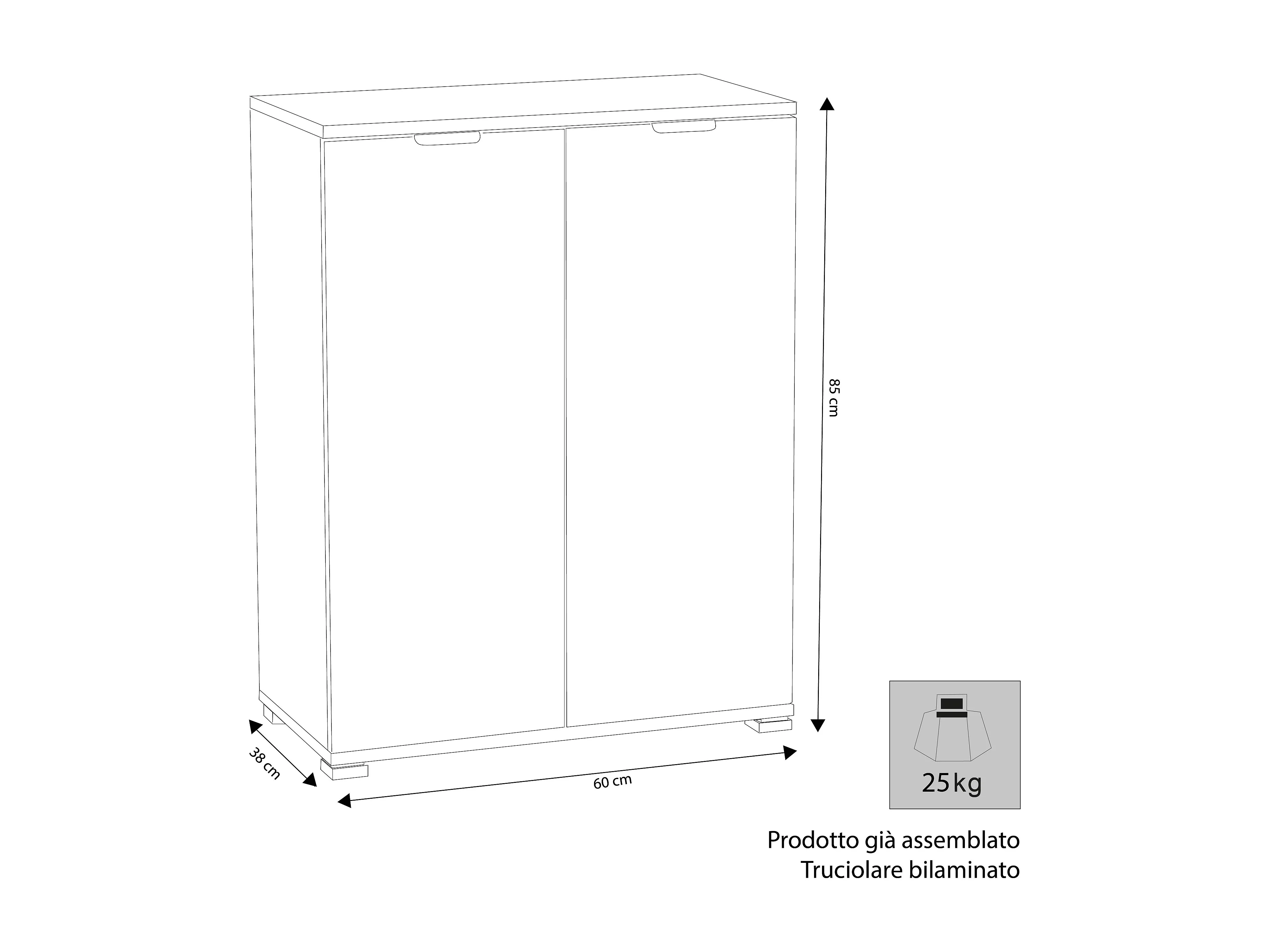MilaniHome.it - armadietto 2 ante per soggiorno cucina bagno fatto in Italia cm 60x38x85 hdi coloreRovere grigio