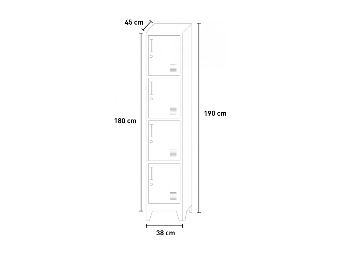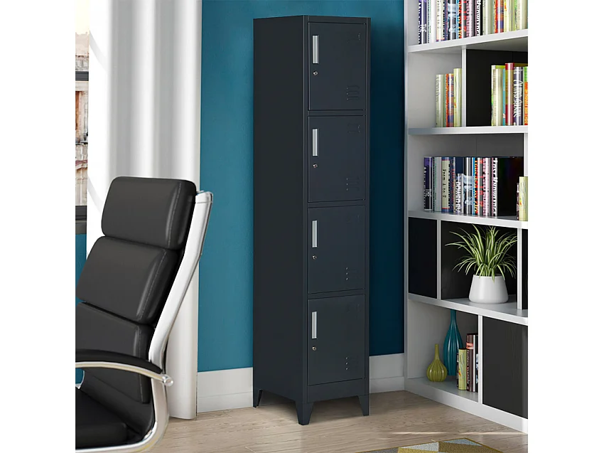 Armadietto a colonna 4 scomparti 38x45 H190 in metallo con serratura per ufficio Stromboli