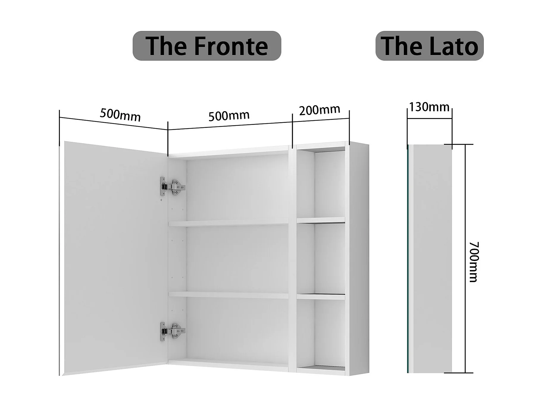 Armadietto a muro da Bagno con Specchio 50x70cm e Pensile Alto, Set Completo, Bianco