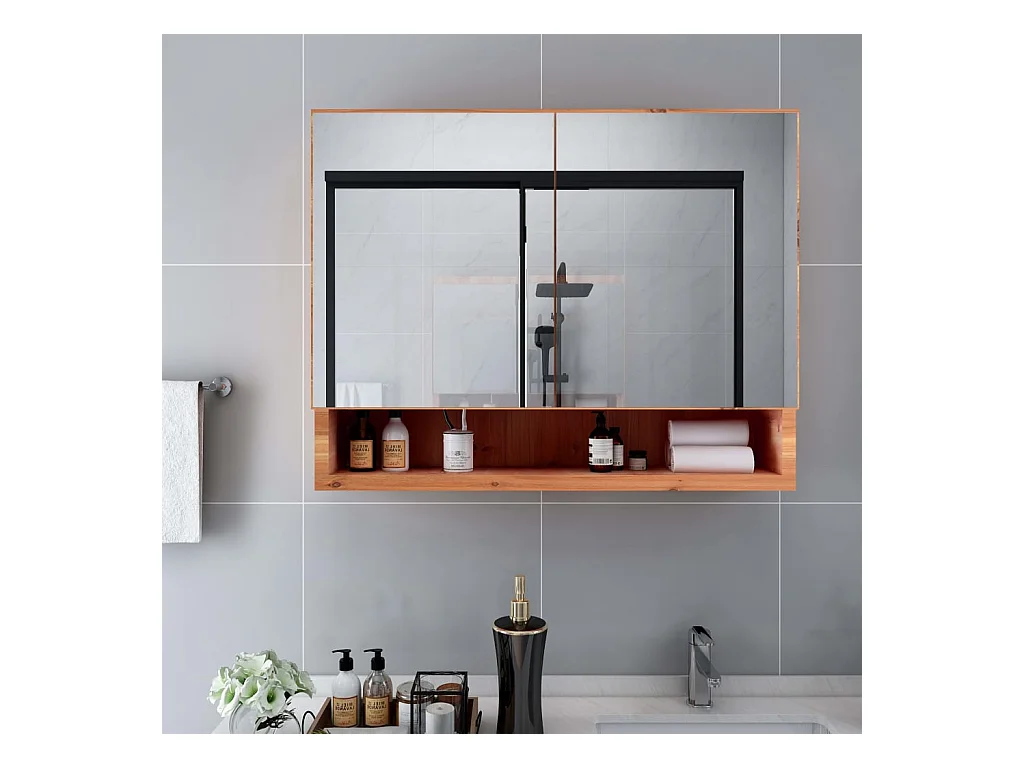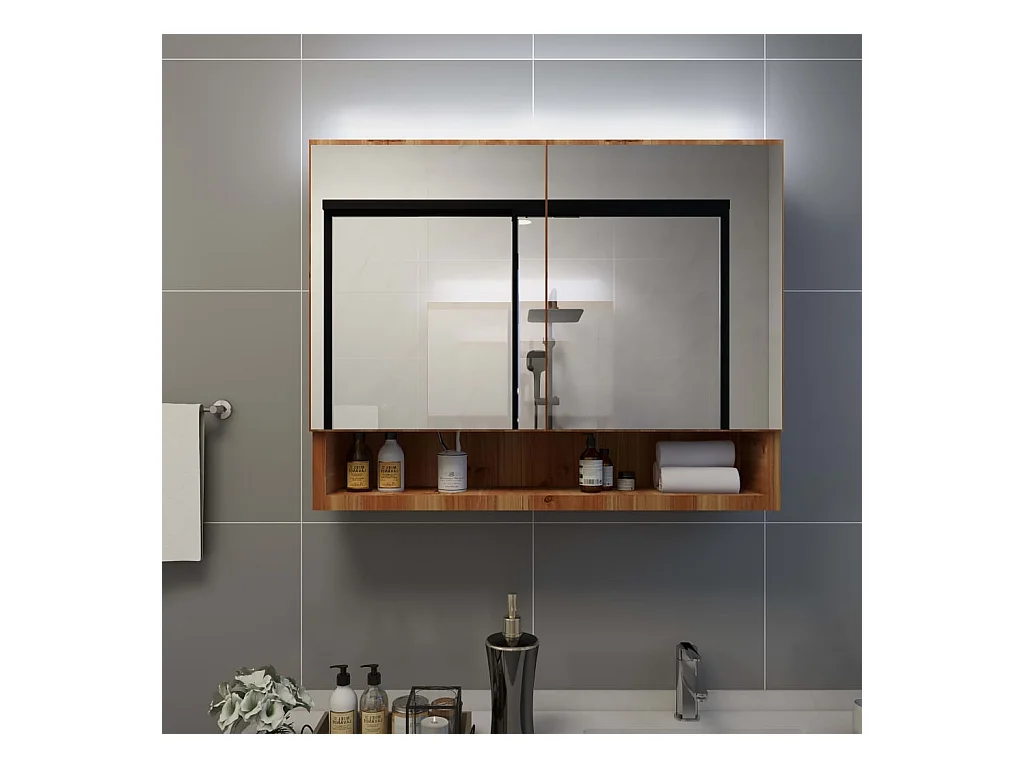 Armadietto Specchio con LED Rovere Marrone 80x12x45cm Acrilico