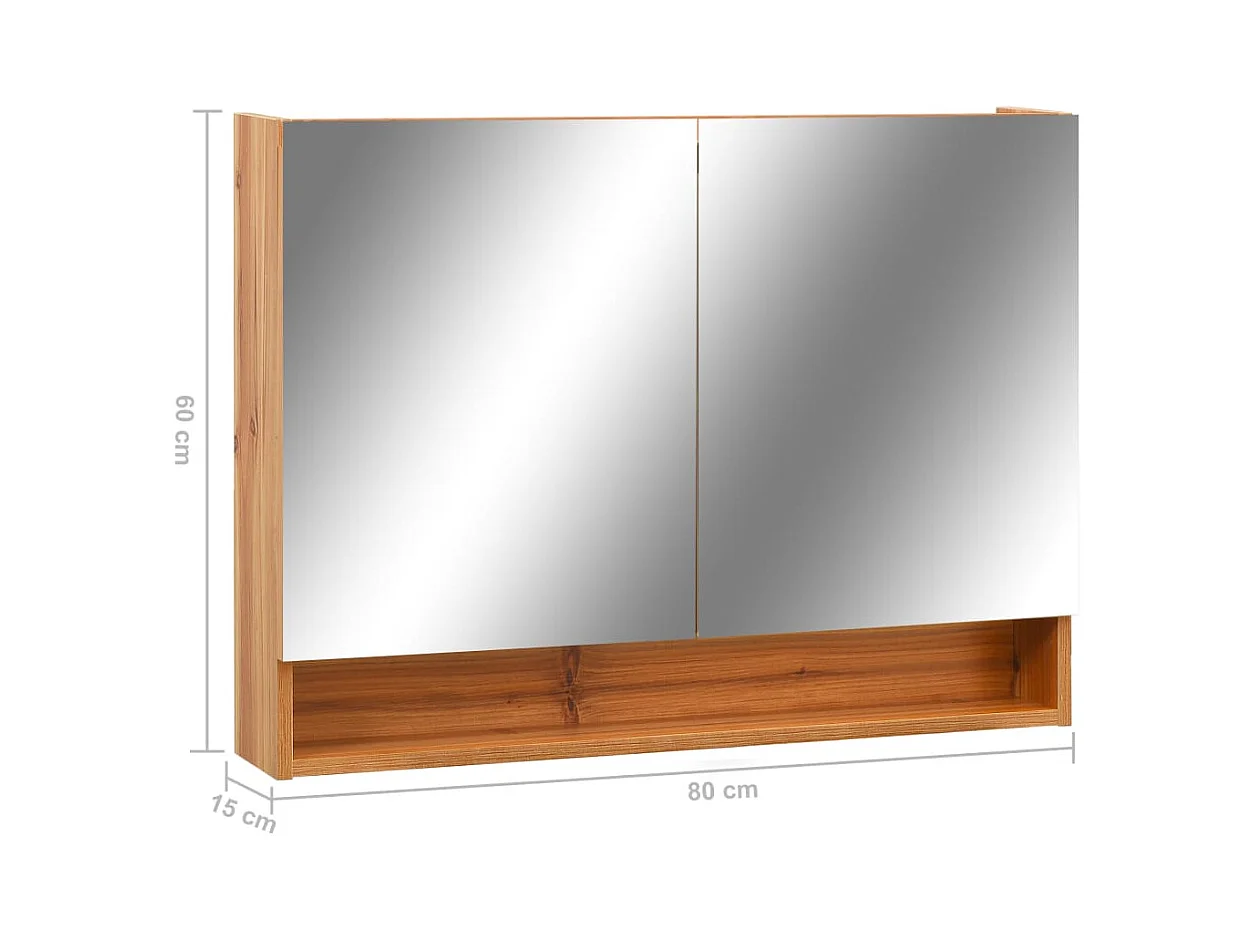 Armadietto a Specchio con LED Rovere 80x15x60 cm in MDF