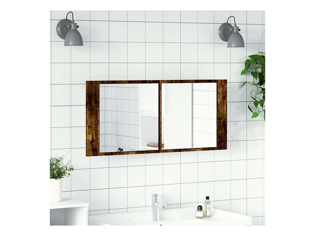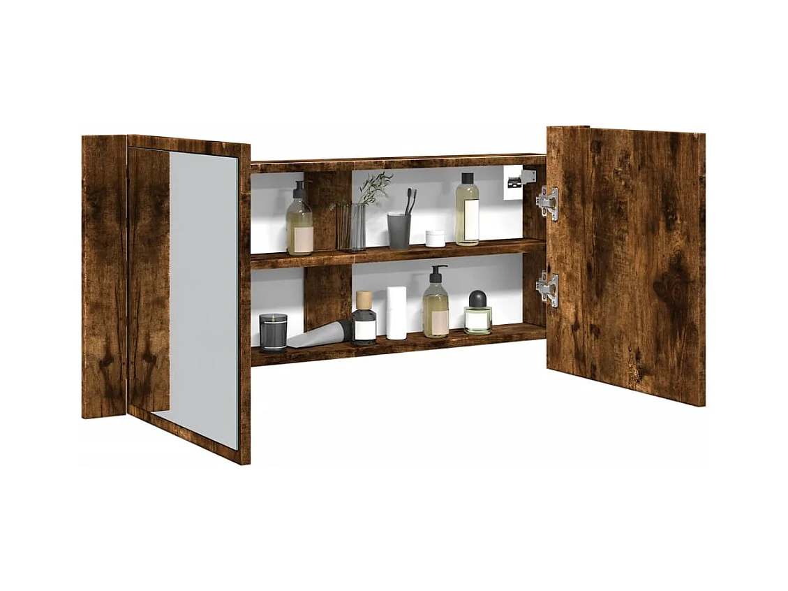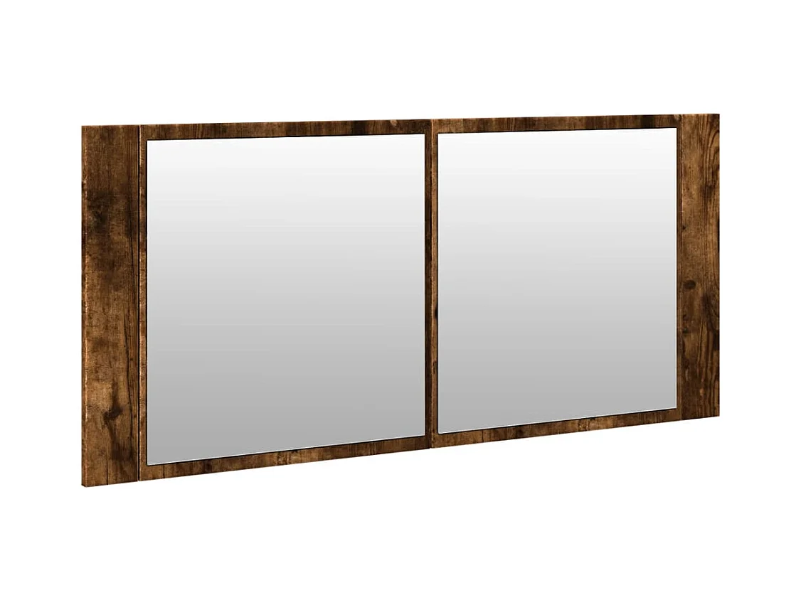 Armadietto a Specchio con LED Rovere Fumo 100x12x45 cm