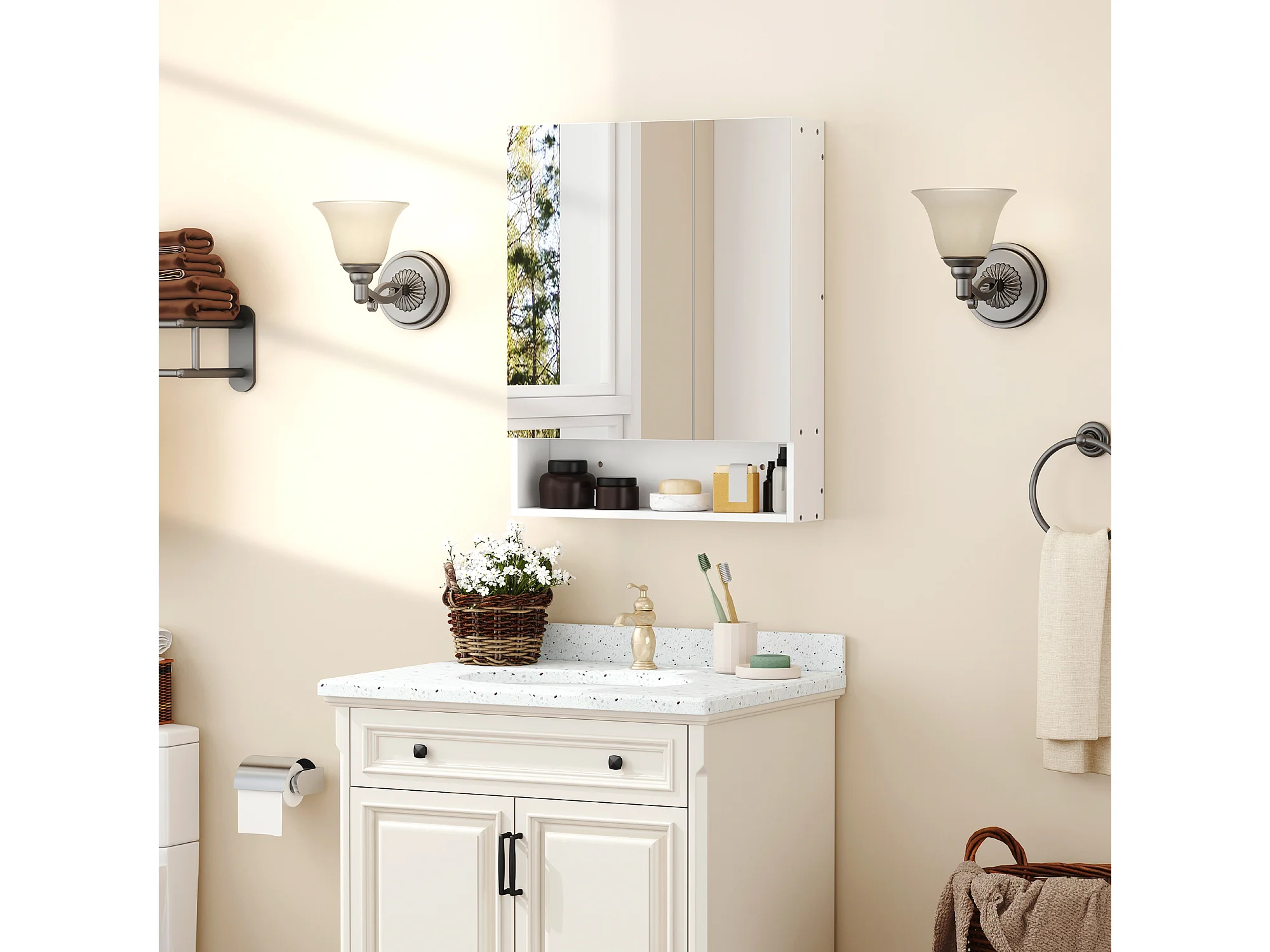 Specchio contenitore bagno bianco 60x20x60 ruben
