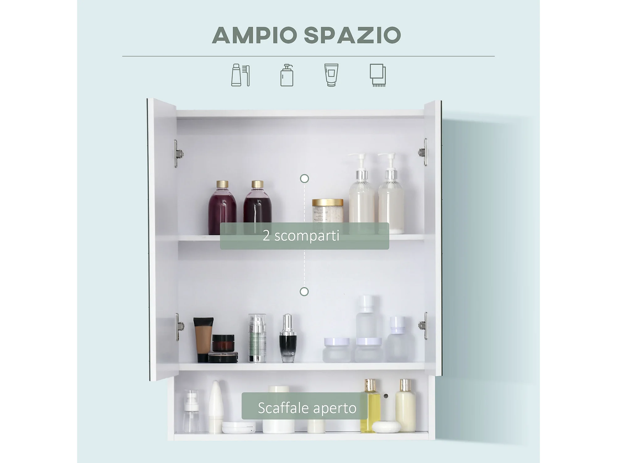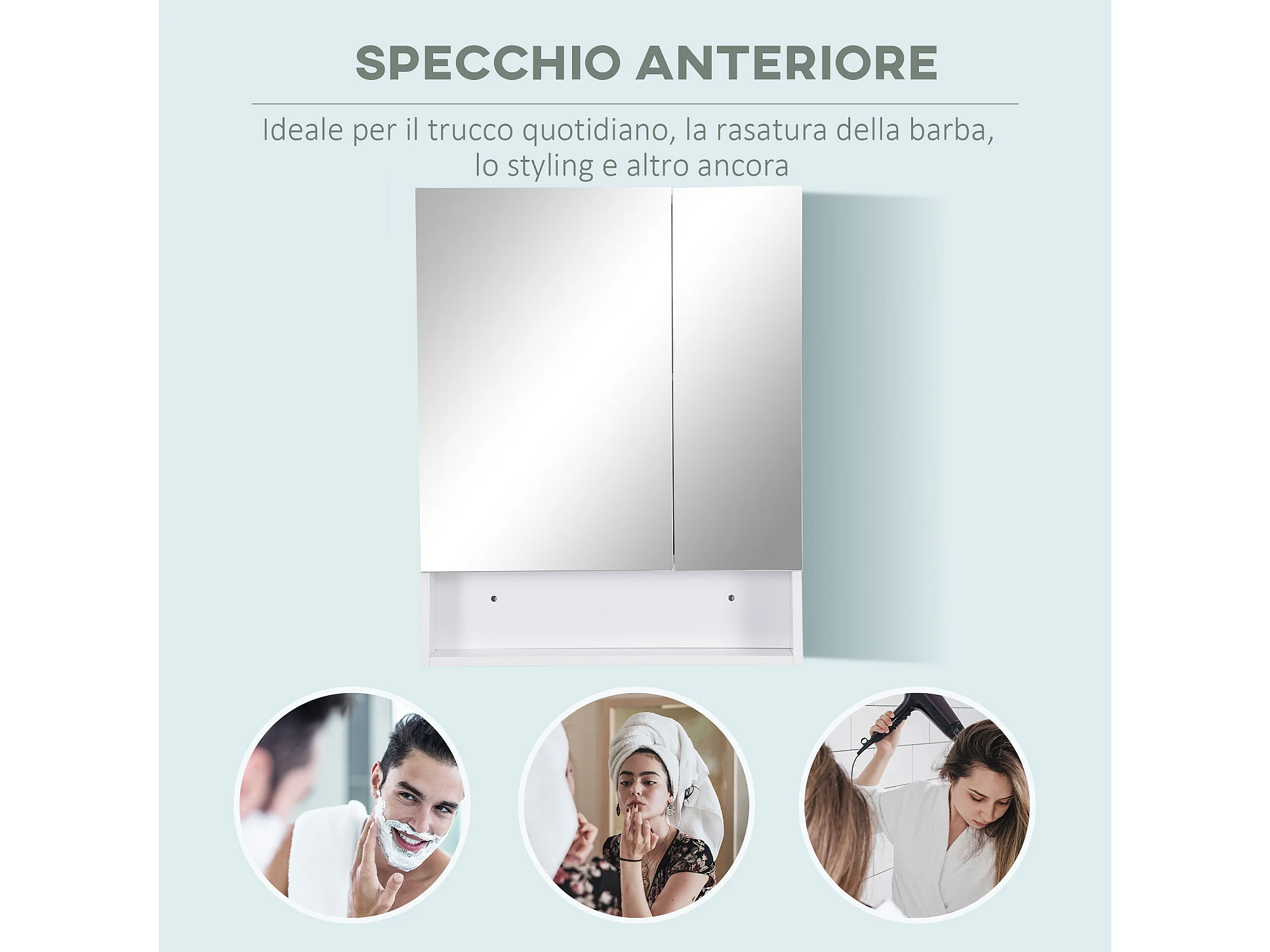 Armadietto a specchio con porte credenze e ripiano regolabile