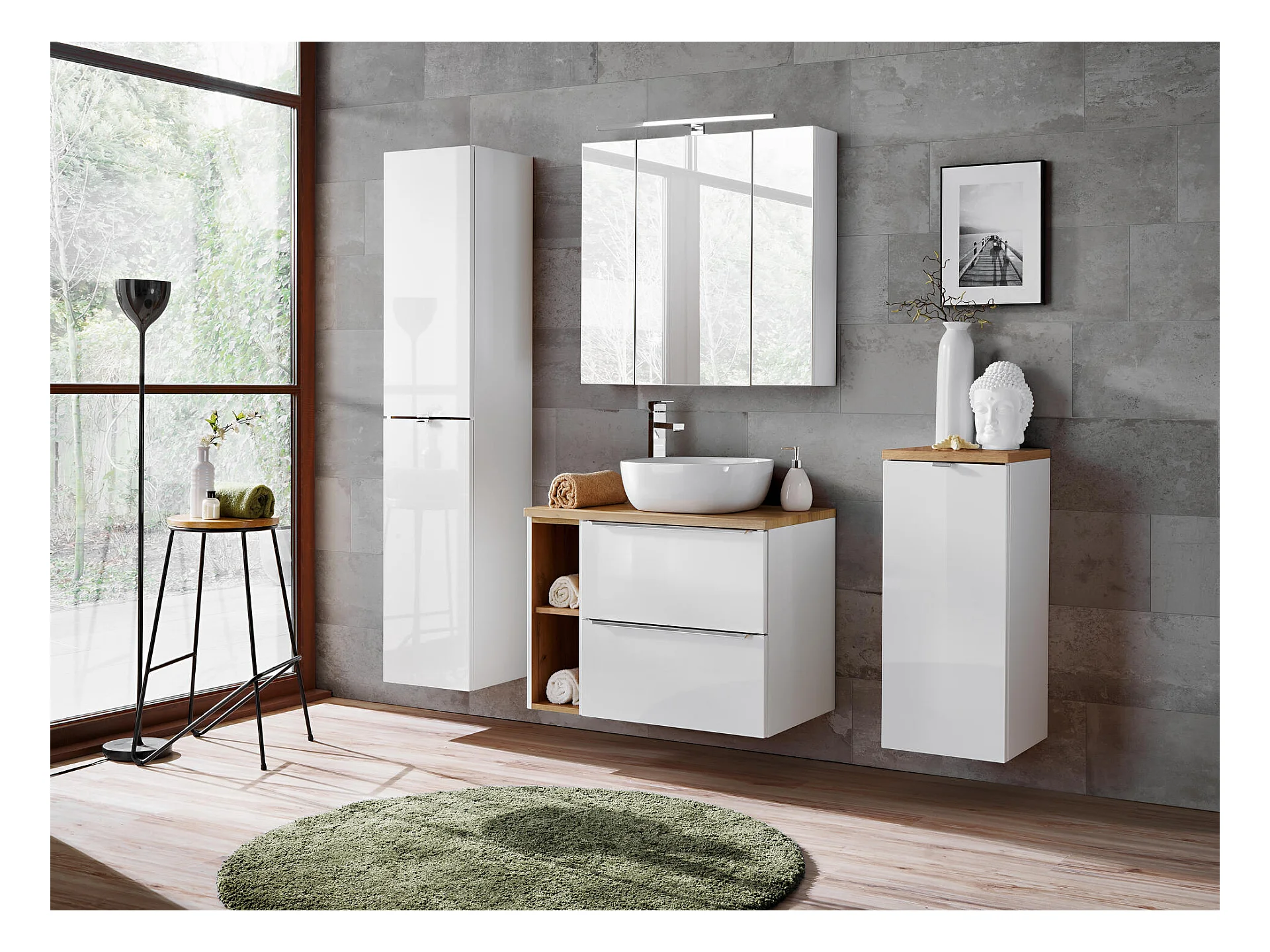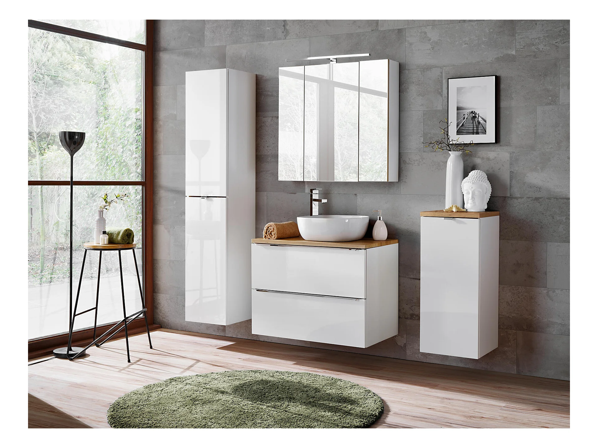 Mobile bagno, Bianco opaco, 35 x 136 x 27 cm, maniglie dorate