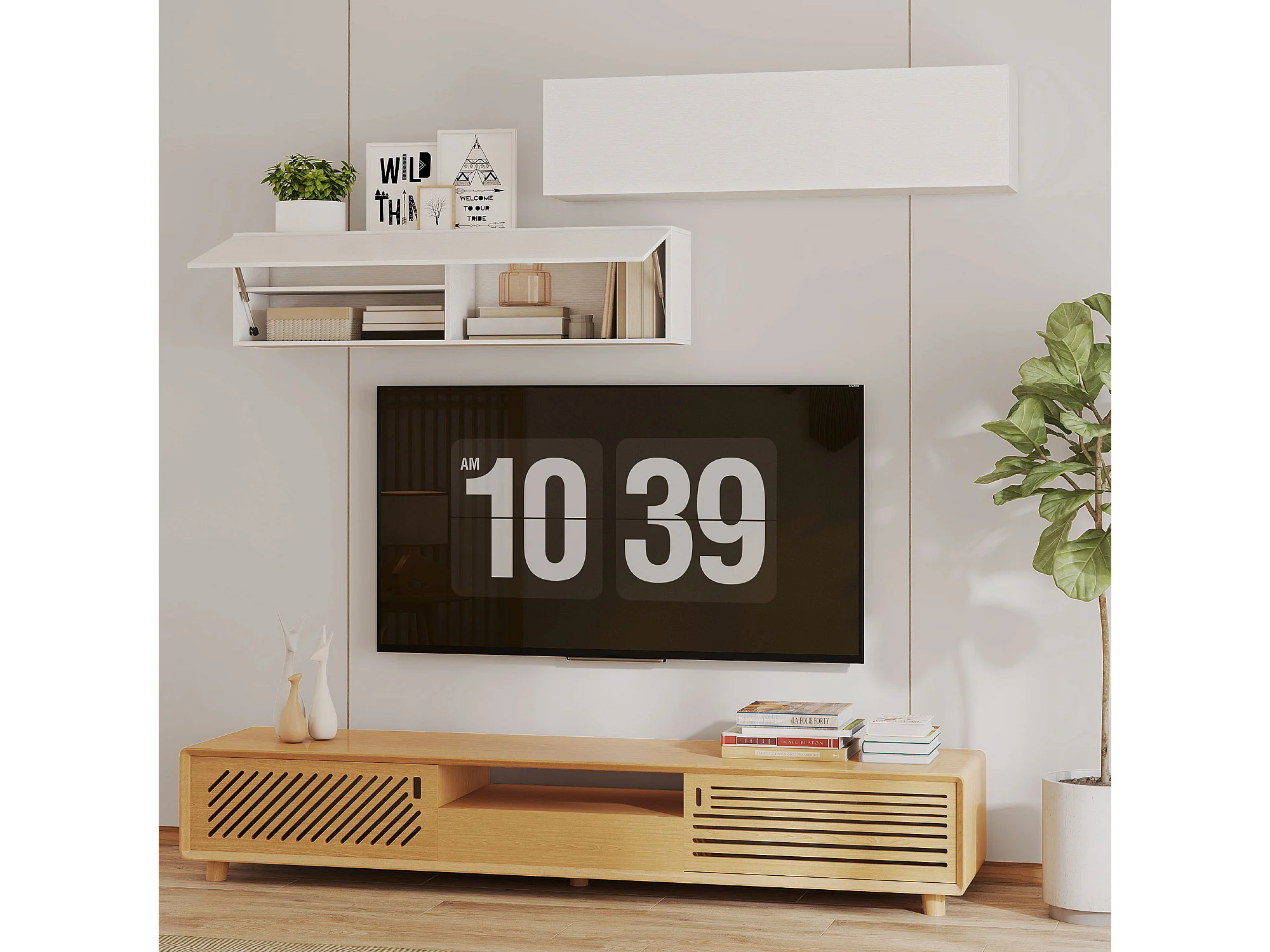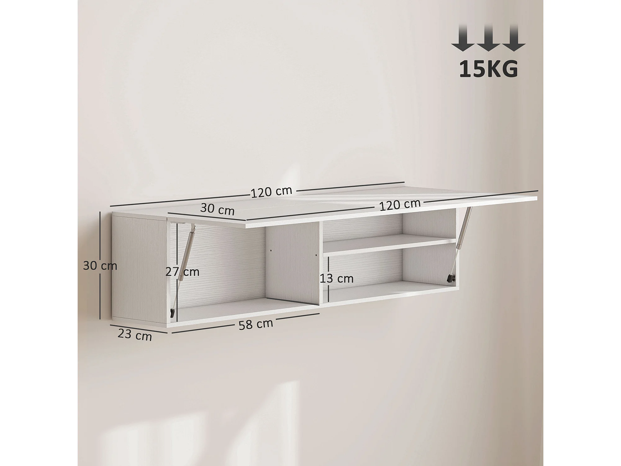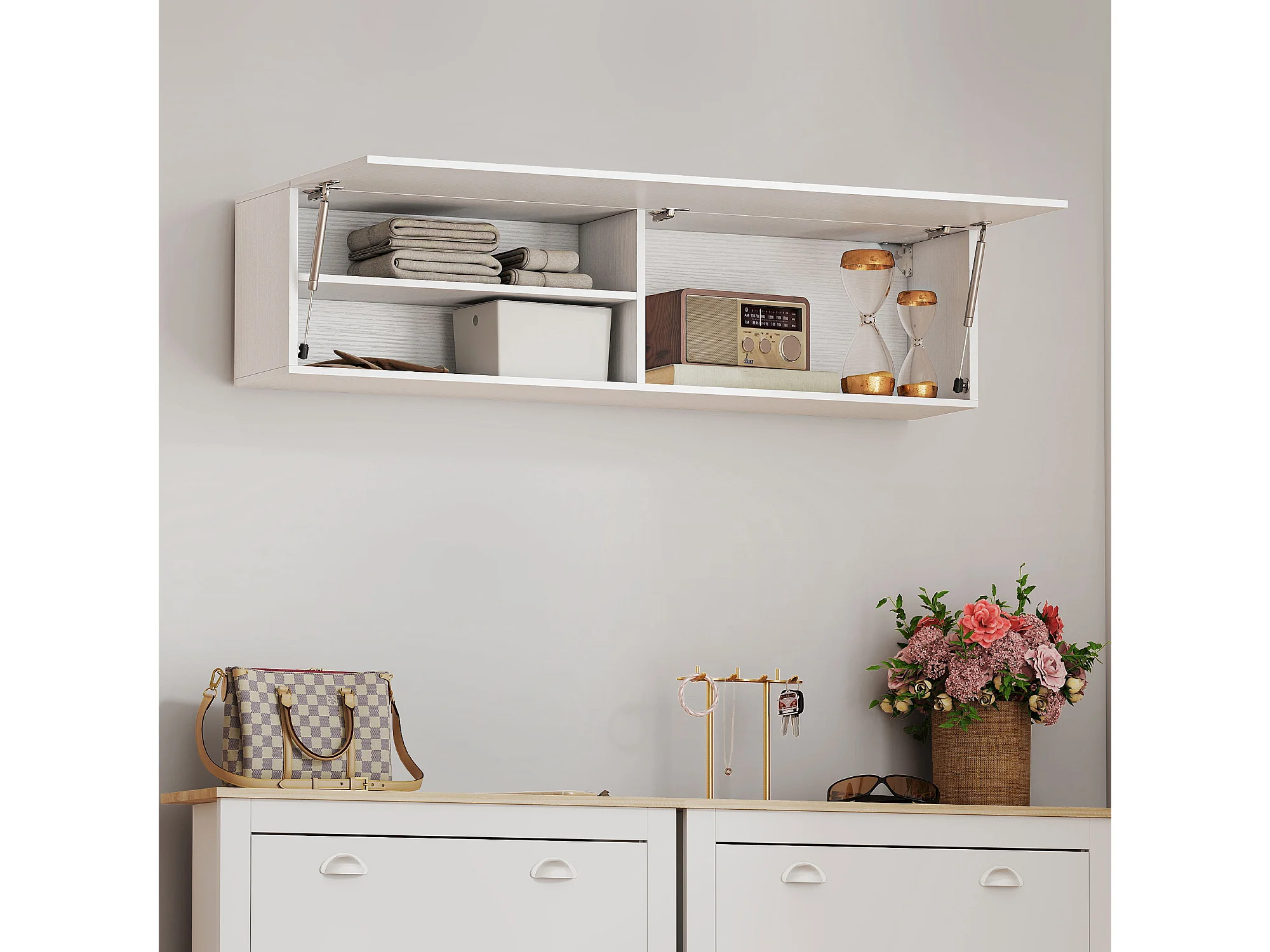 Armadietto bagno a parete con anta ammortizzata e 2 vani bianco