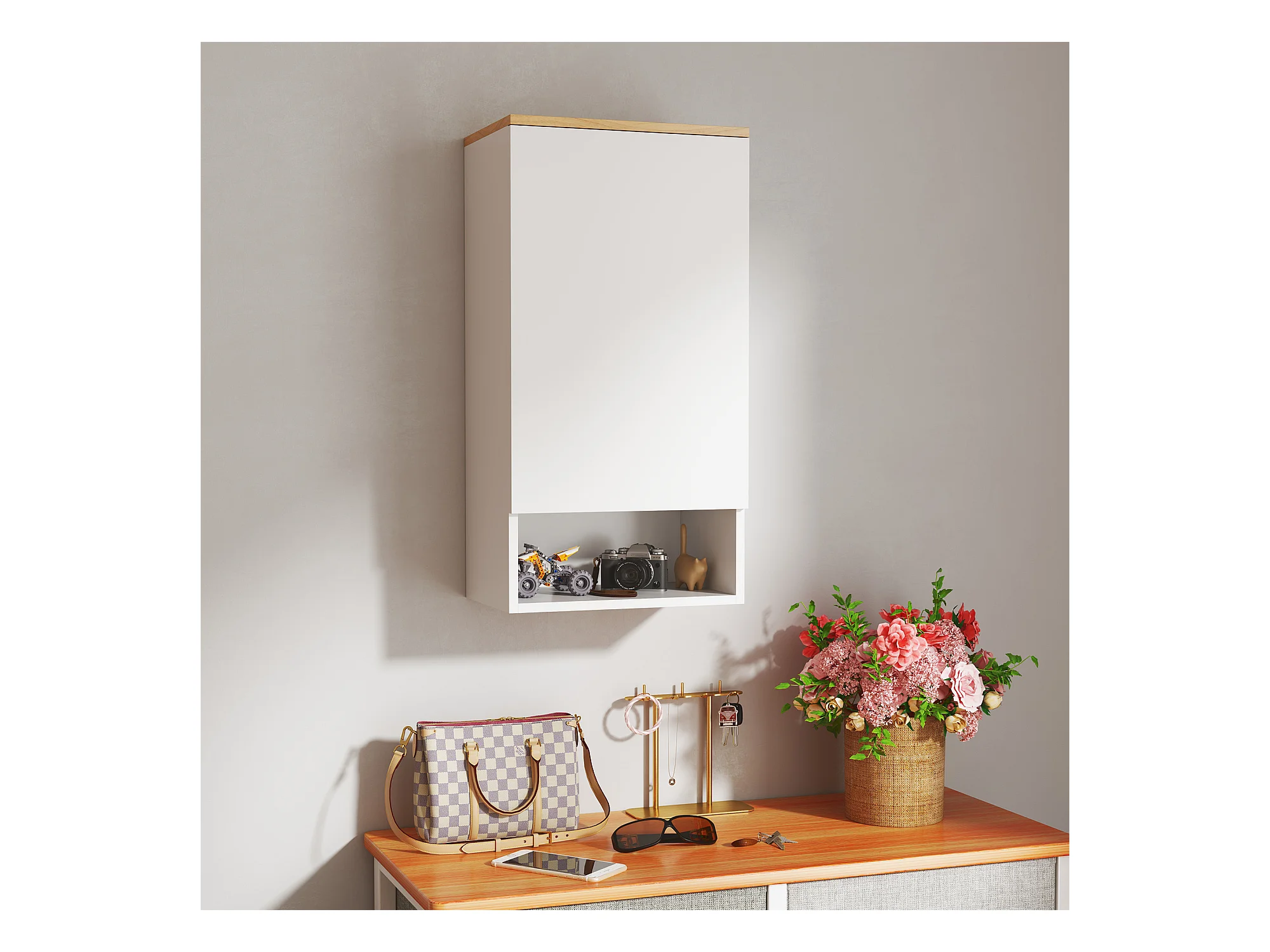 Armadietto bagno a parete con ripiano aperto in legno bianco