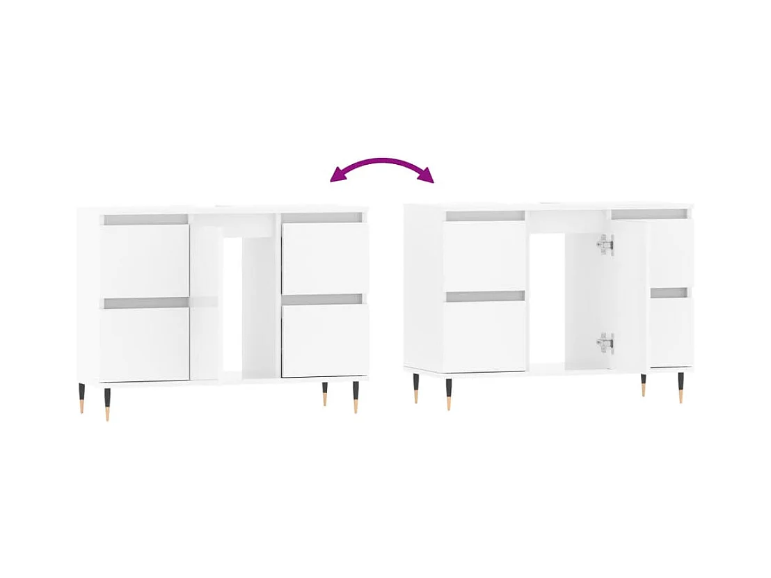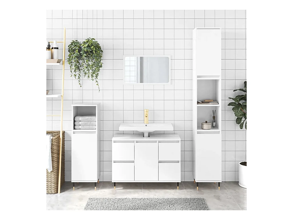 Armadietto Bagno Bianco Lucido 80x33x60cm in Legno Multistrato