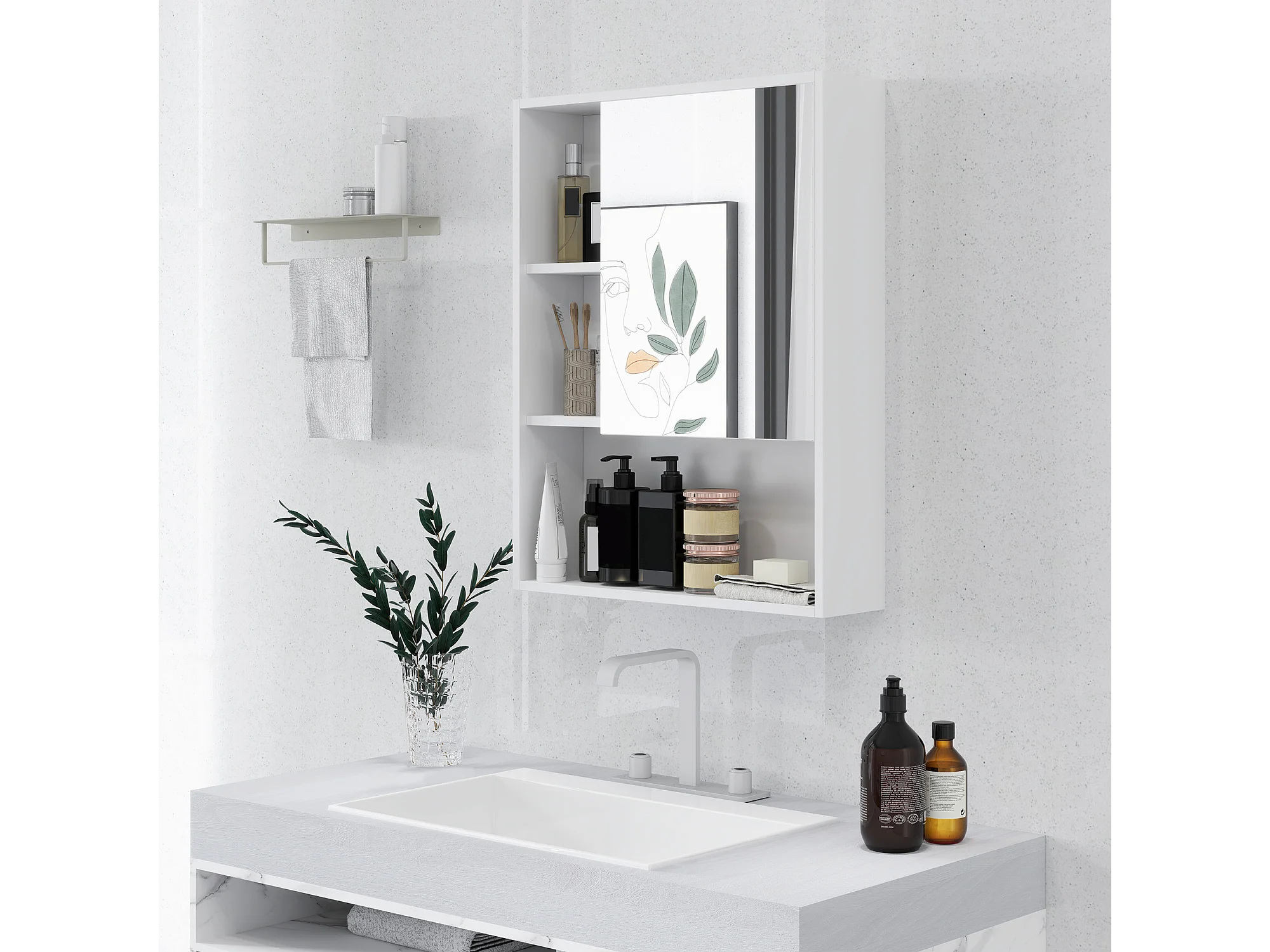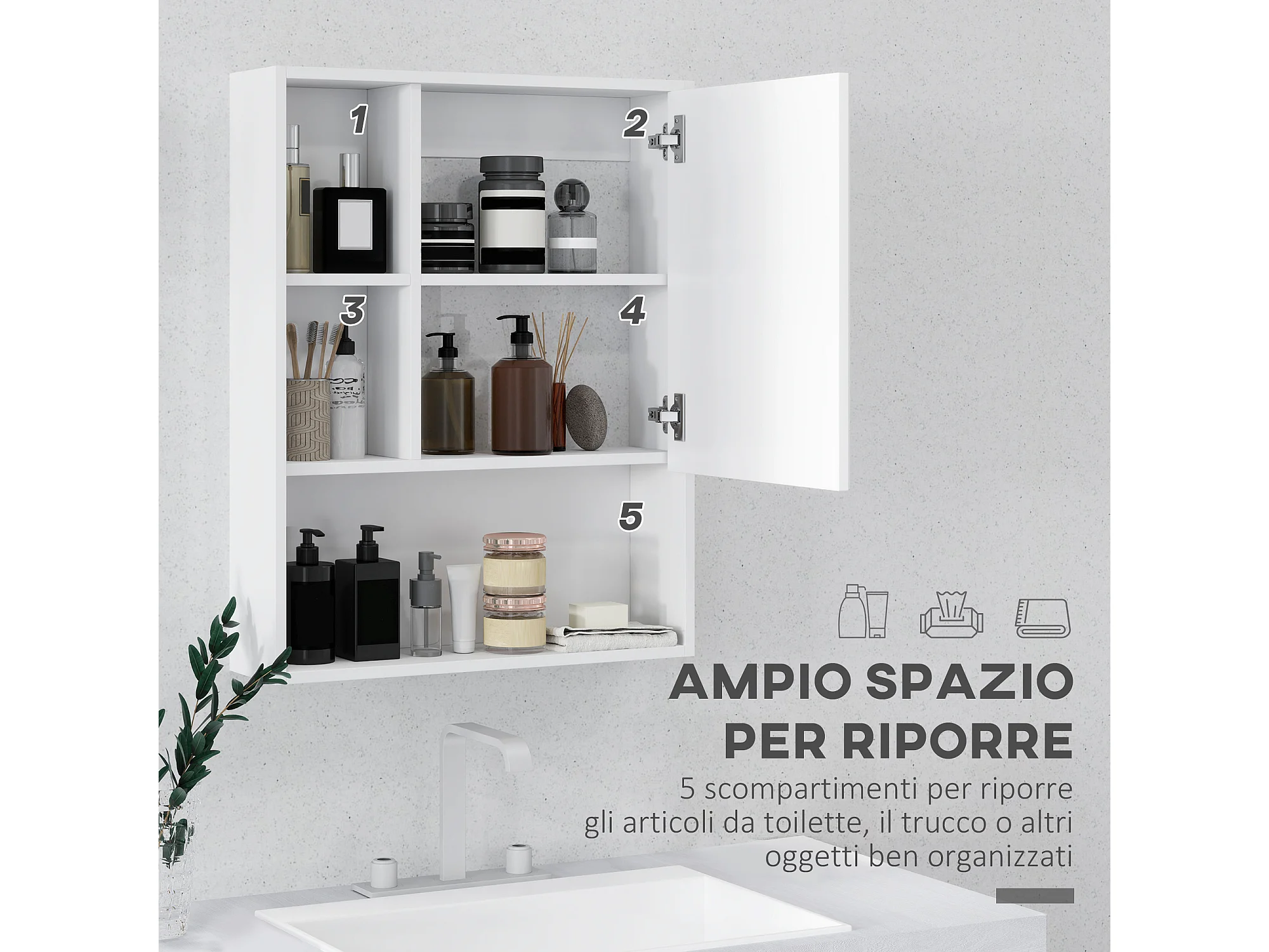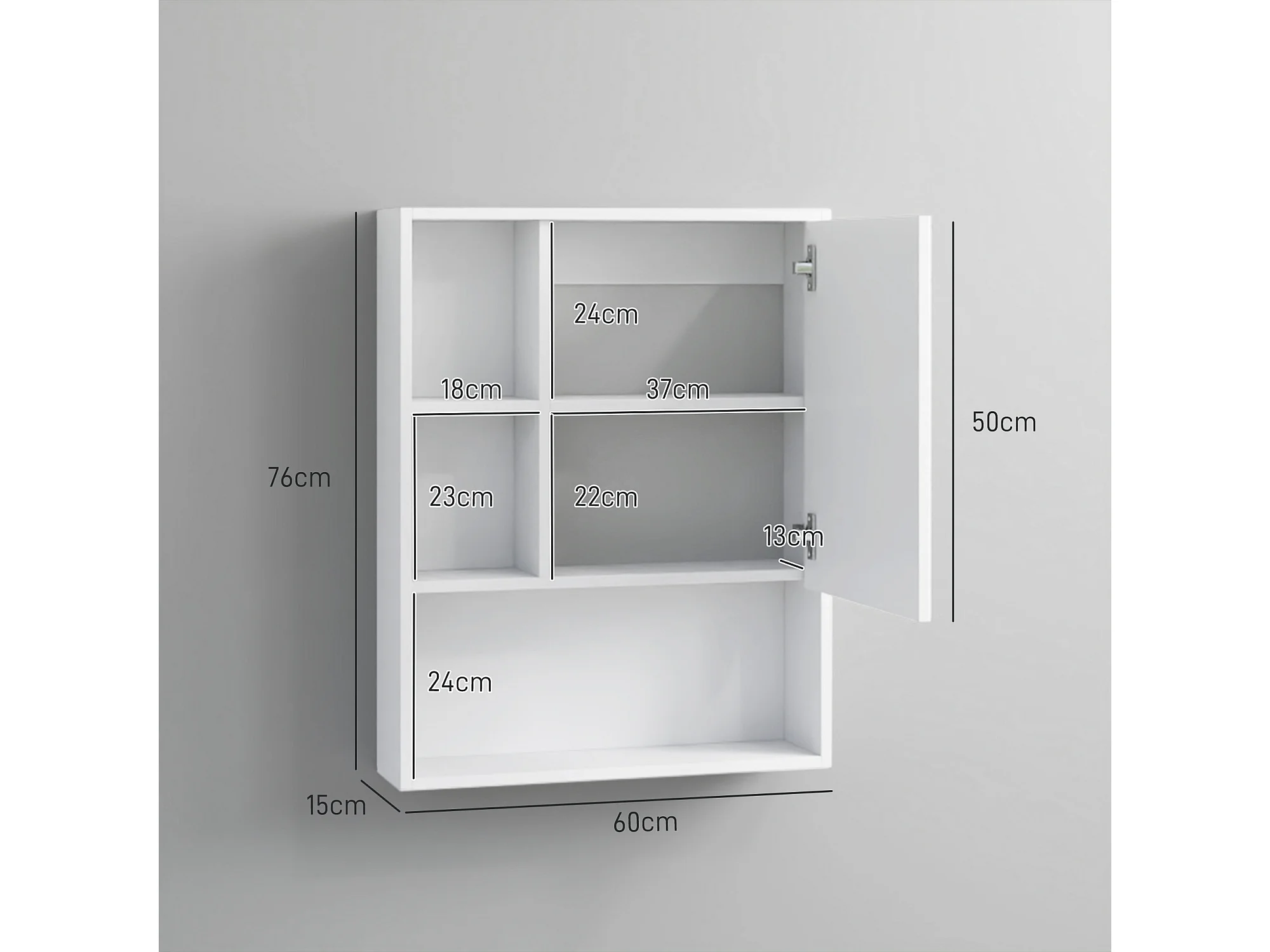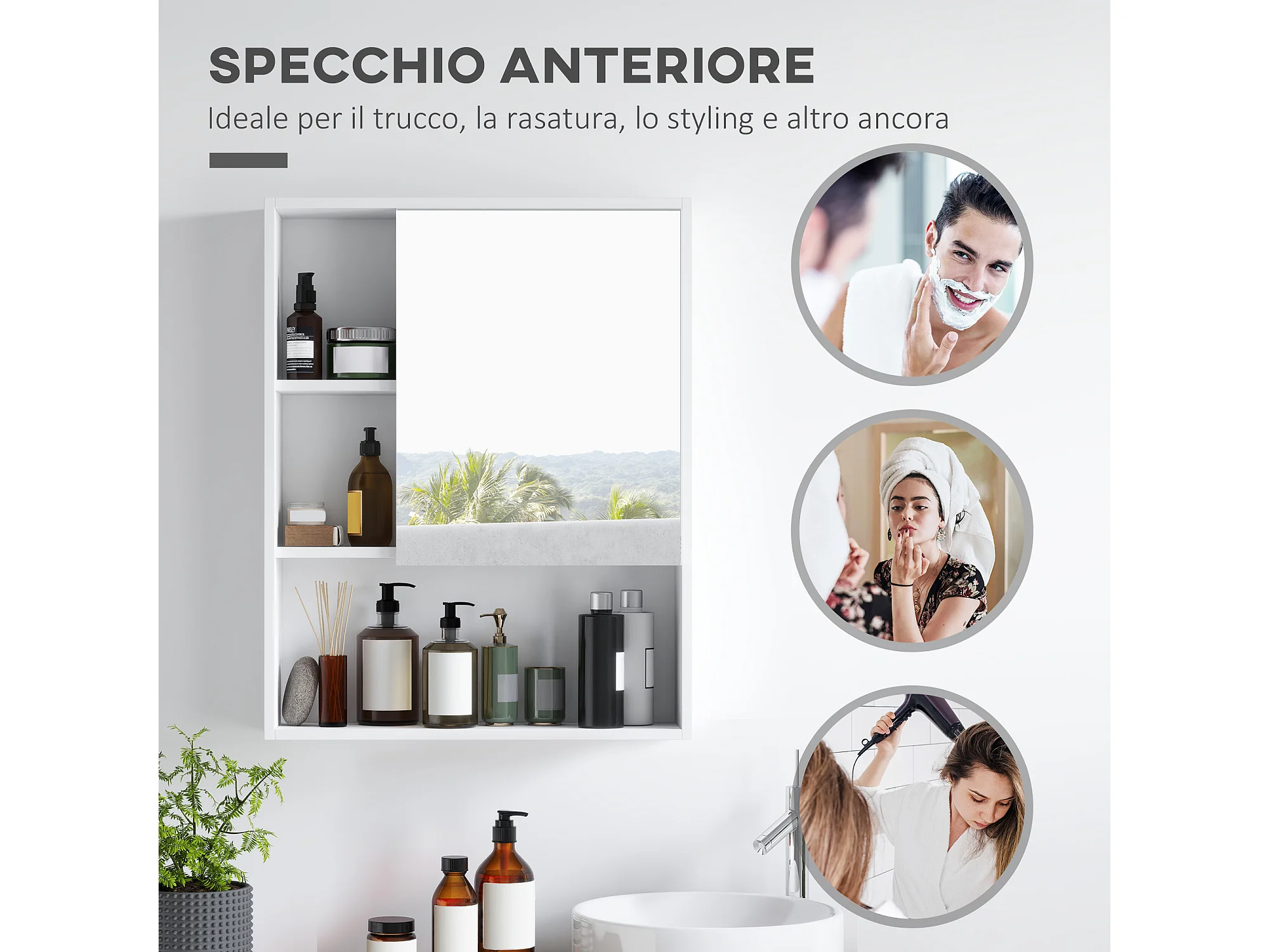 Armadietto bagno con specchio e ripiani interni ed esterni bianco