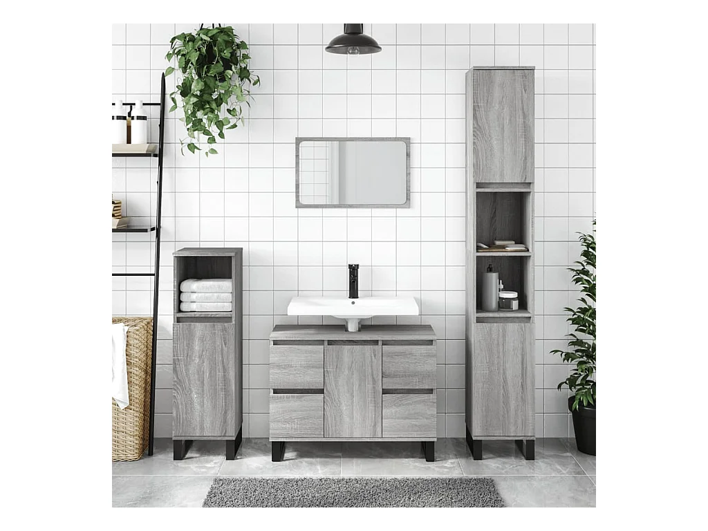 Armadietto Bagno Grigio Sonoma 30x30x100cm in Legno Multistrato