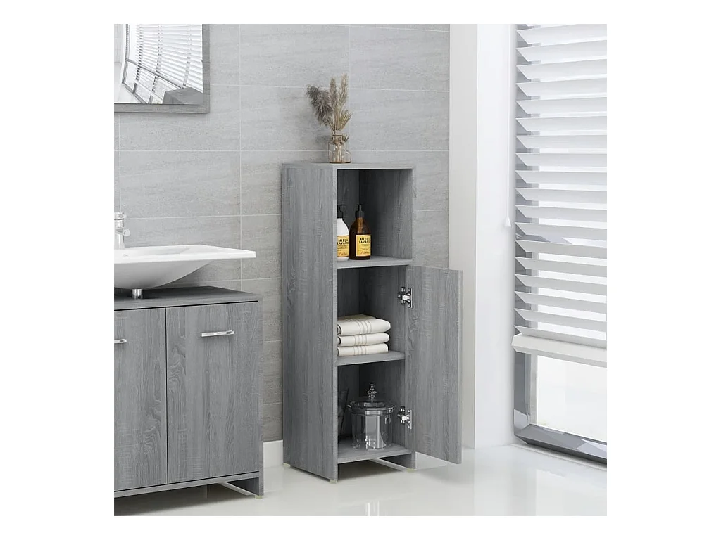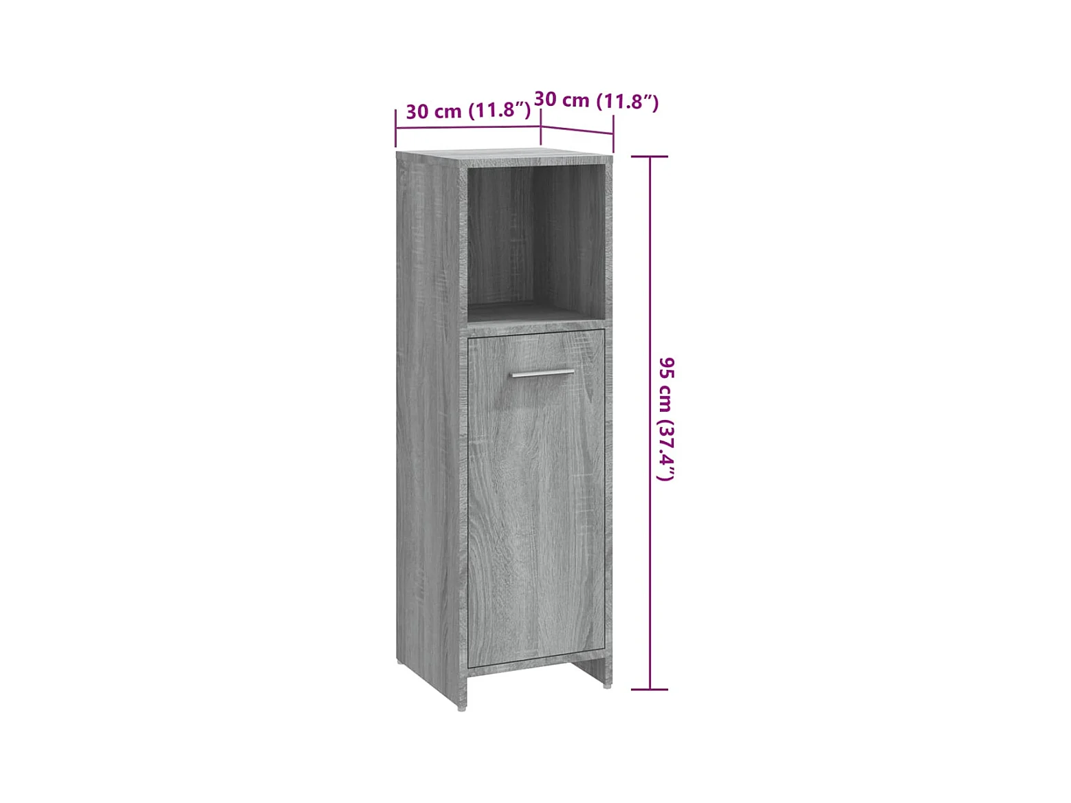 Armadietto Bagno Grigio Sonoma 30x30x95 cm in Legno Multistrato