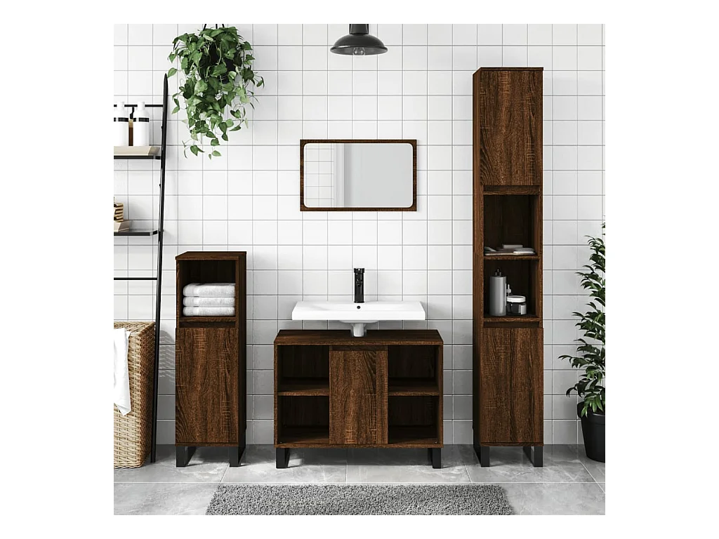 Armadietto Bagno Rovere Marrone 80x33x60cm in Legno Multistrato