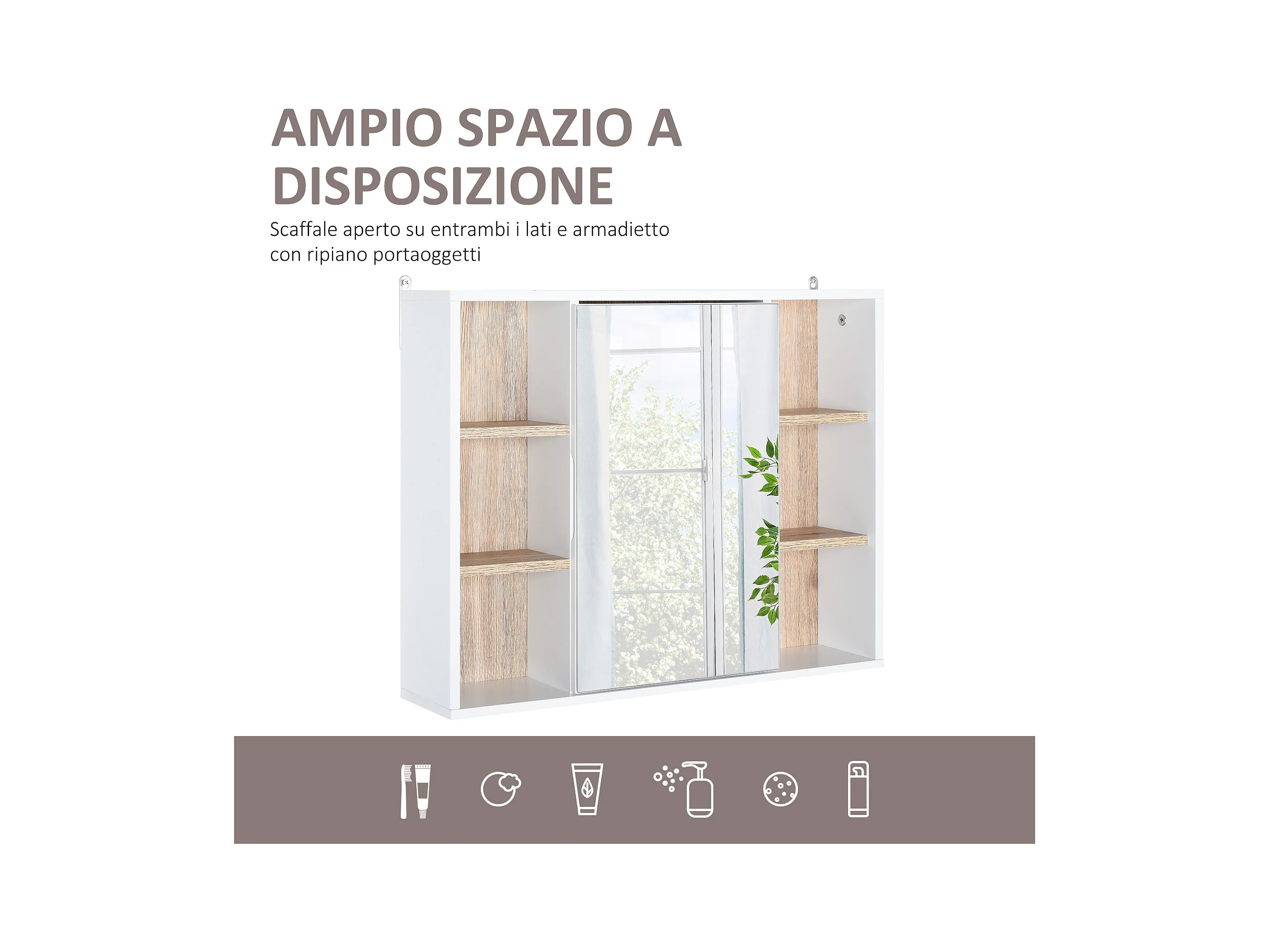 Armadietto con specchio 3 ripiani regolabili e ripiano interno