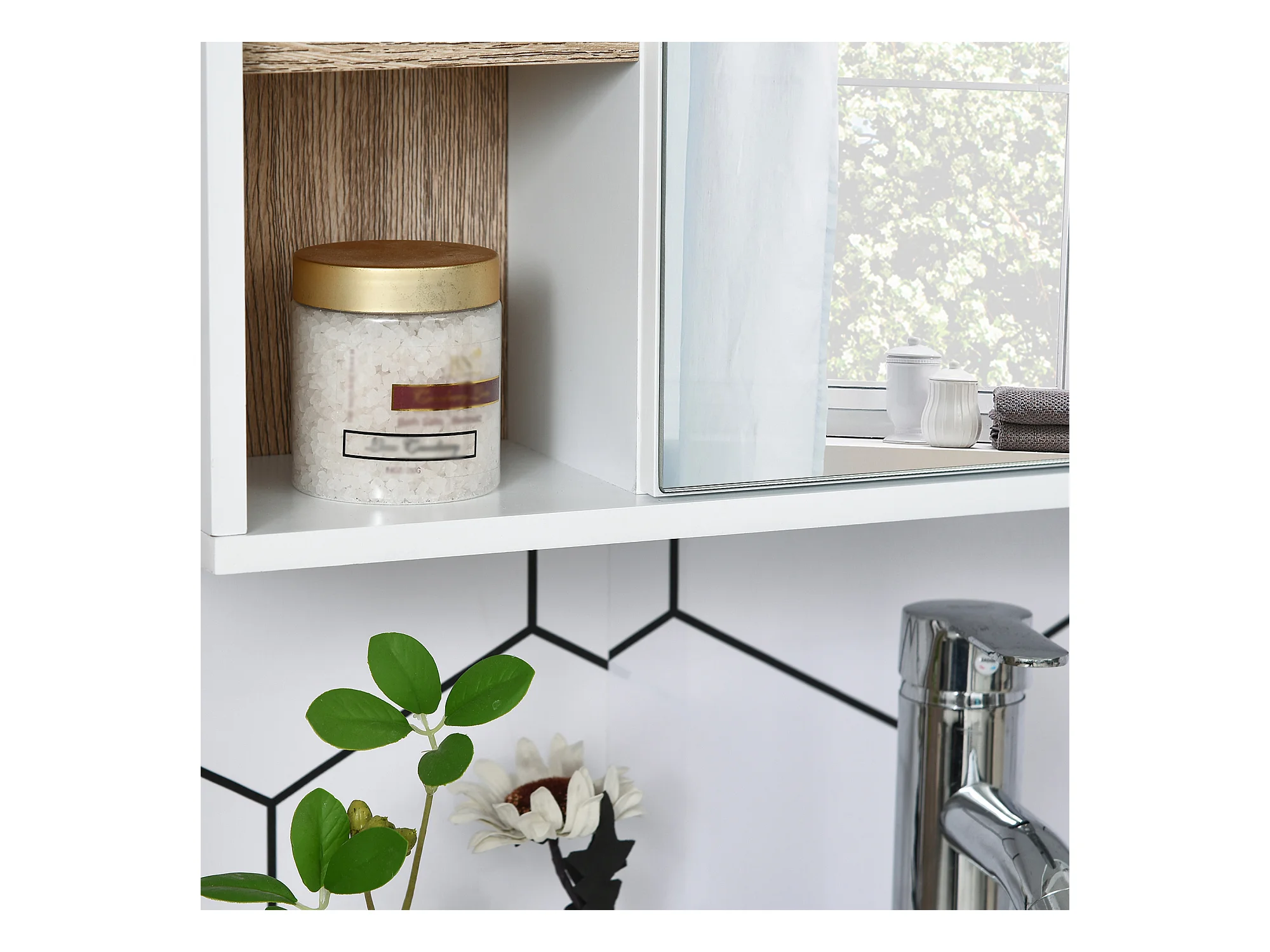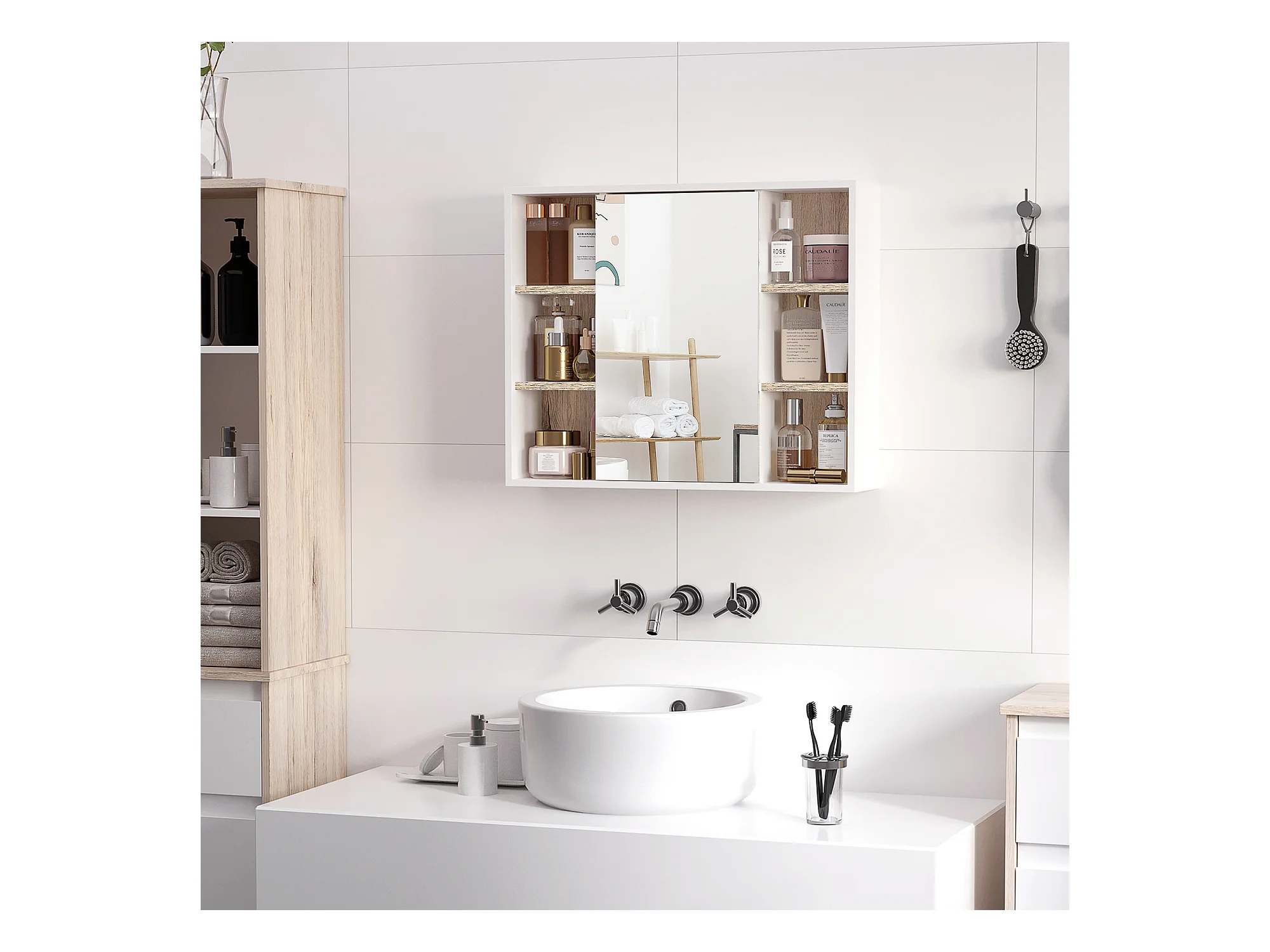 Armadietto bagno 2 ante con specchi e ripiano regolabile in mdf bianco