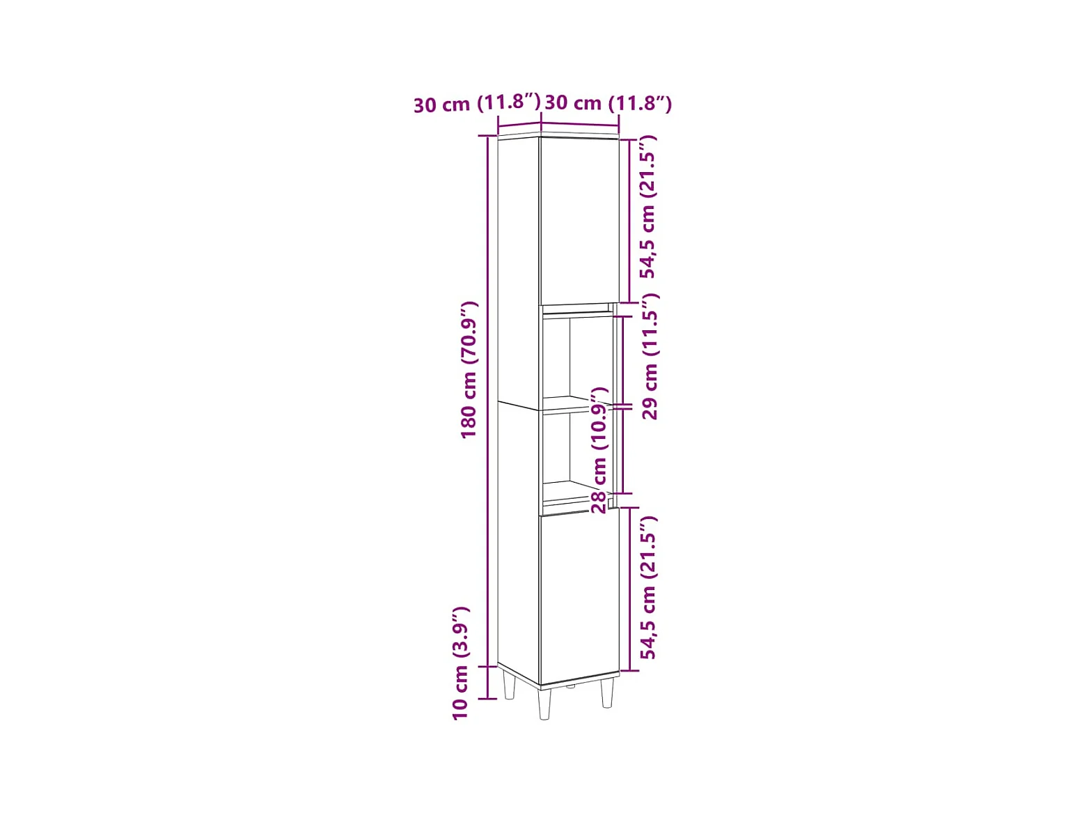 Armadietto da Bagno Rovere Artigianale 30x30x100 cm Truciolato