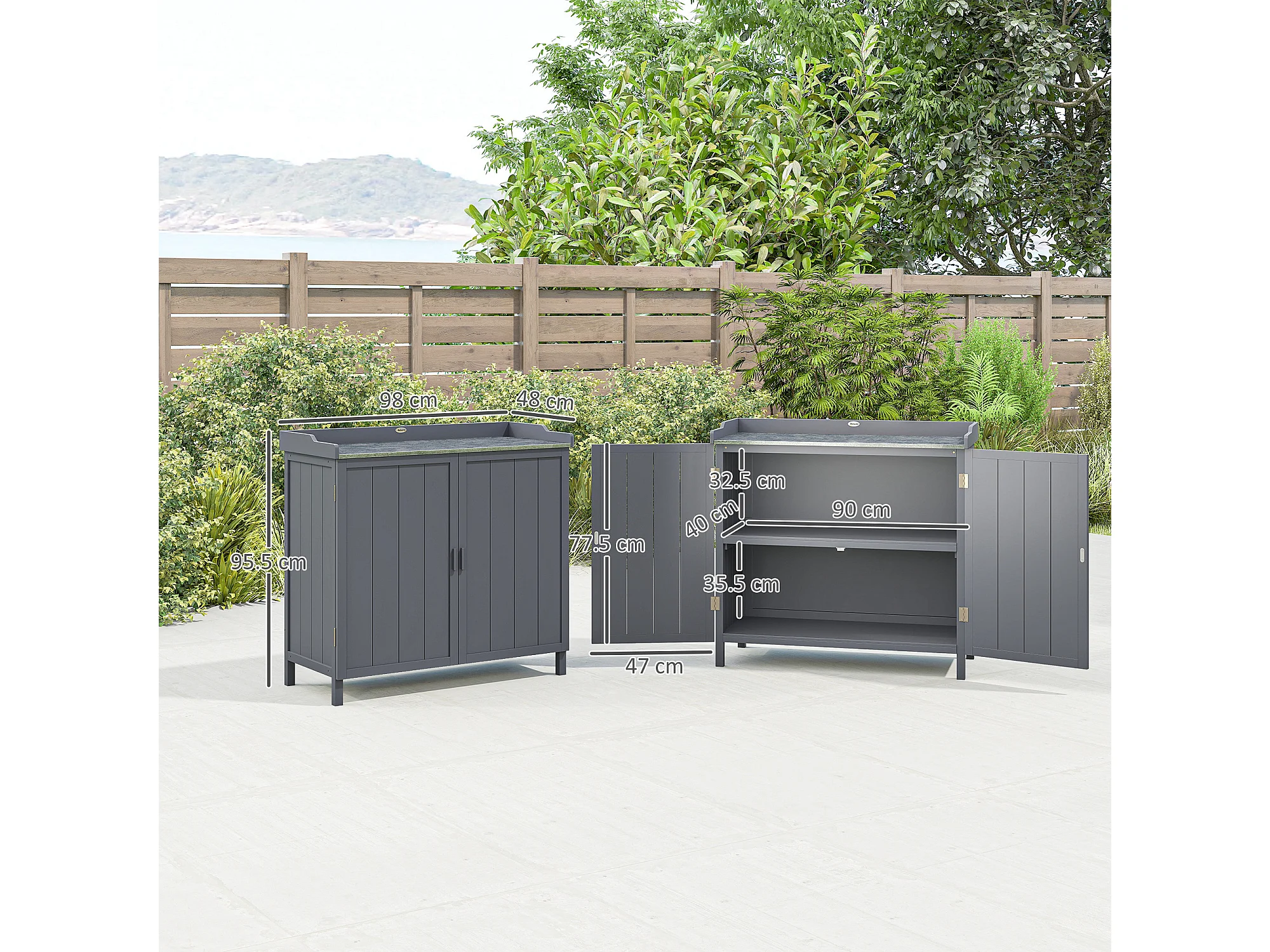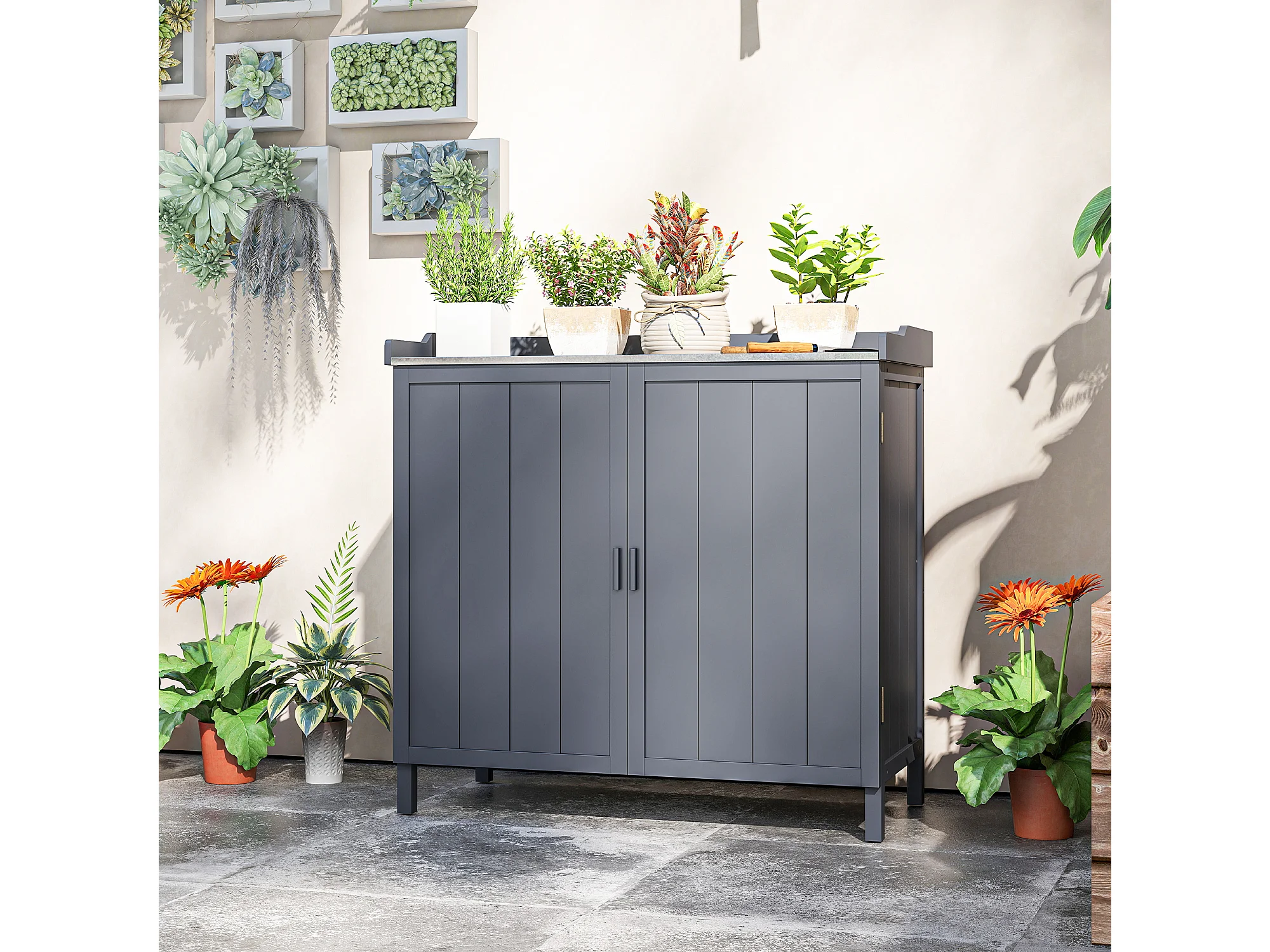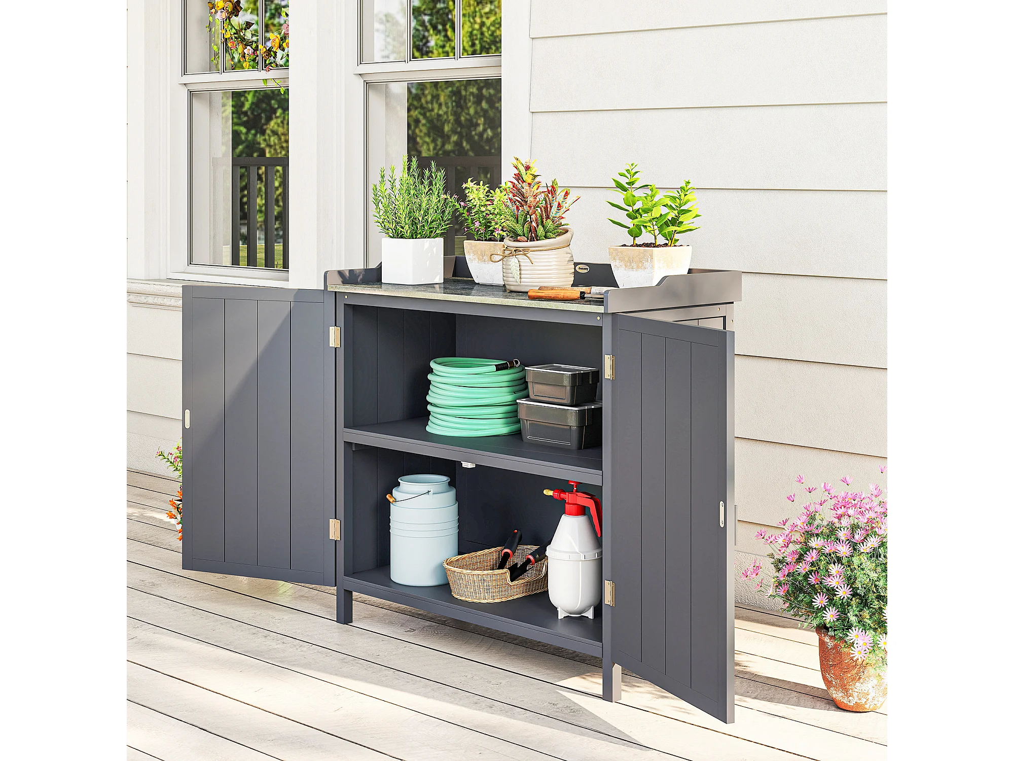 Armadietto da esterno a 2 livelli in legno e metallo grigio
