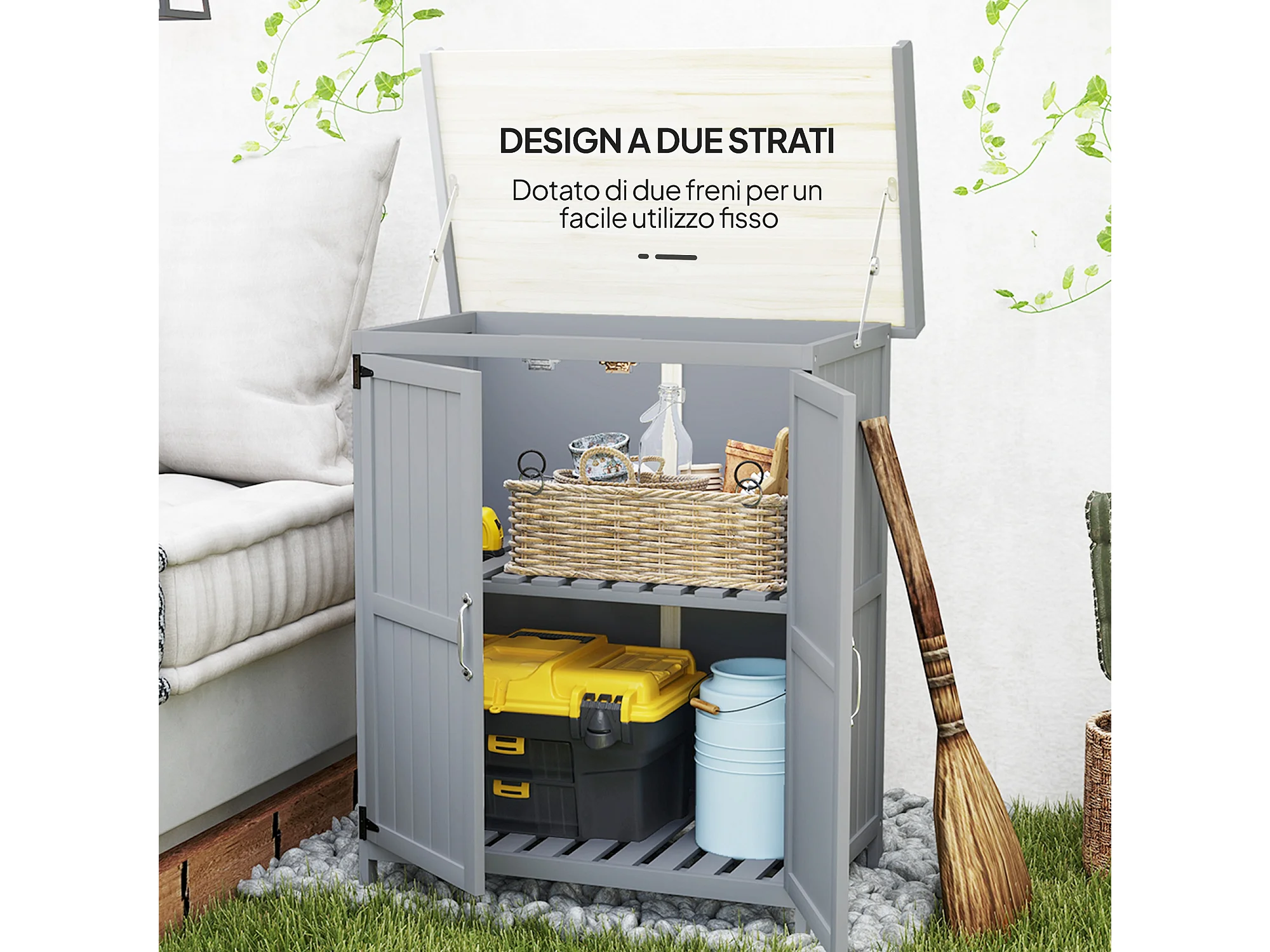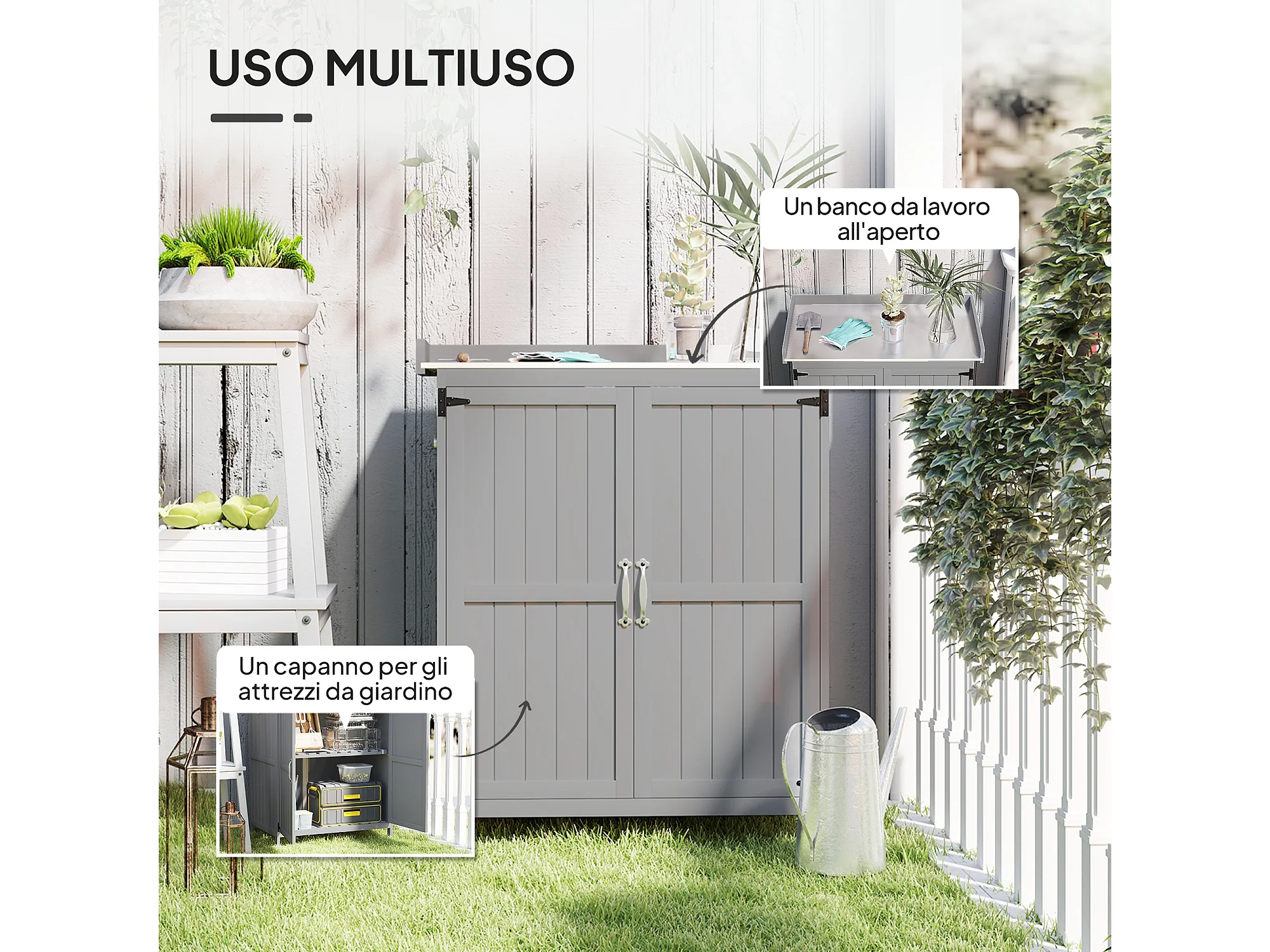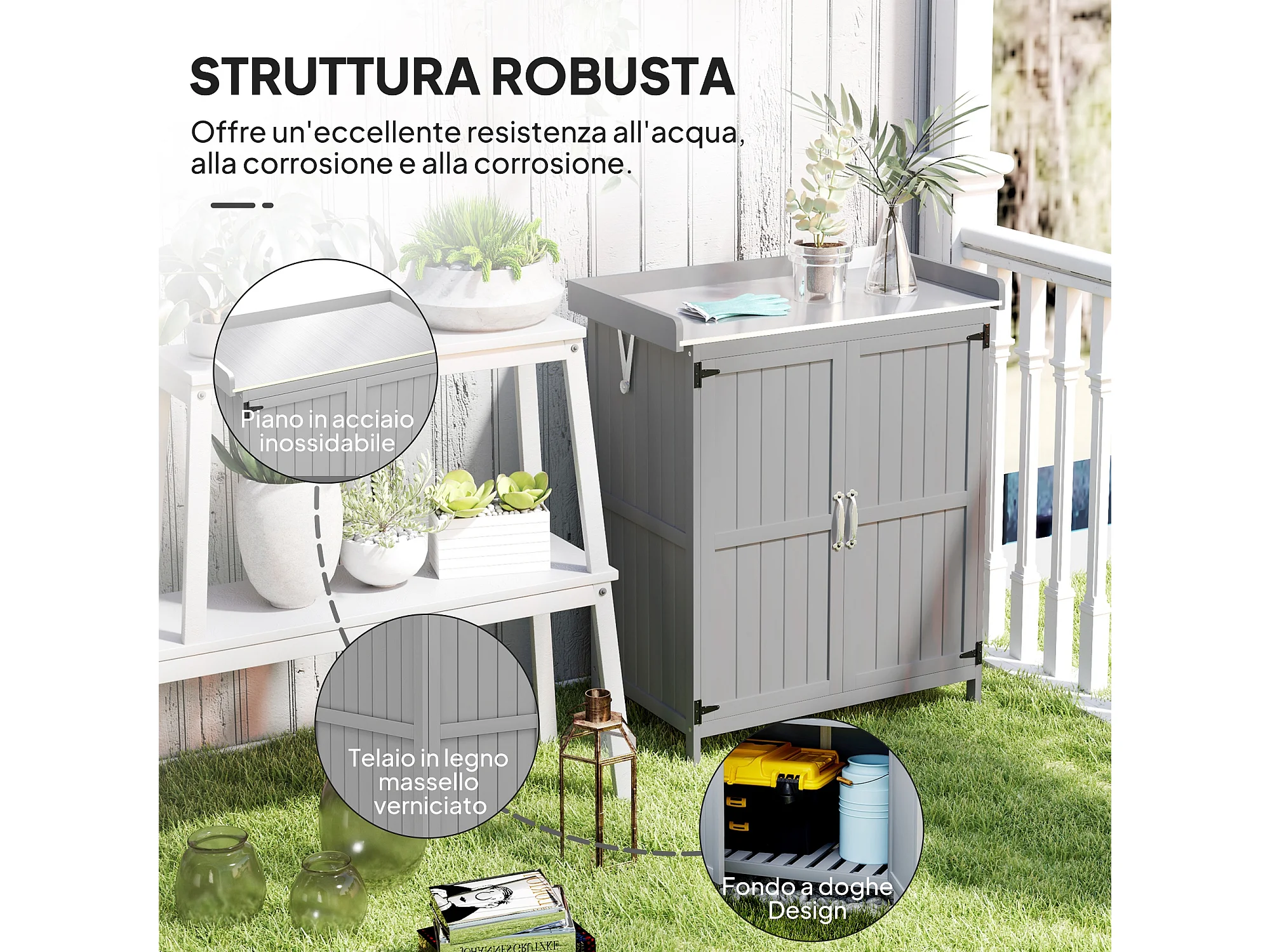 Armadietto da esterno, capanno porta attrezzi con piano in metallo