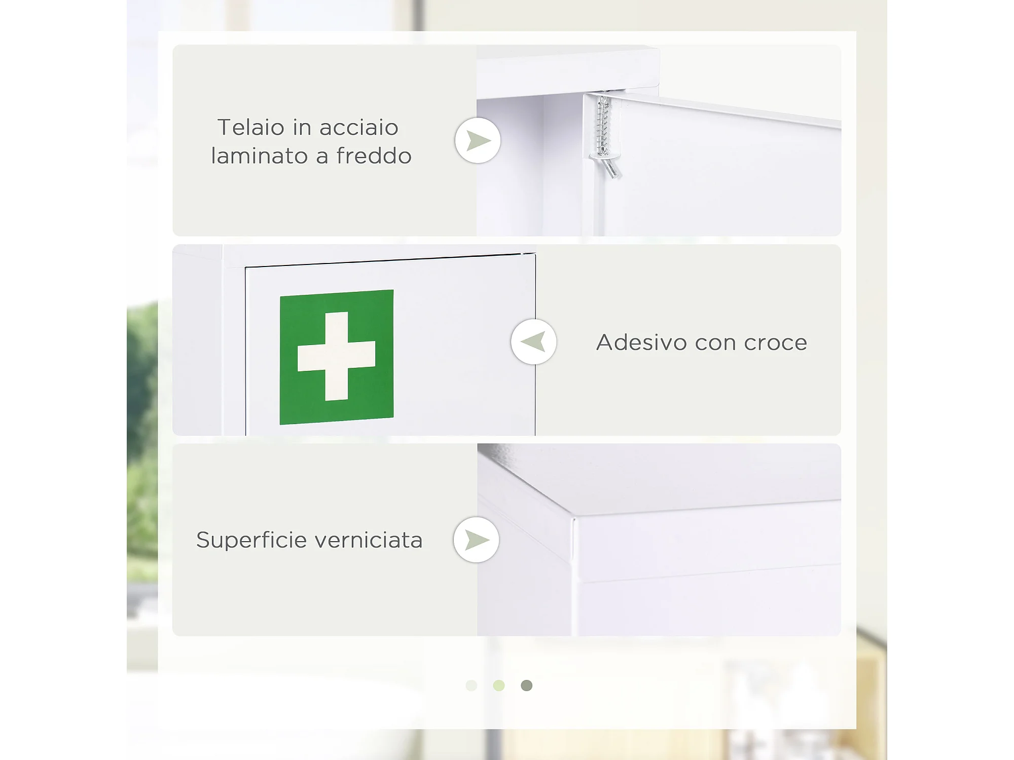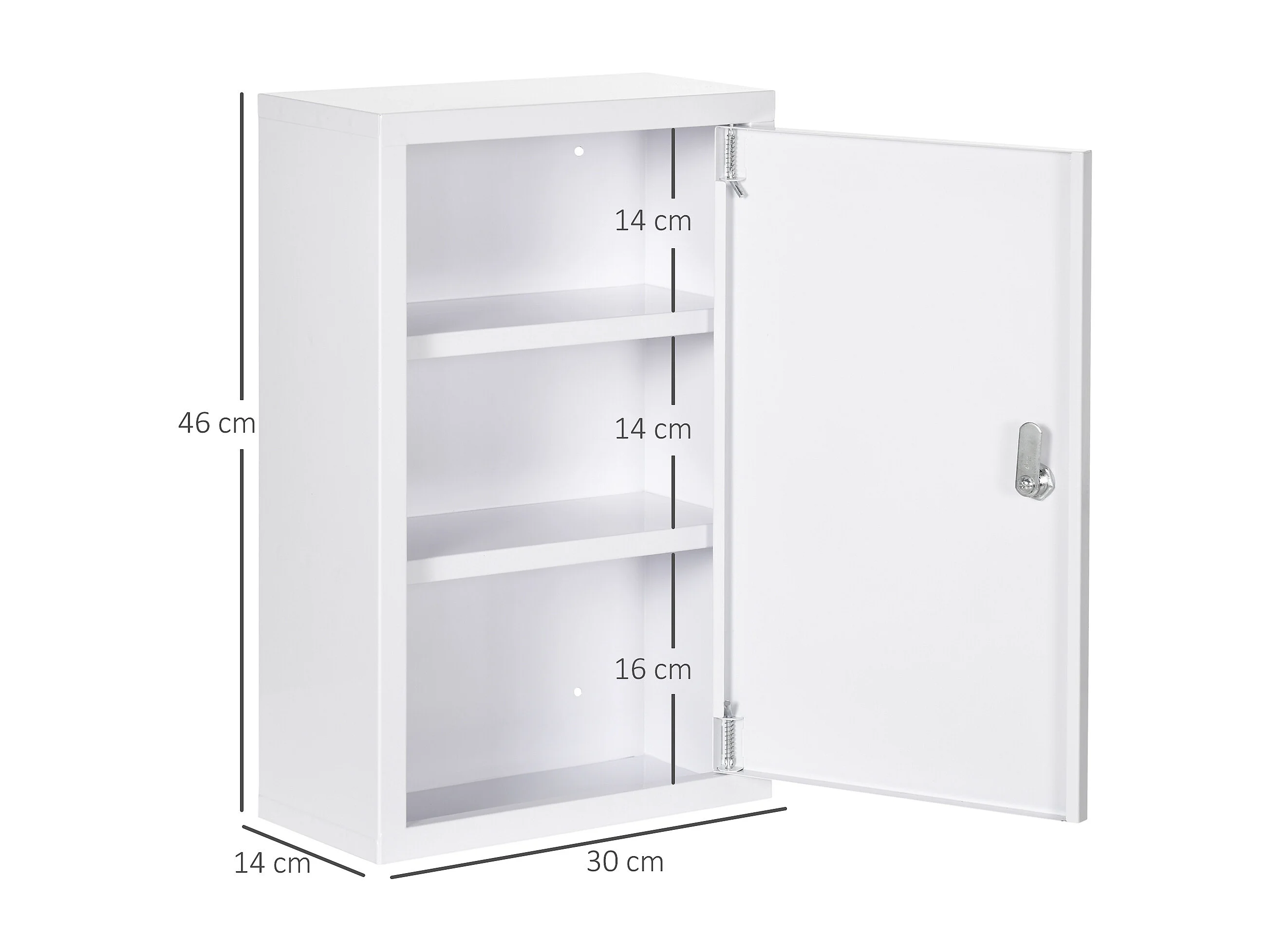 Armadietto medicinali a 3 livelli con 2 chiavi in acciaio bianco