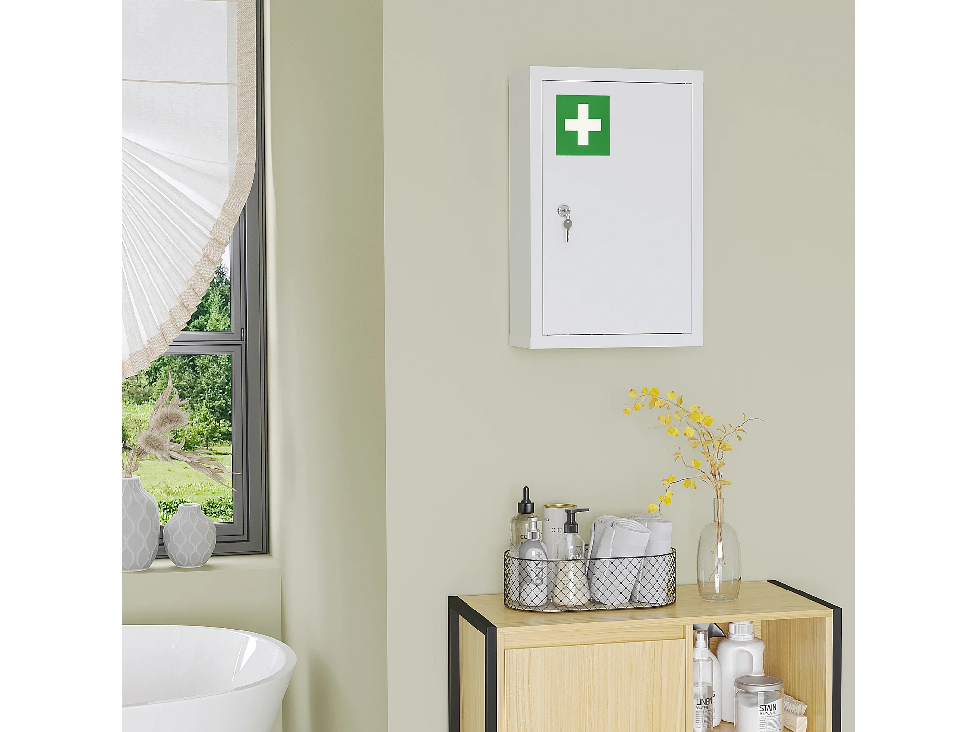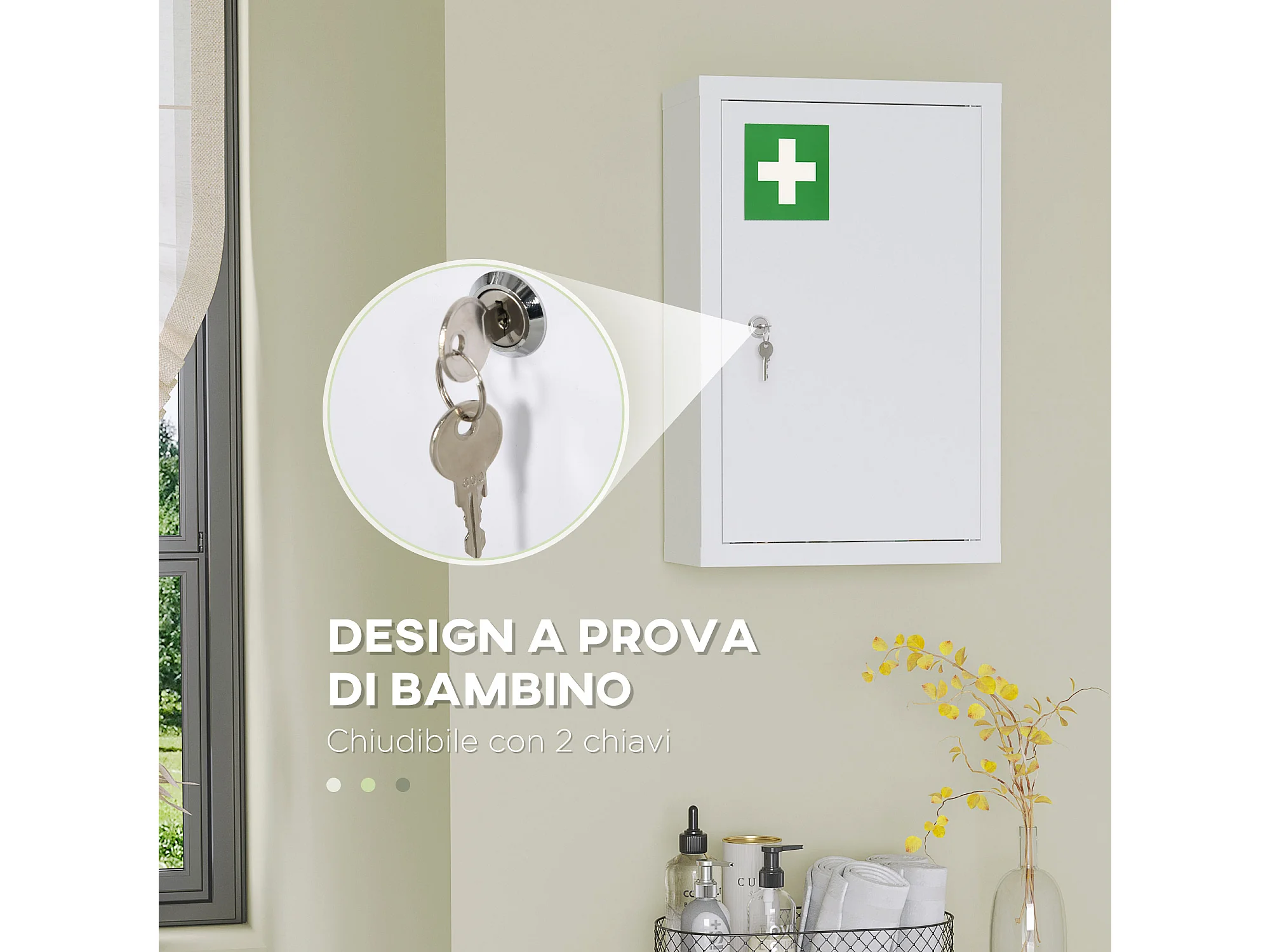 Armadietto medicinali con 3 ripiani e blocco con chiavi