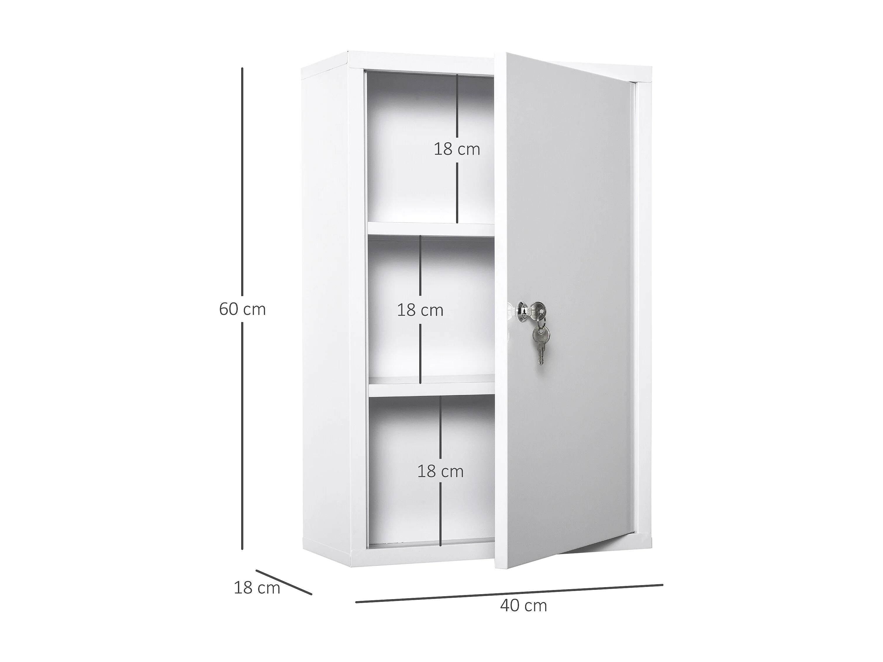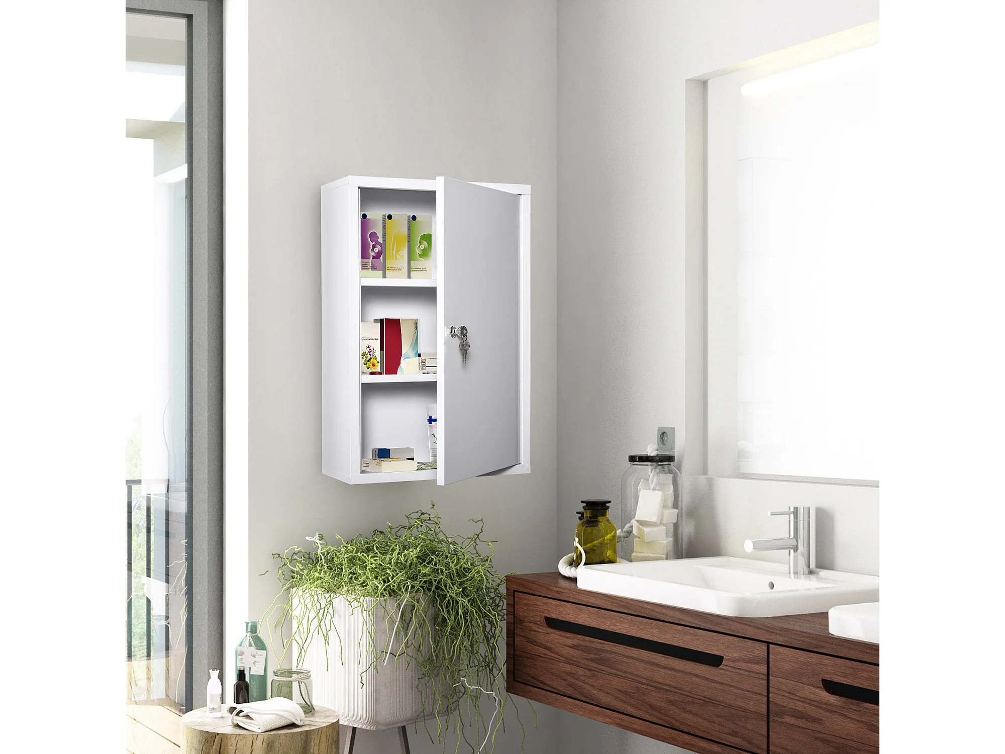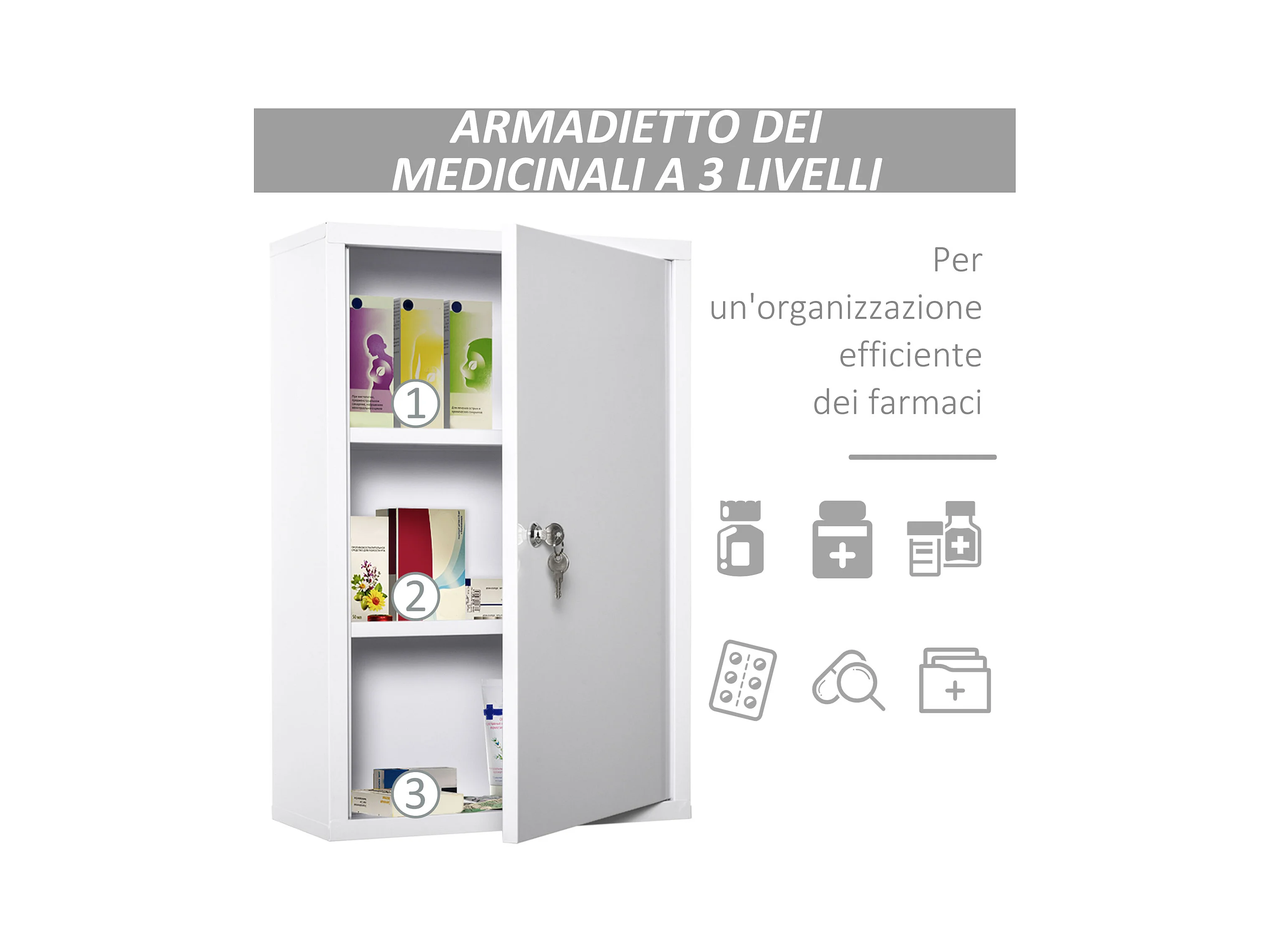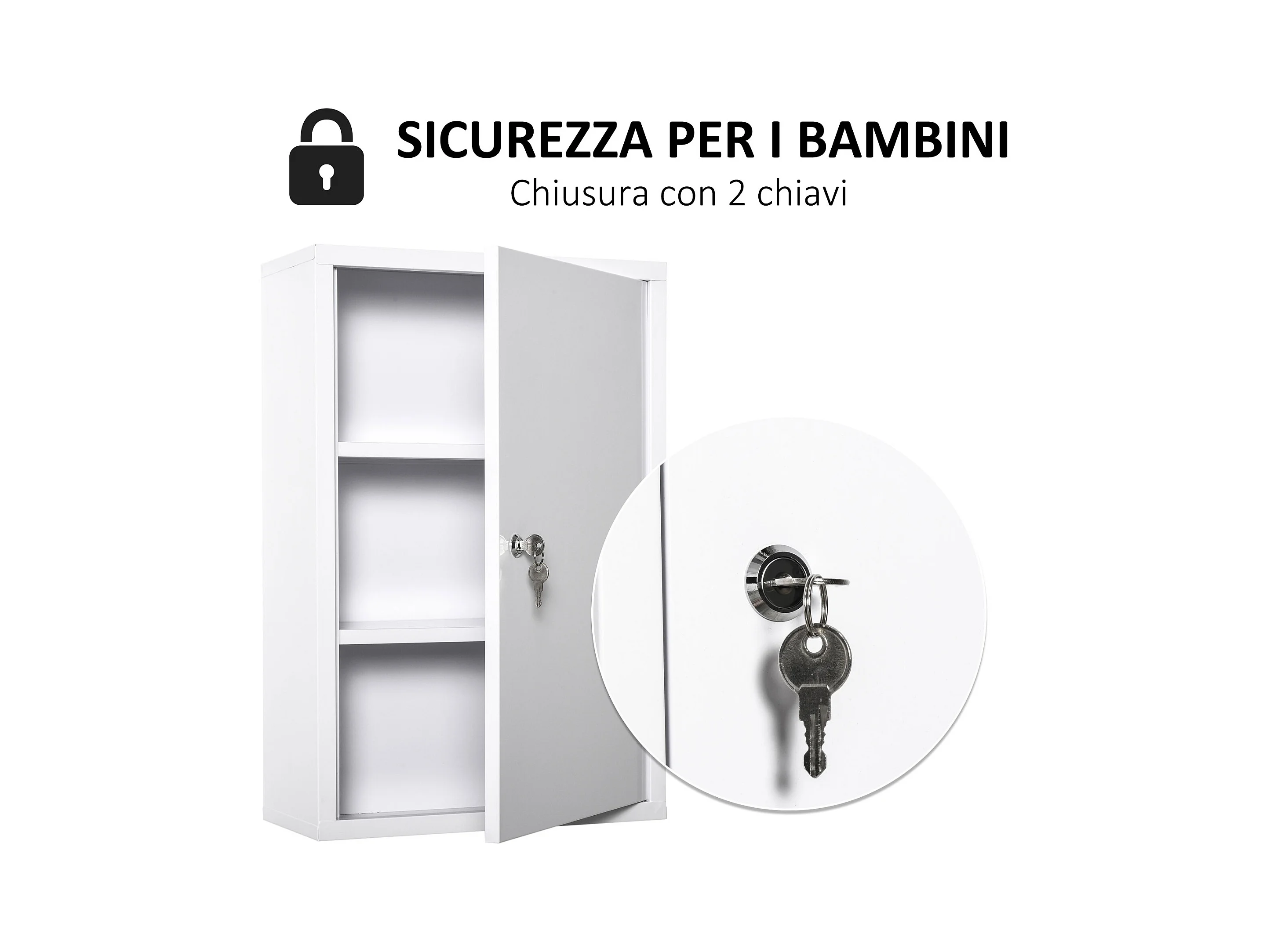 Armadietto medicinali bianco 3 livelli in acciaio e 2 chiavi