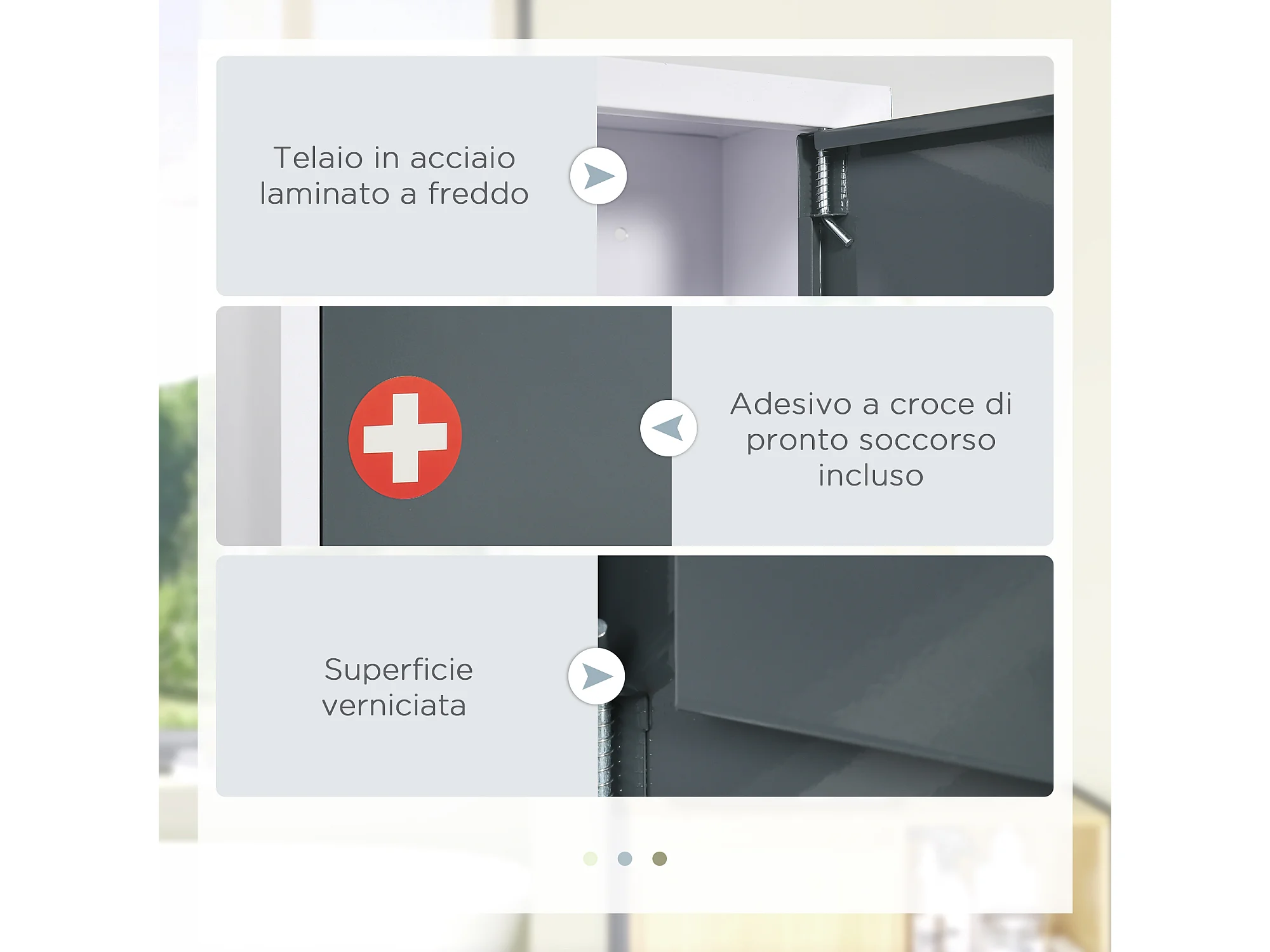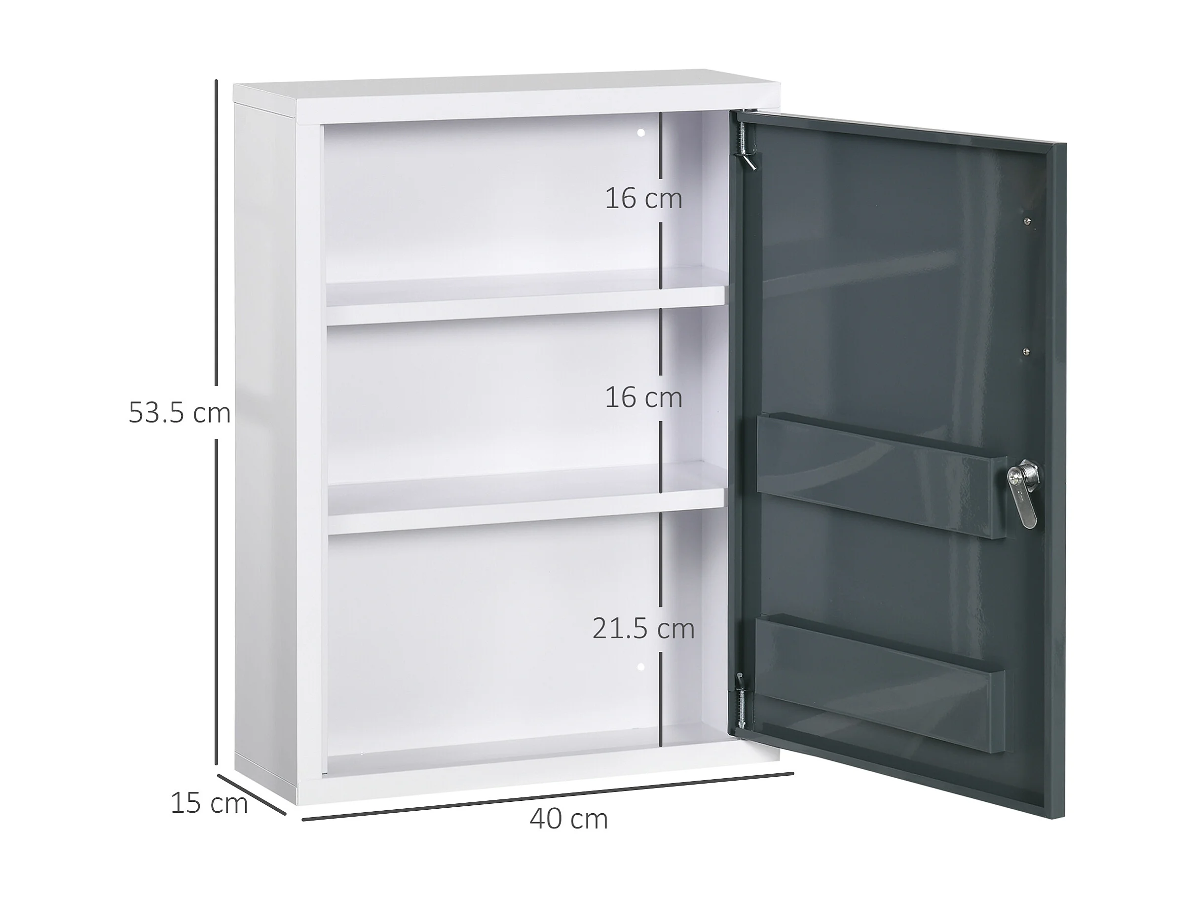 Armadietto medicinali a 3 ripiani con serratura in acciaio bianco